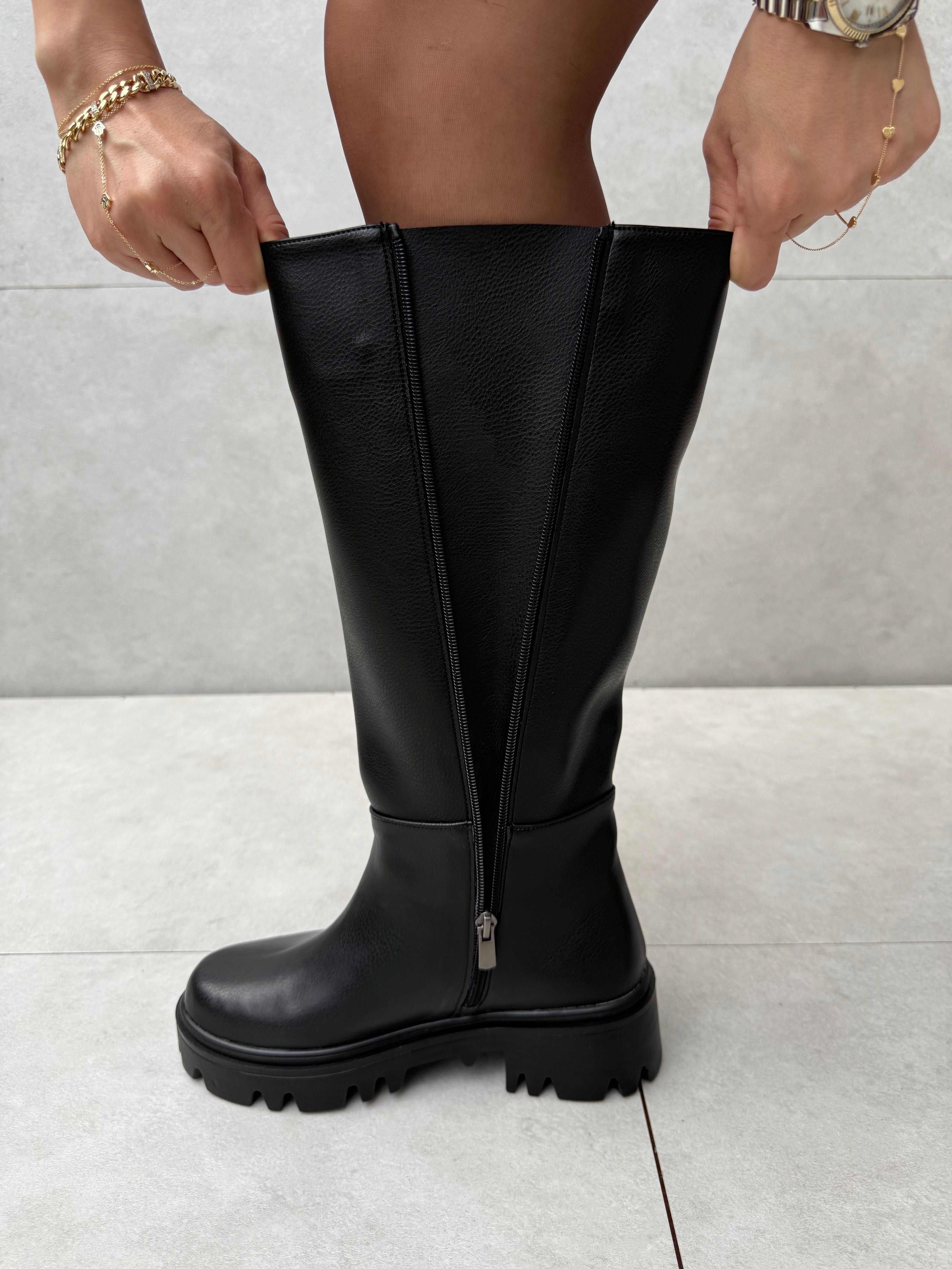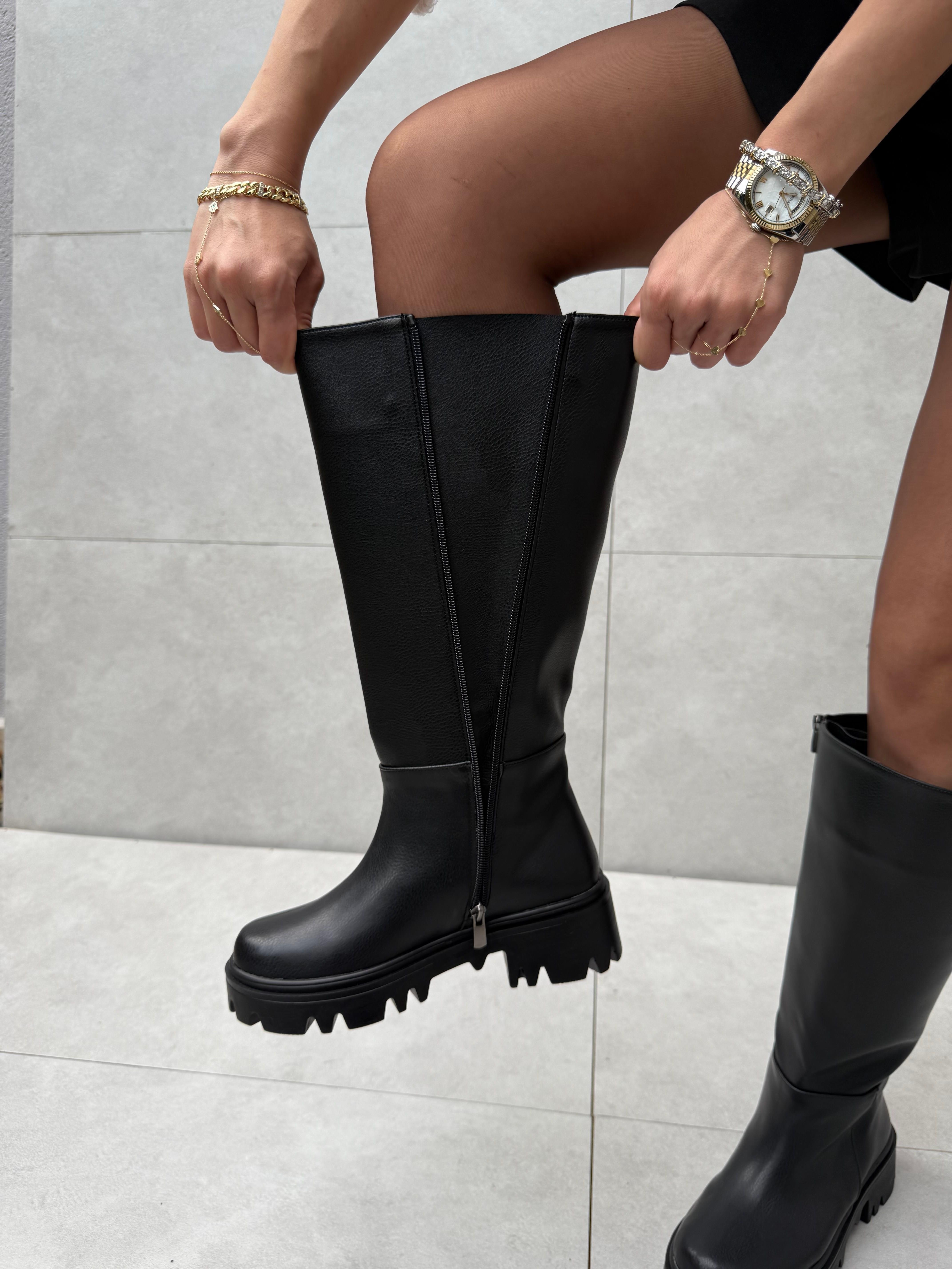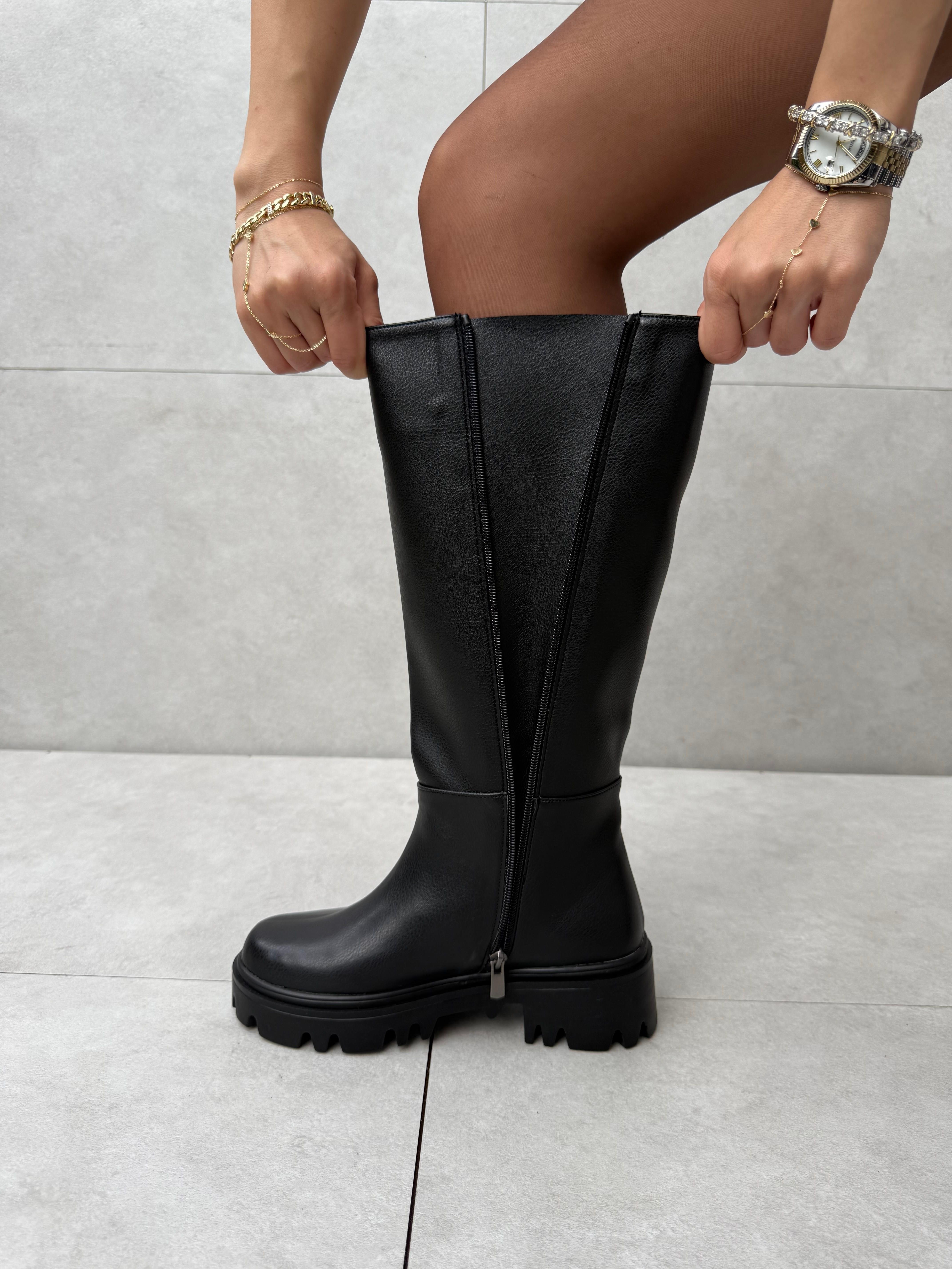 Dena Siyah Renk Kalın Tabanlı Ekstra Geniş Kadın Çizmesi (Dena-Siyah)