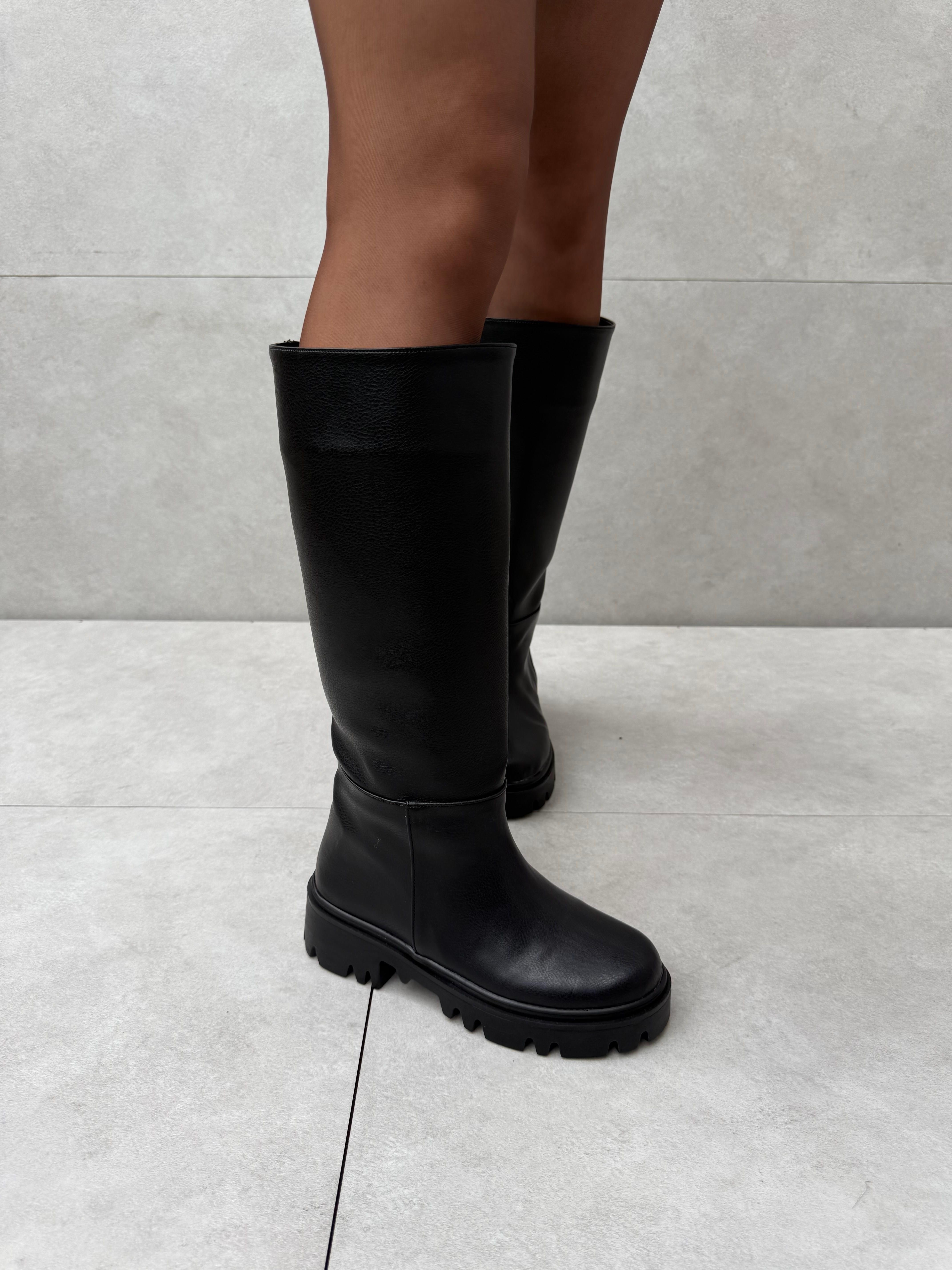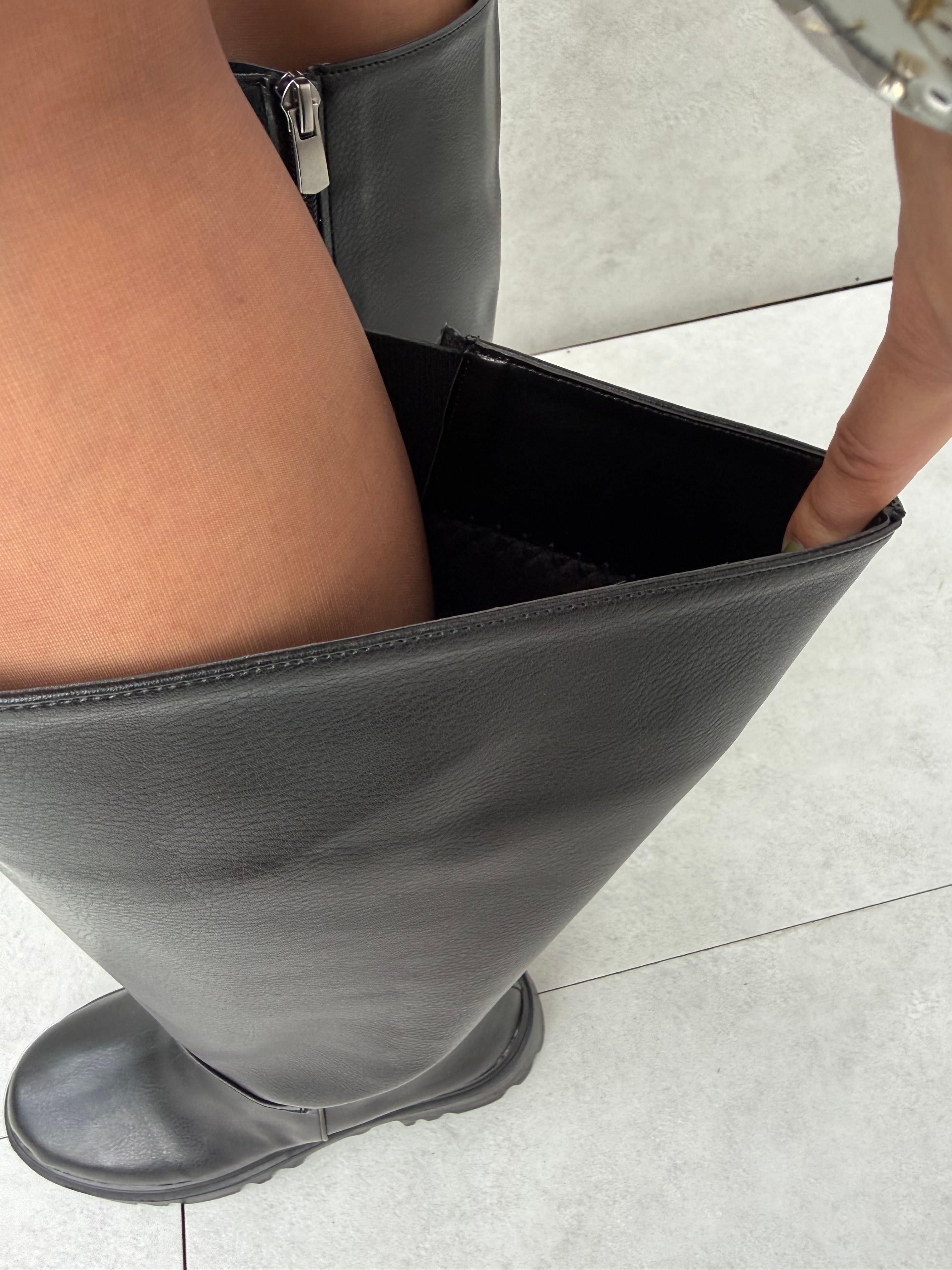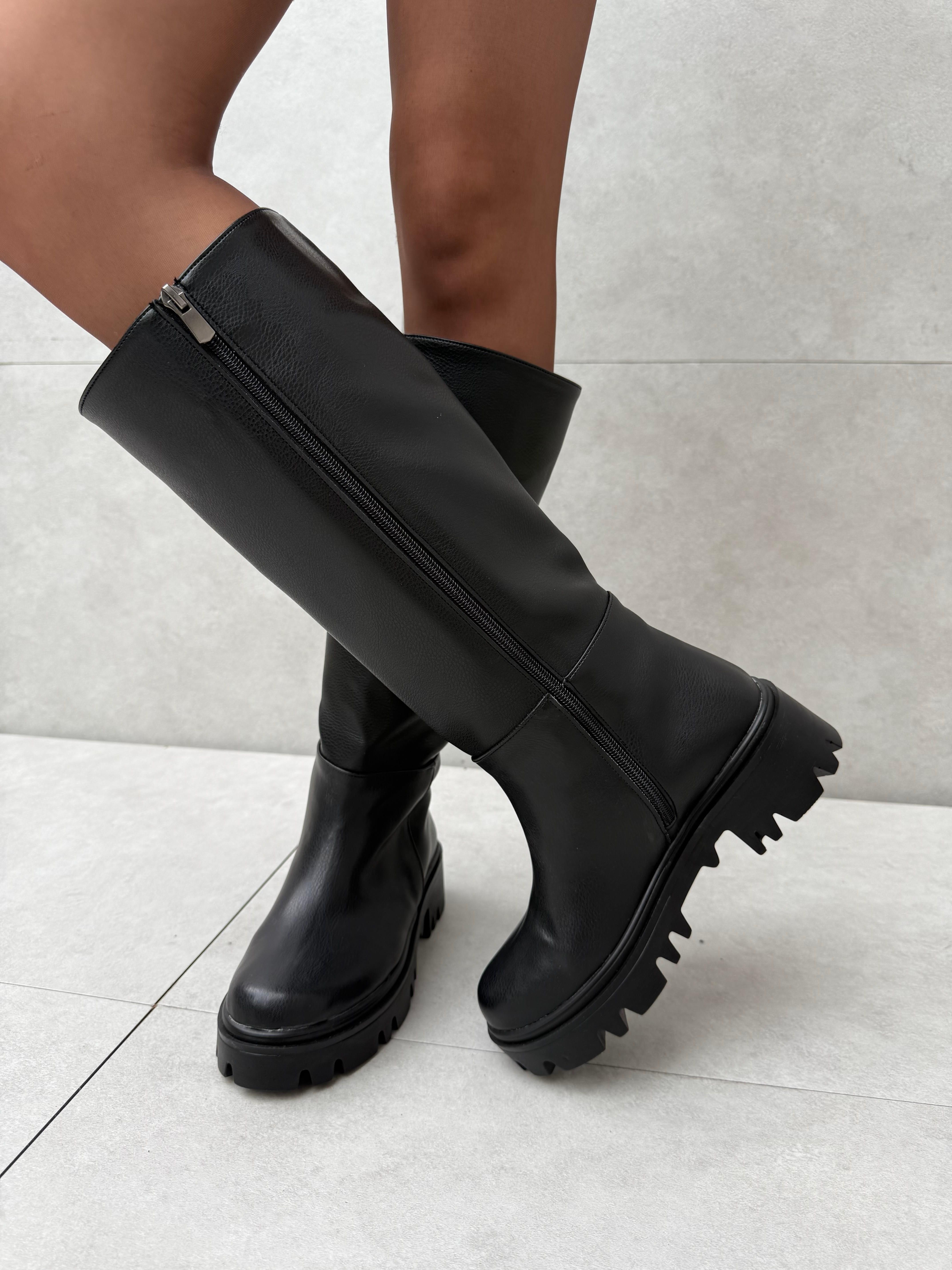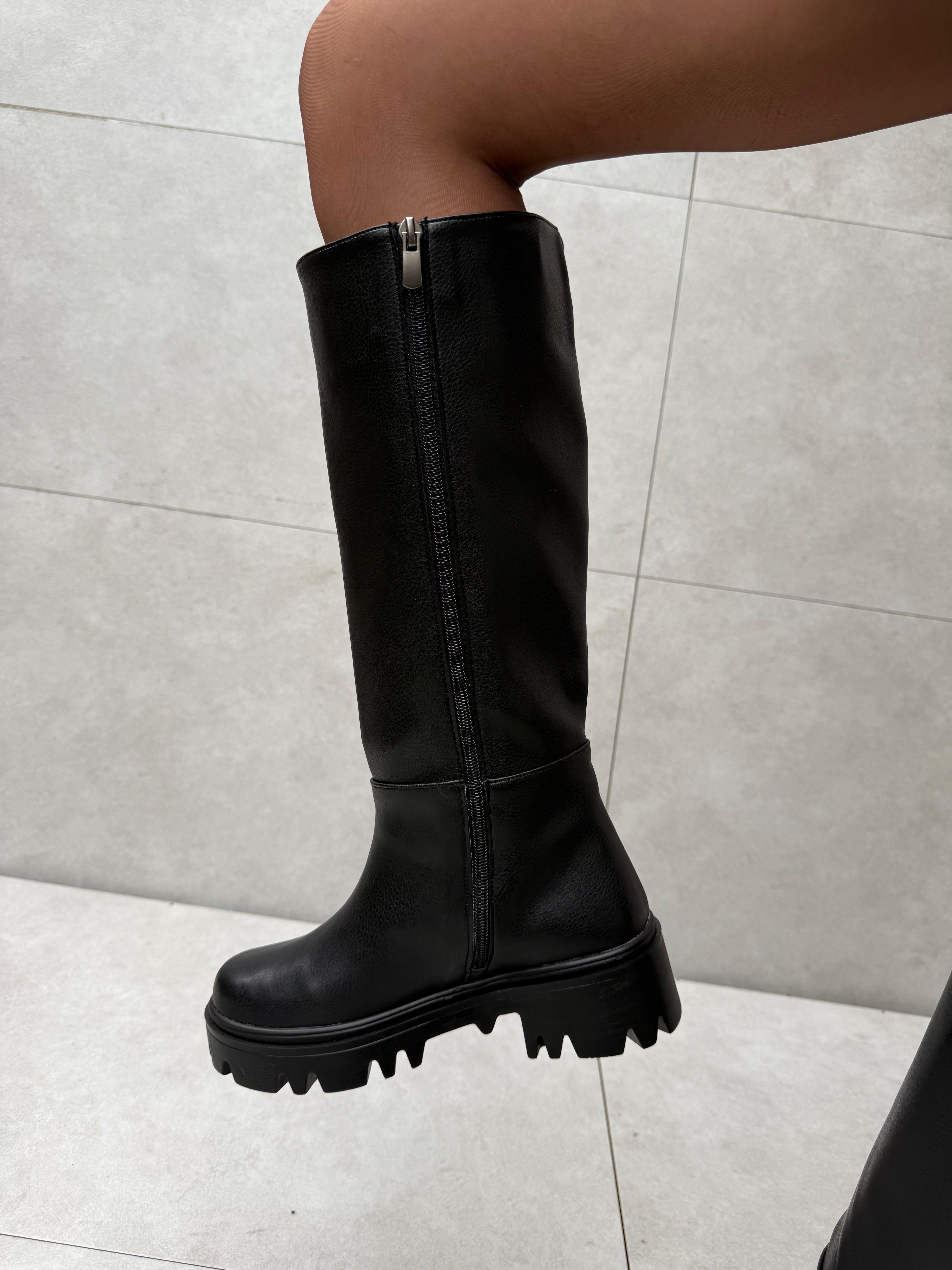 Dena Siyah Renk Kalın Tabanlı Ekstra Geniş Kadın Çizmesi (Dena-Siyah)