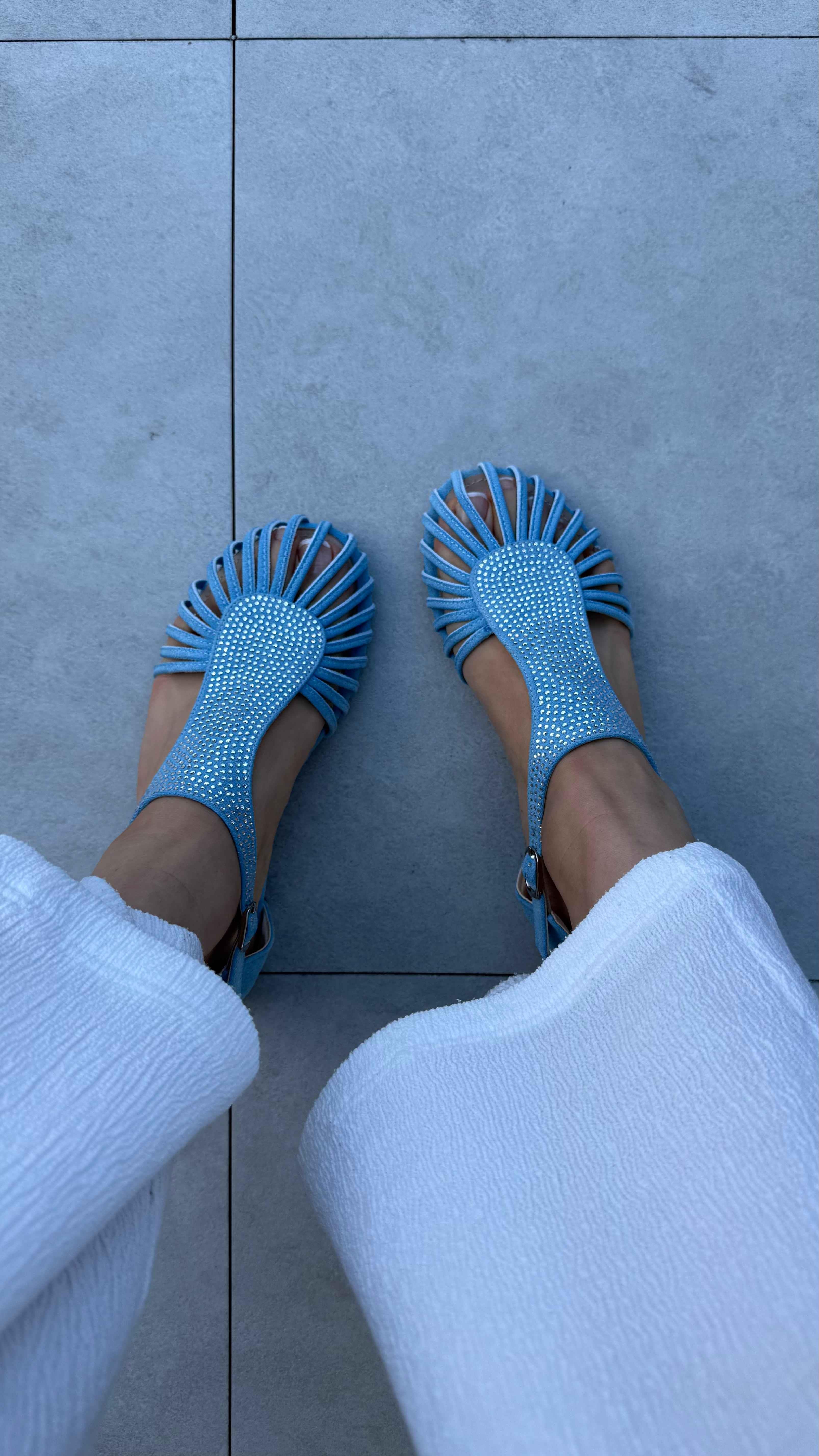 CRAY BEBE MAVİ MİNİ TAŞ DETAYLI SANDALET (Cray-Bebe Mavi)