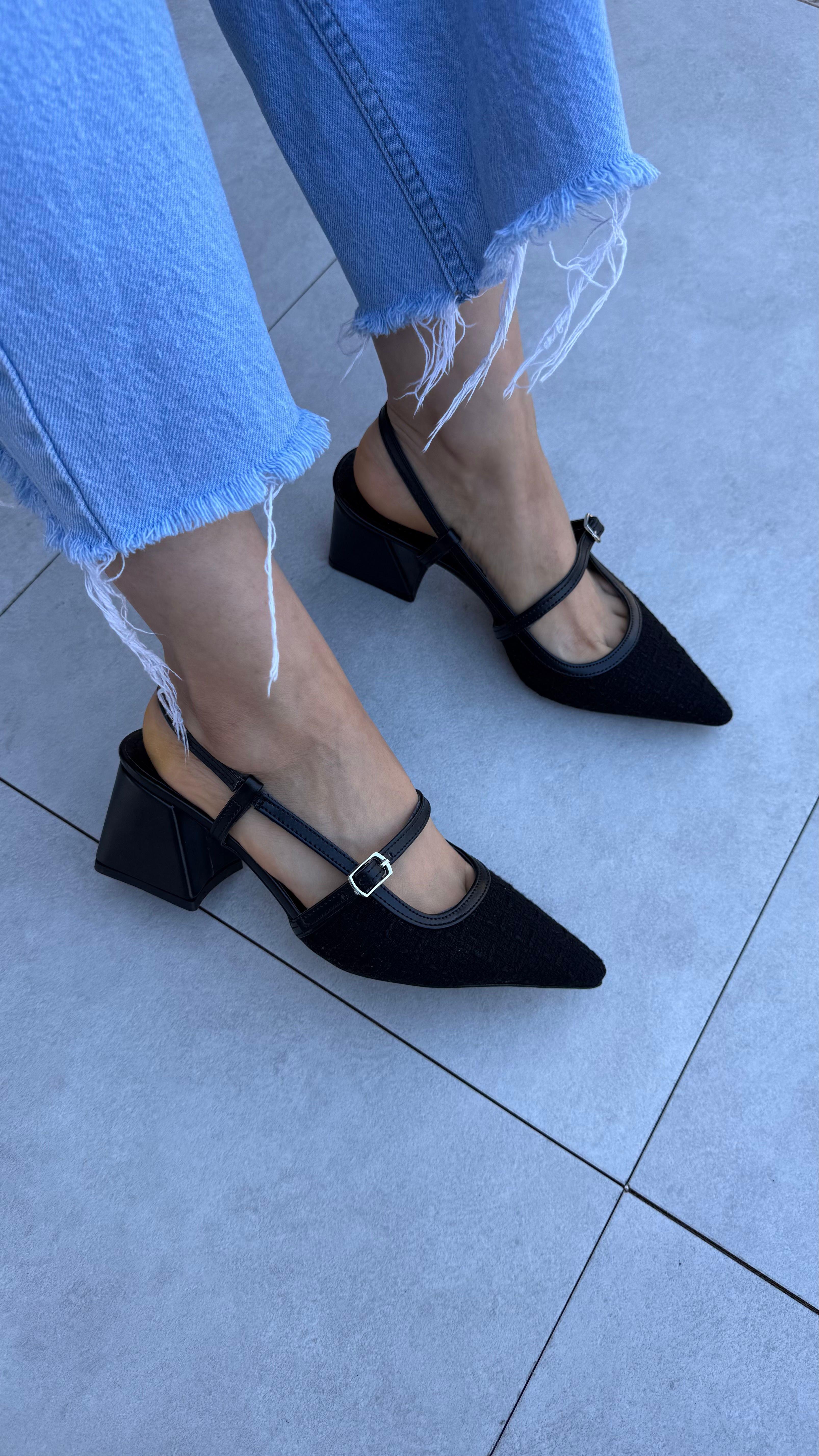 Koisy Siyah Tüvit Kemer Detaylı Kadın Topuklu Ayakkabı (Koisy-Siyah Tüvit)