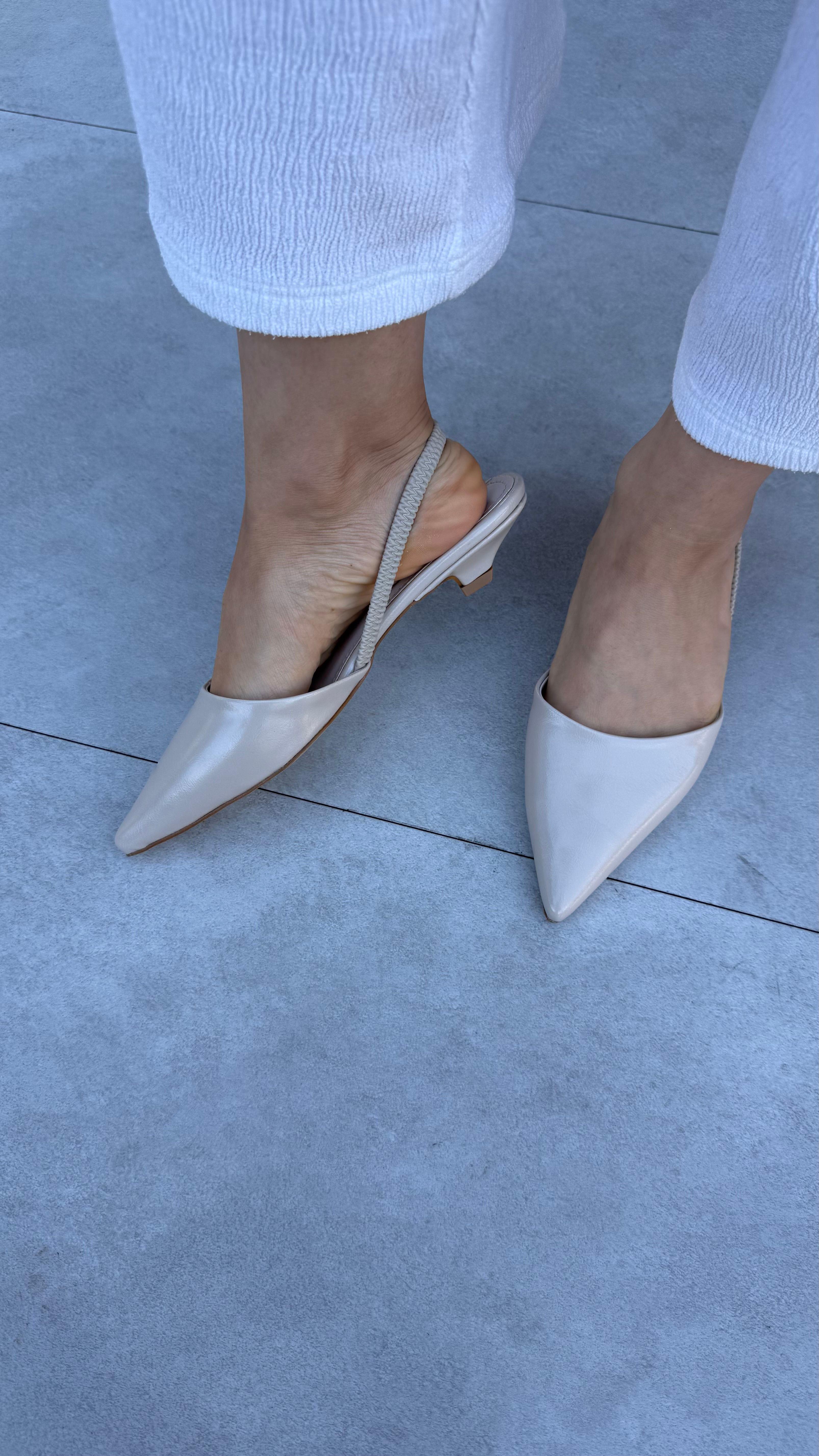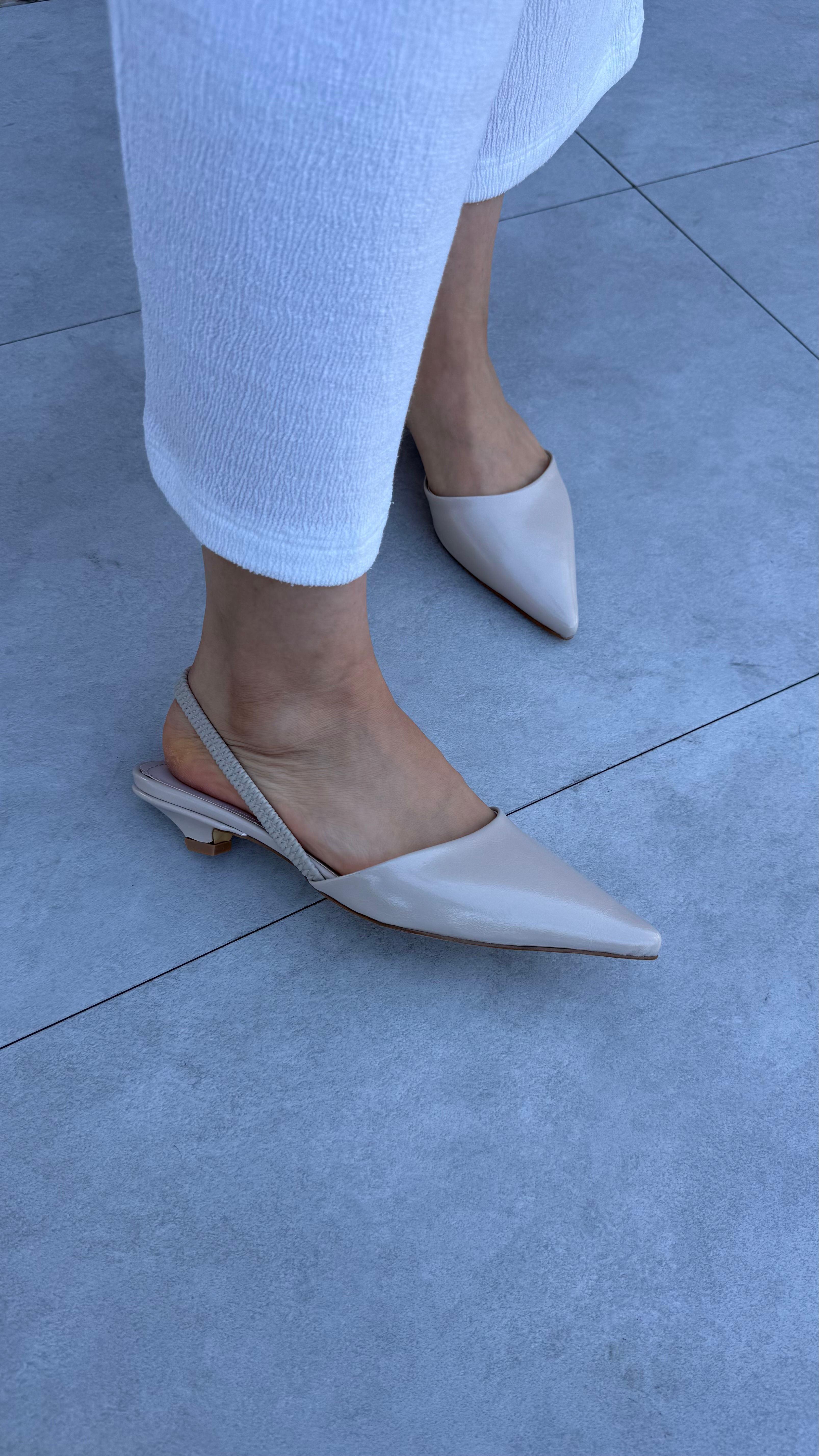 MONA BEJ SİVRİ BURUN FINDIK TOPUKLU KADIN AYAKKABI (Mona-Bej)