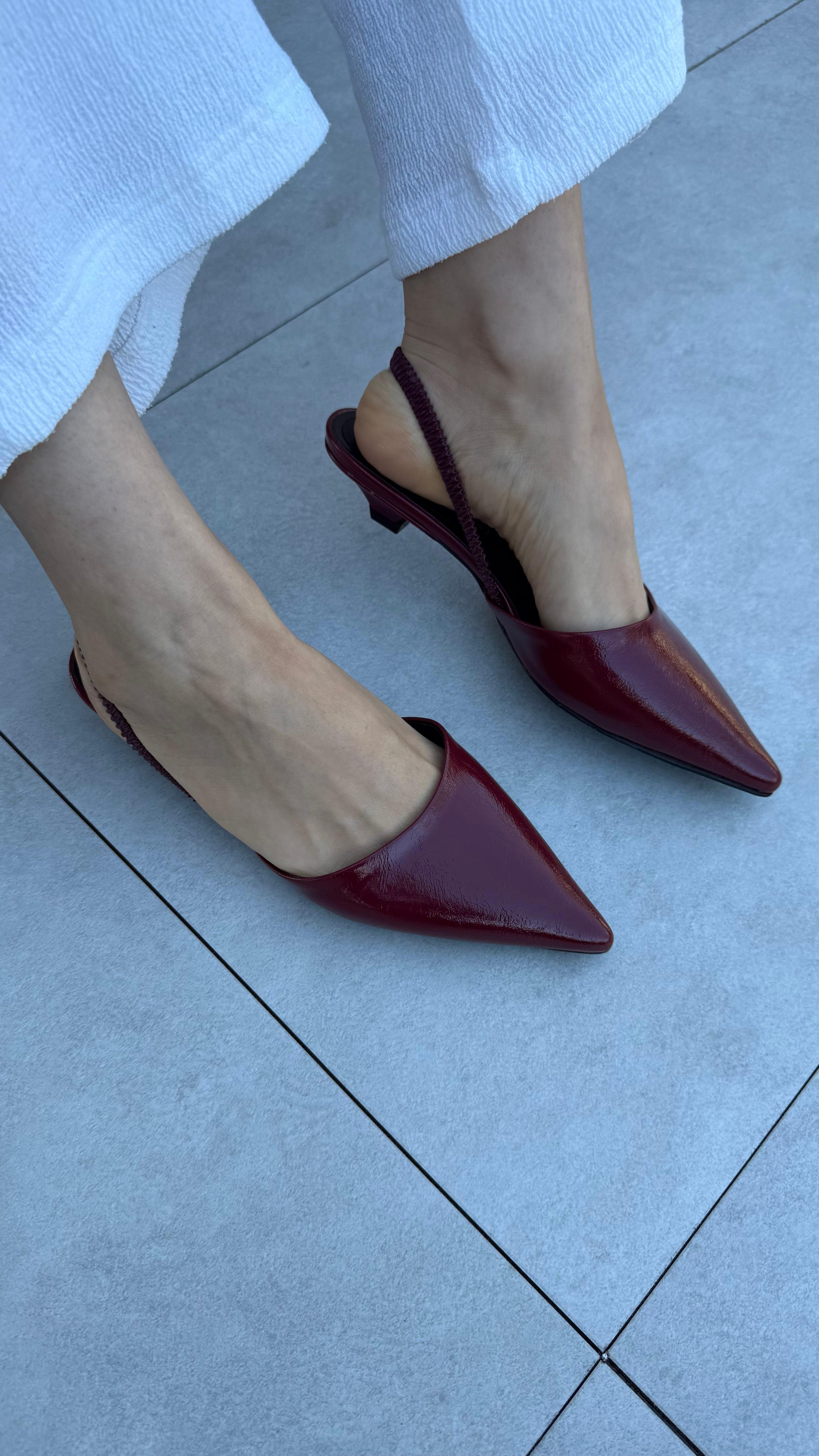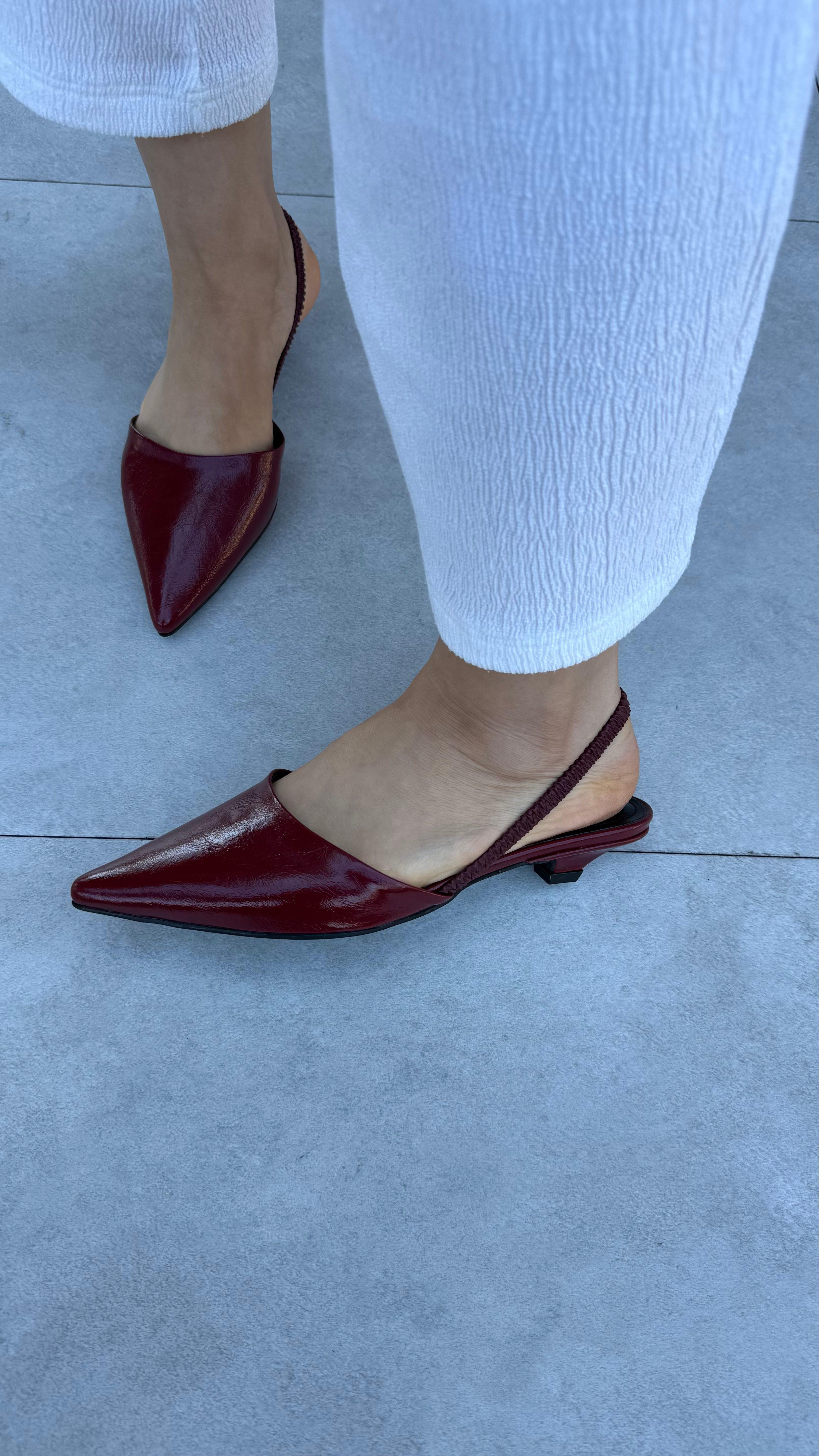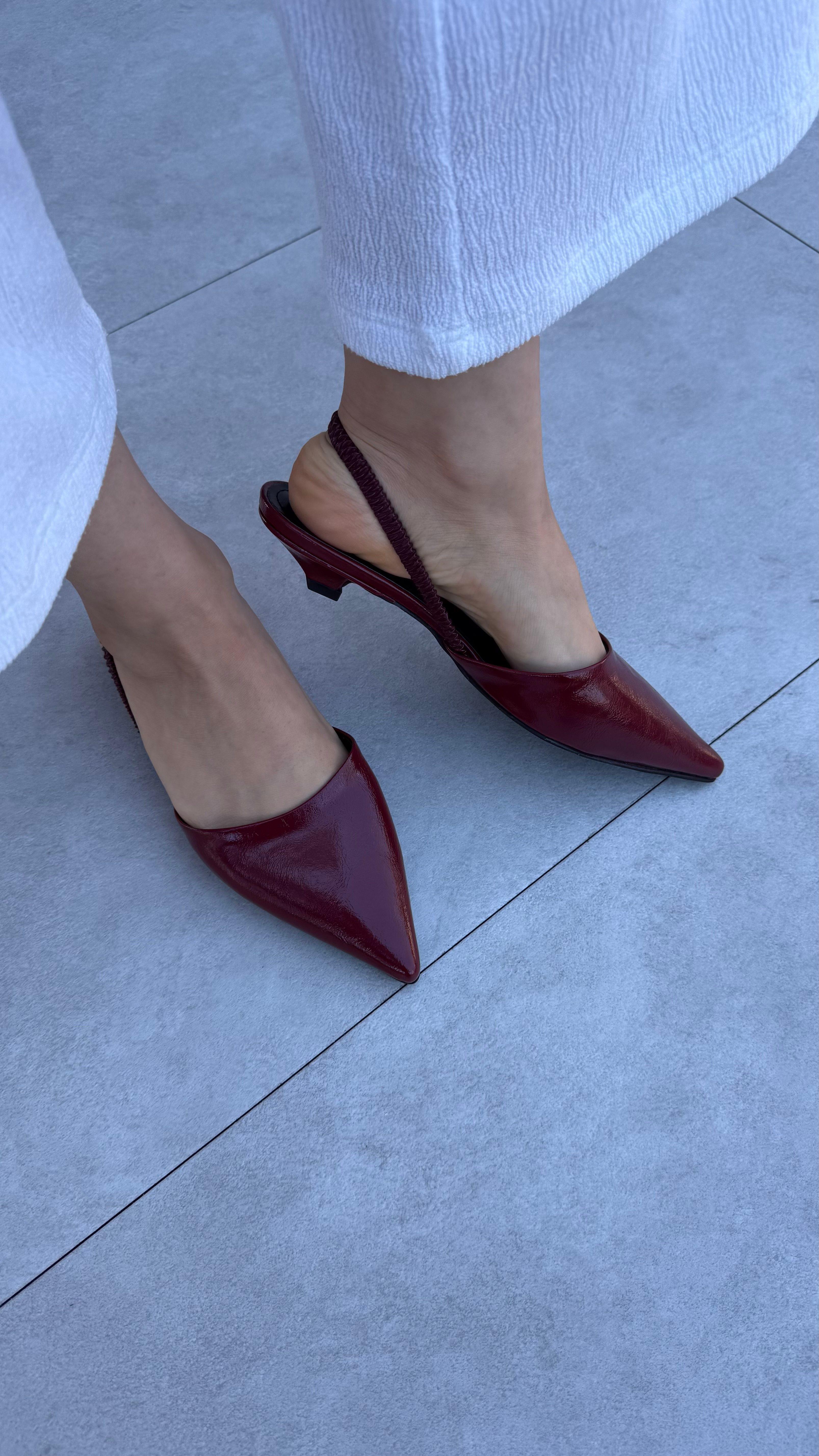 MONA VİŞNE SİVRİ BURUN FINDIK TOPUKLU KADIN AYAKKABI (Mona-Vişne)