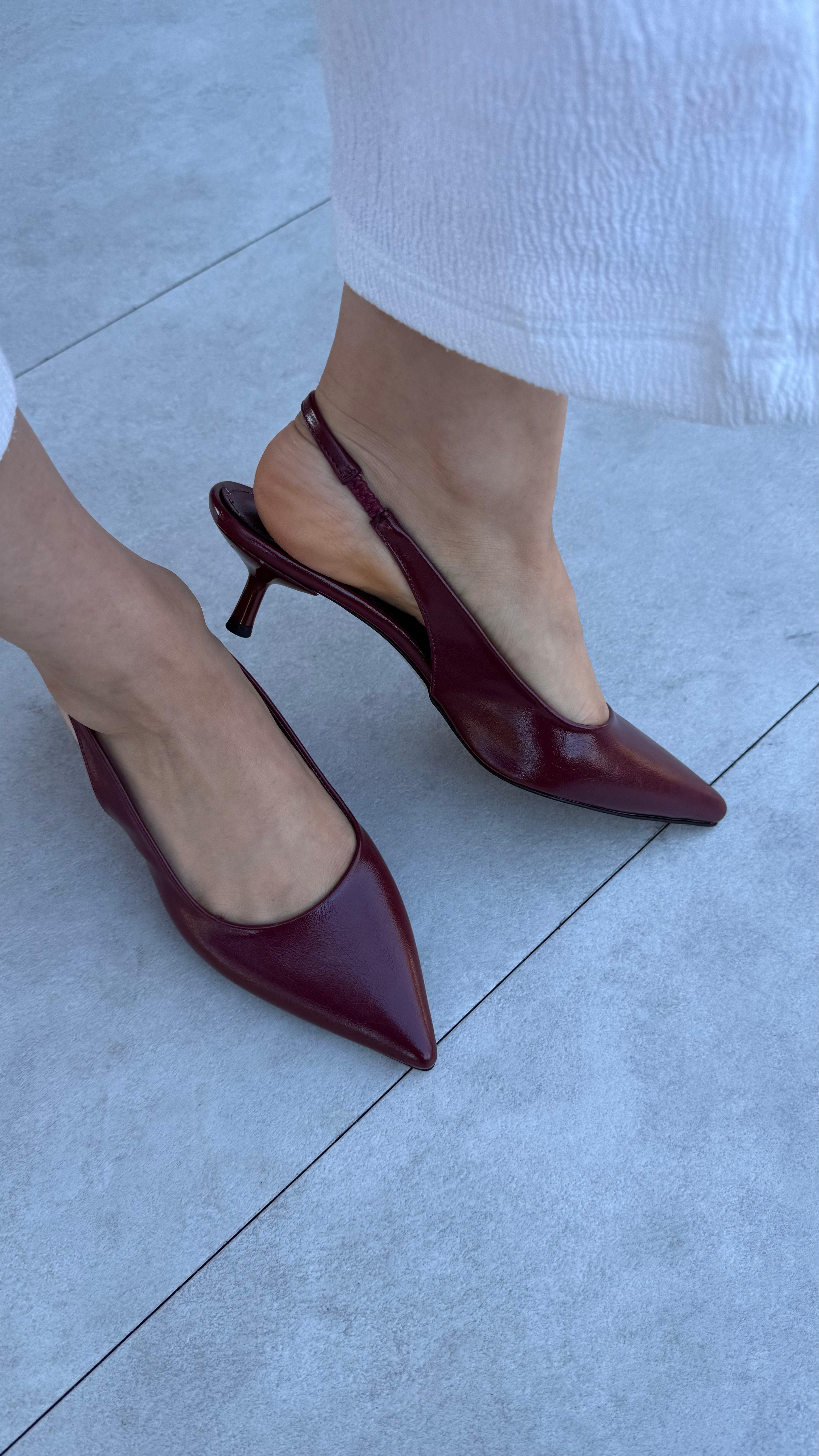 Vales Bordo Mat Rugan Lastik Detaylı Kadın Topuklu Ayakkabı (Vales-Bordo)