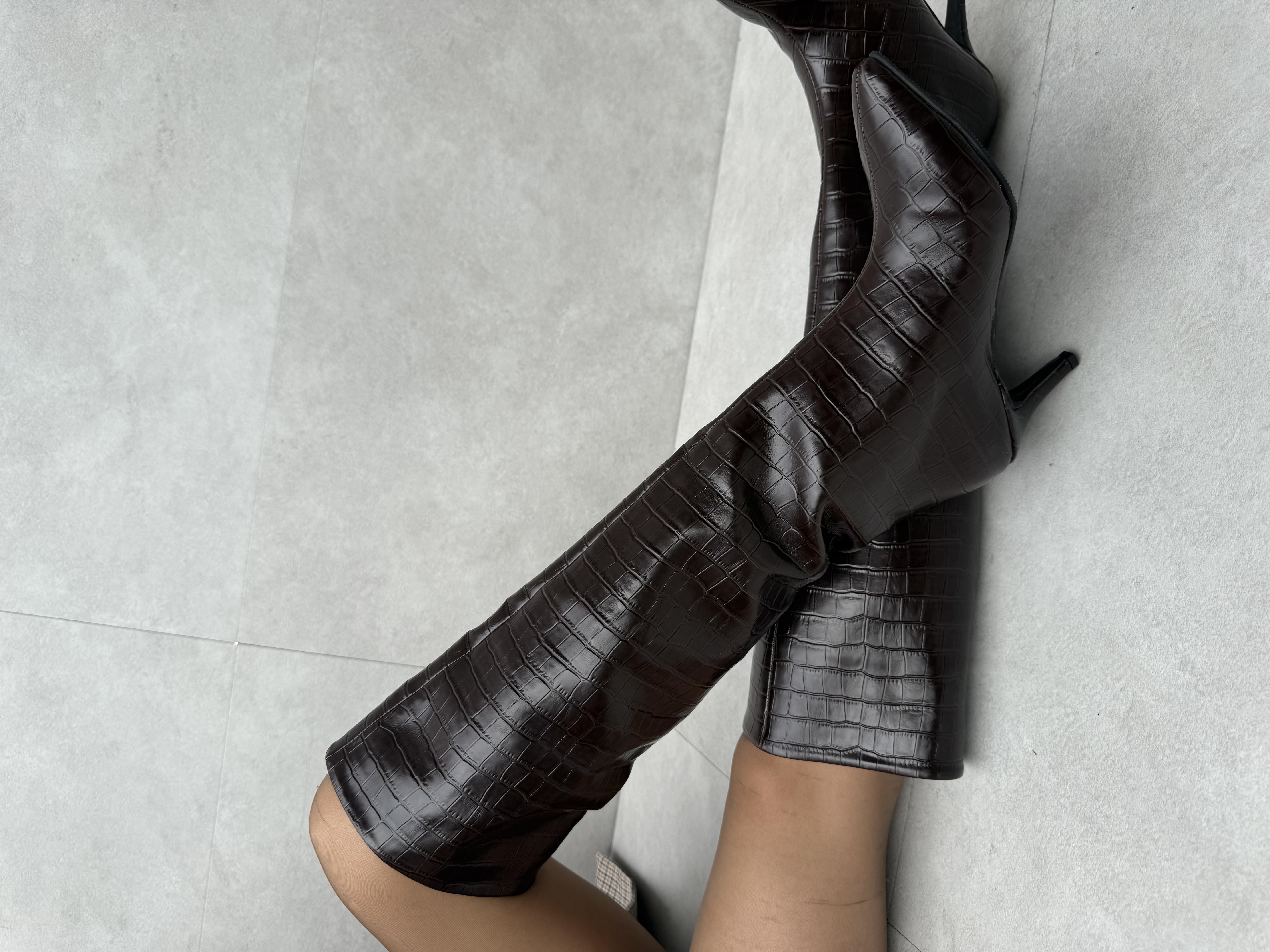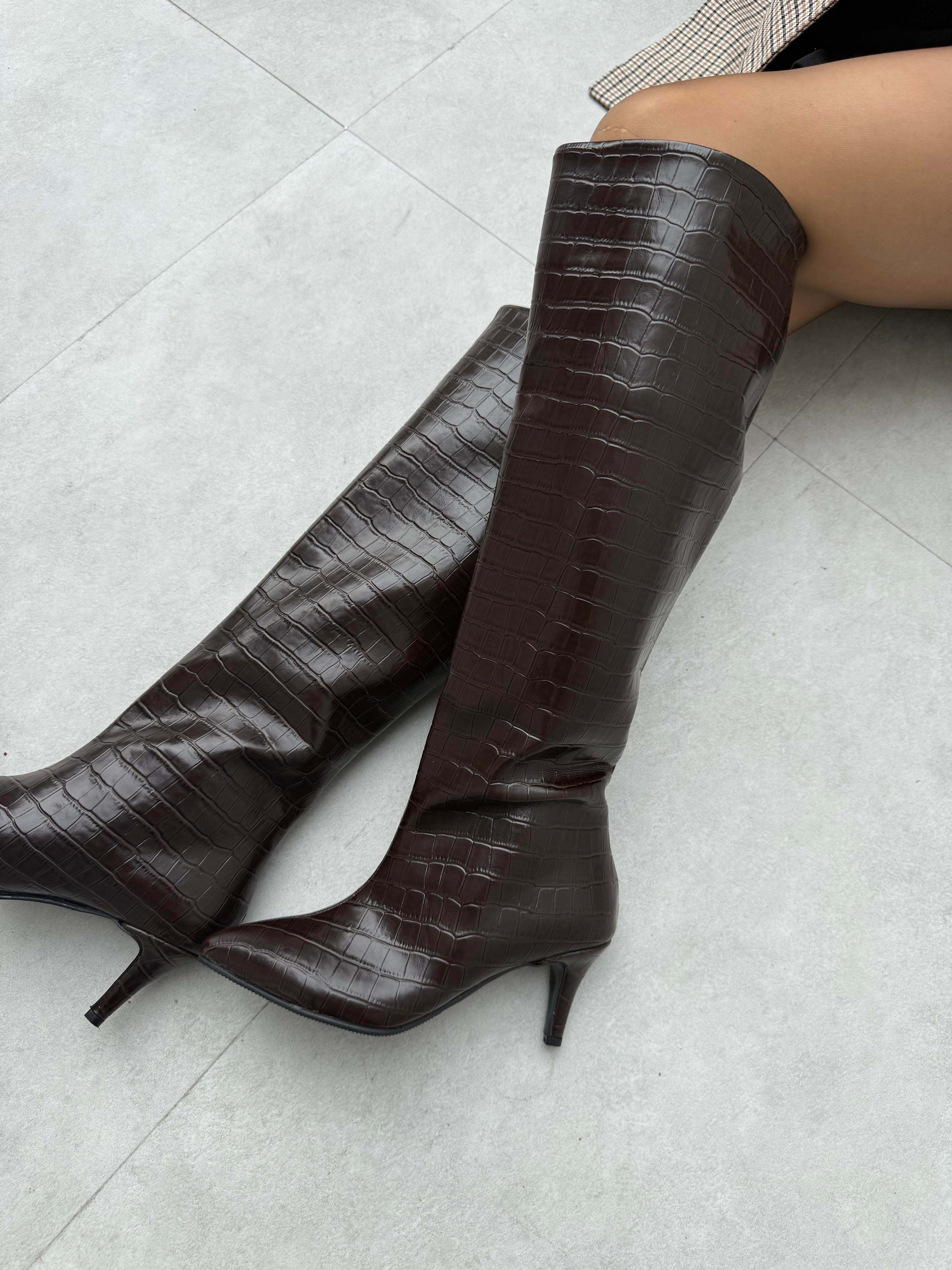 Jesica ( Acı Kahve ) Croco İnce Topuklu Çizme (copycopy6245612)
