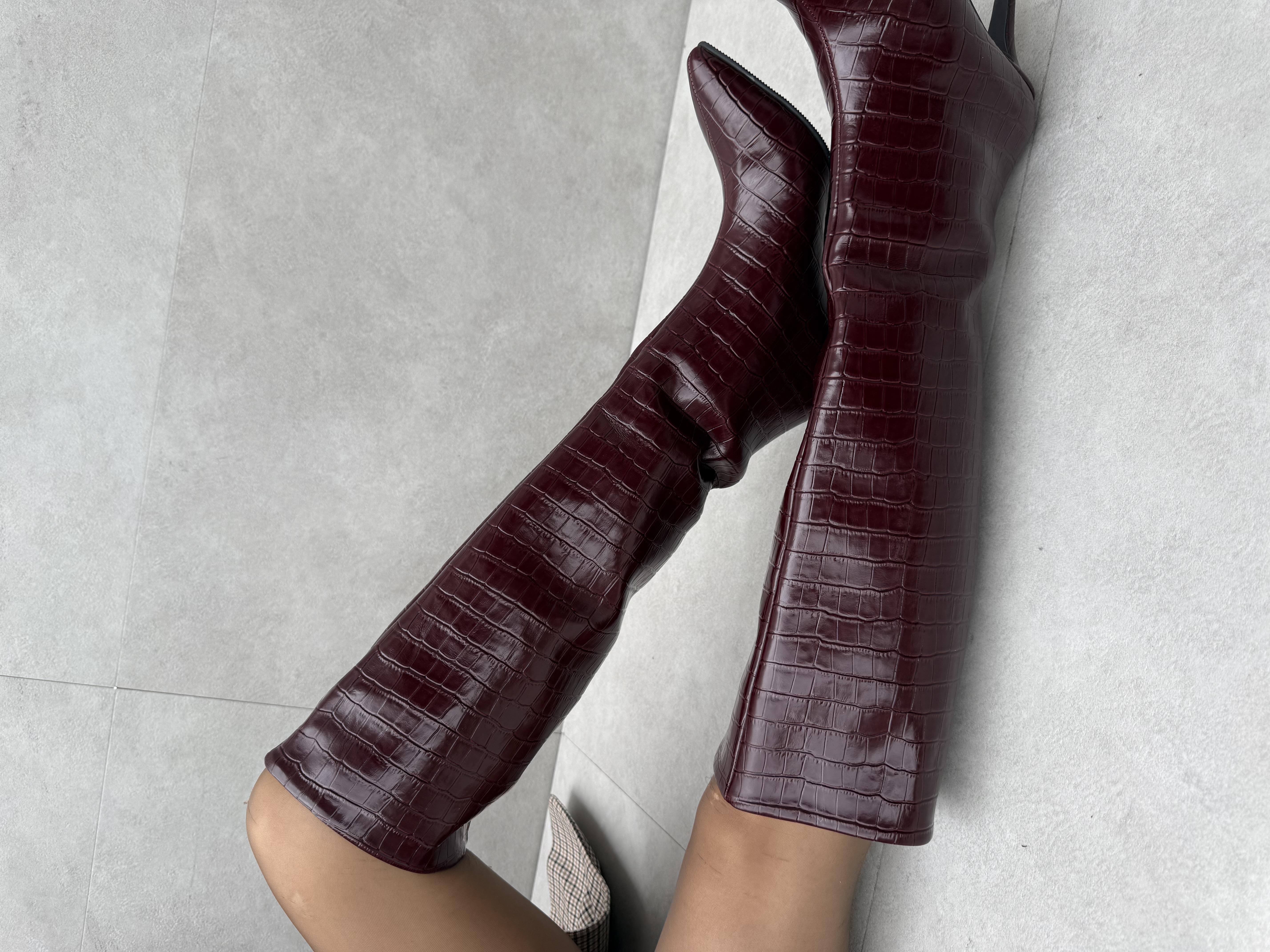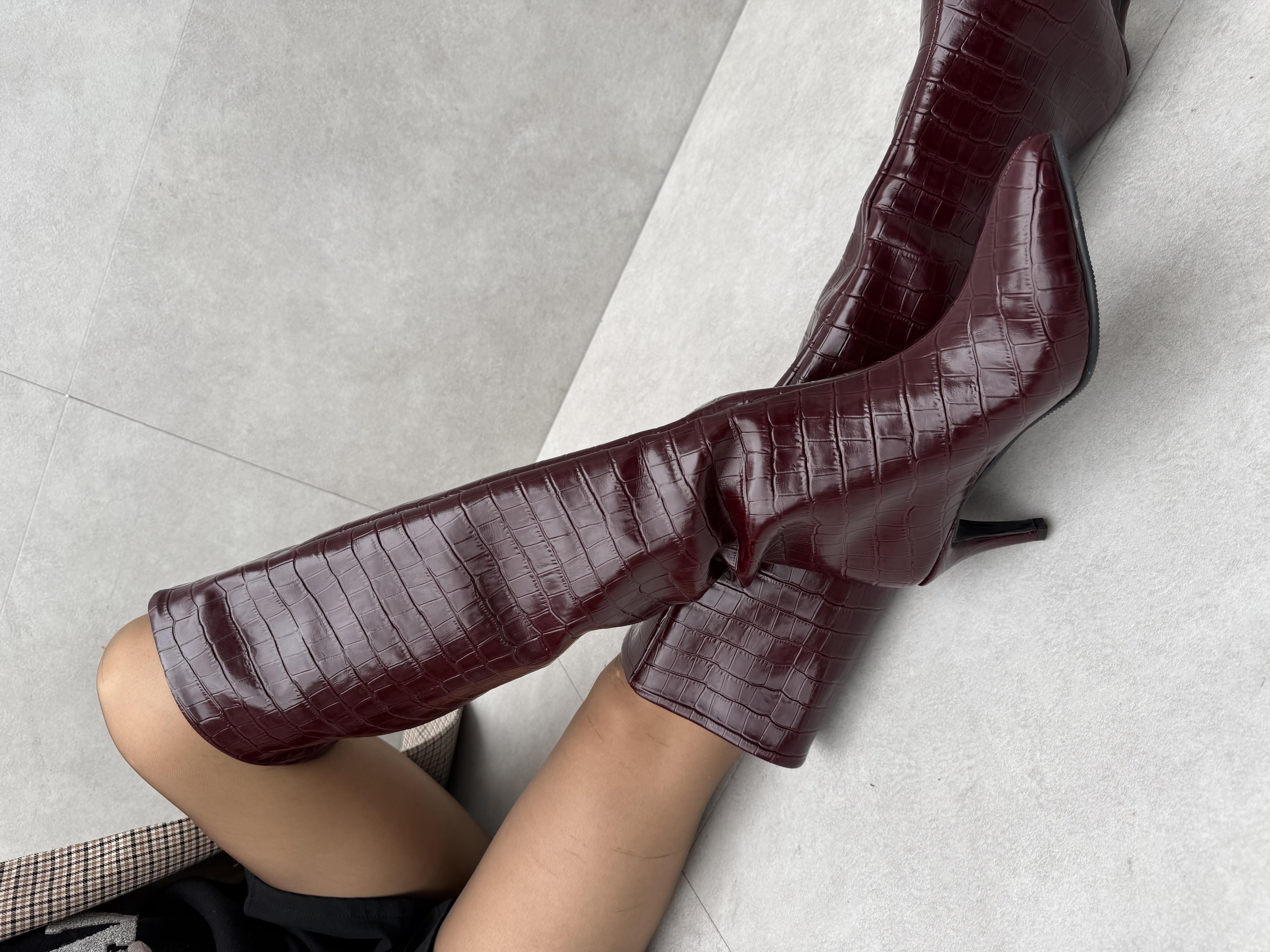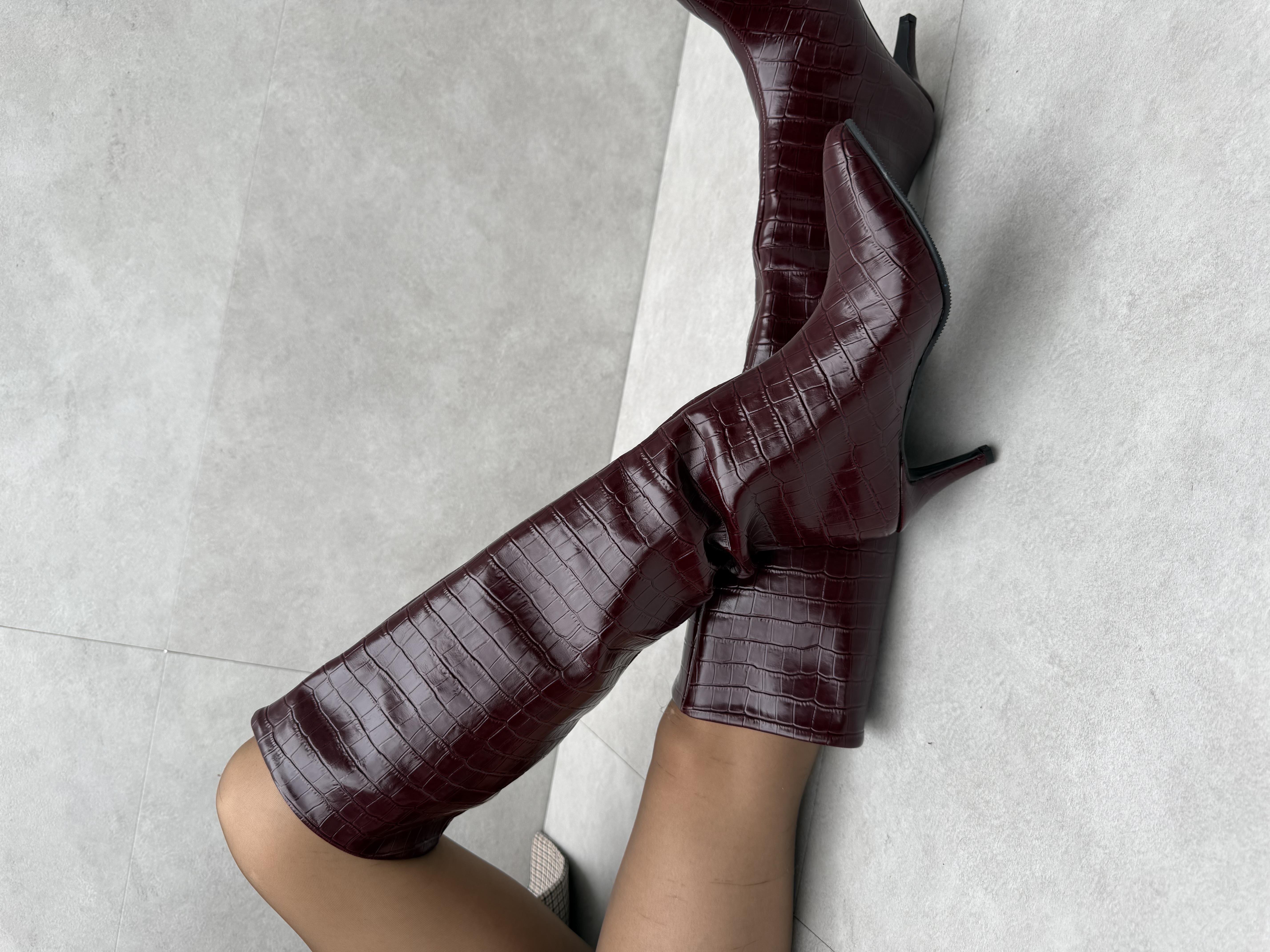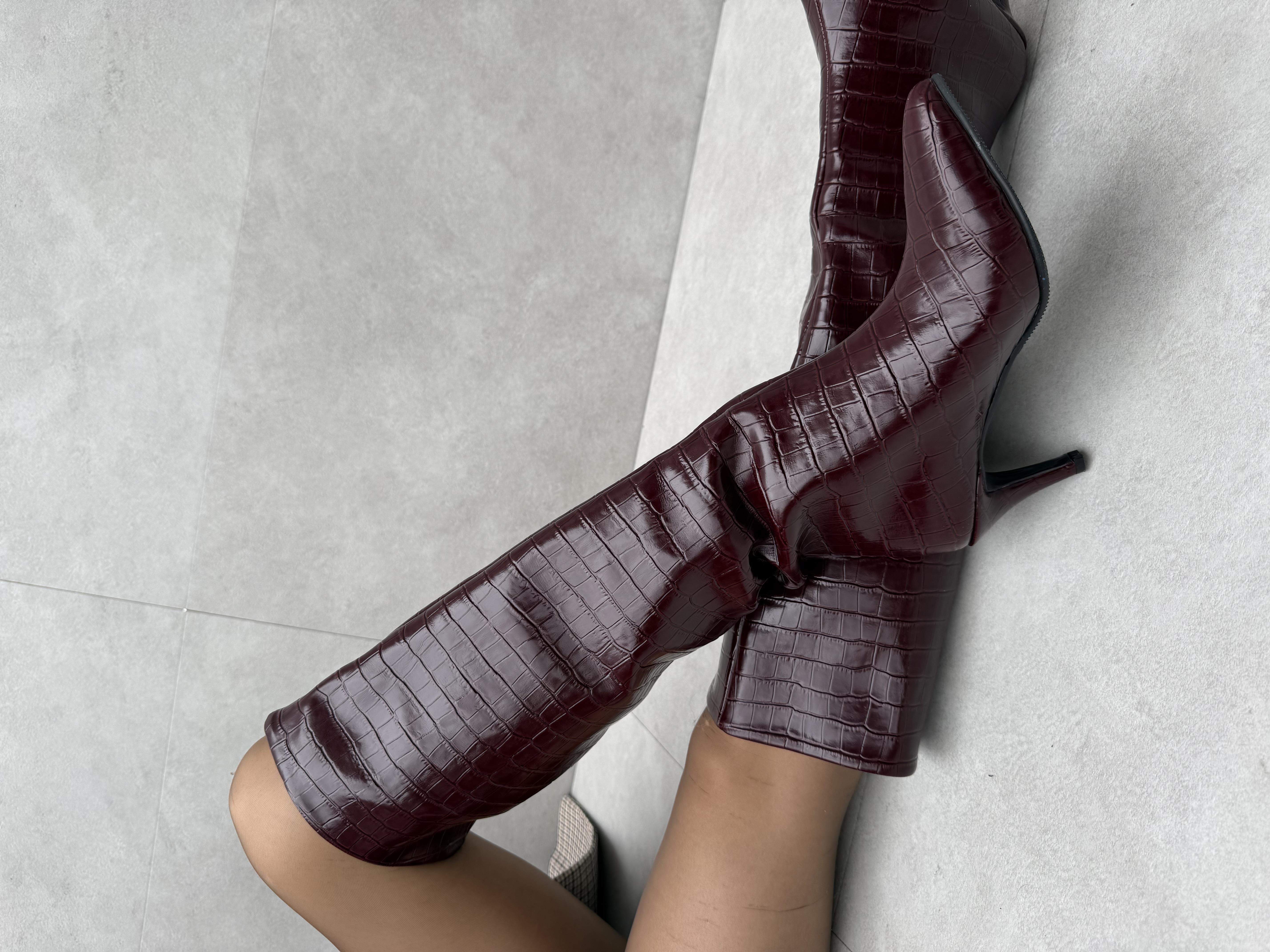 Jesica ( Vişne ) Croco İnce Topuklu Çizme (copy090123)