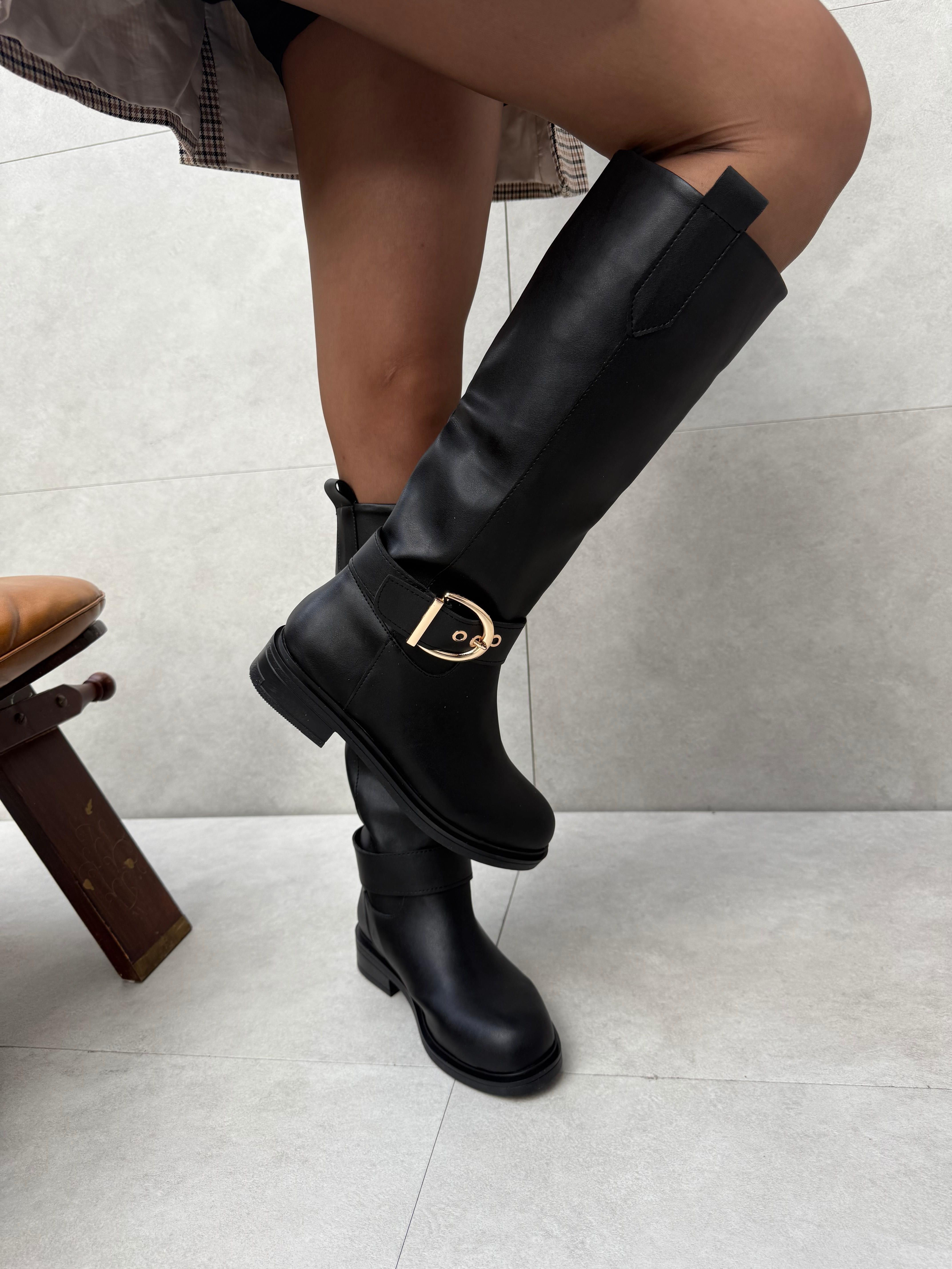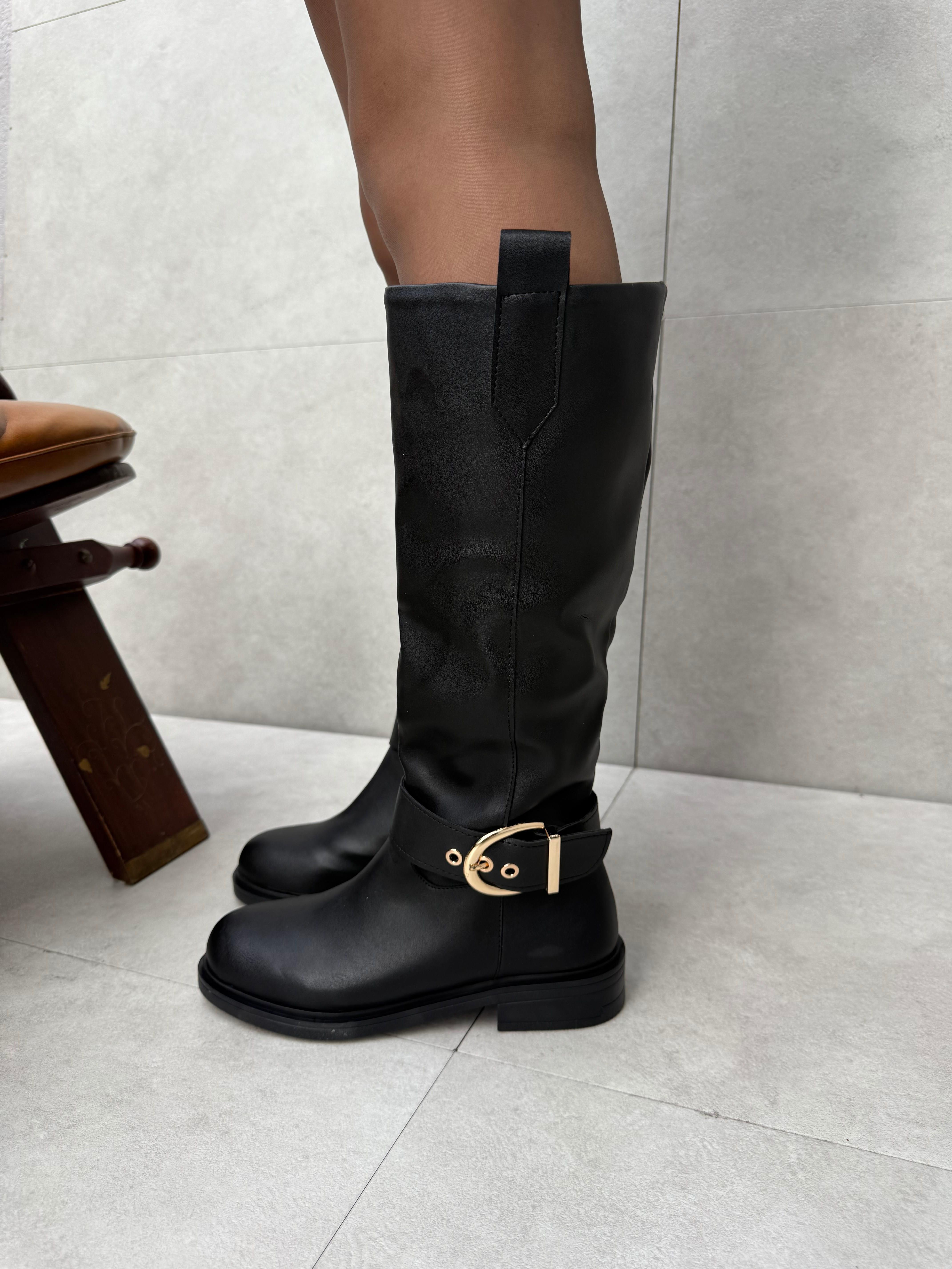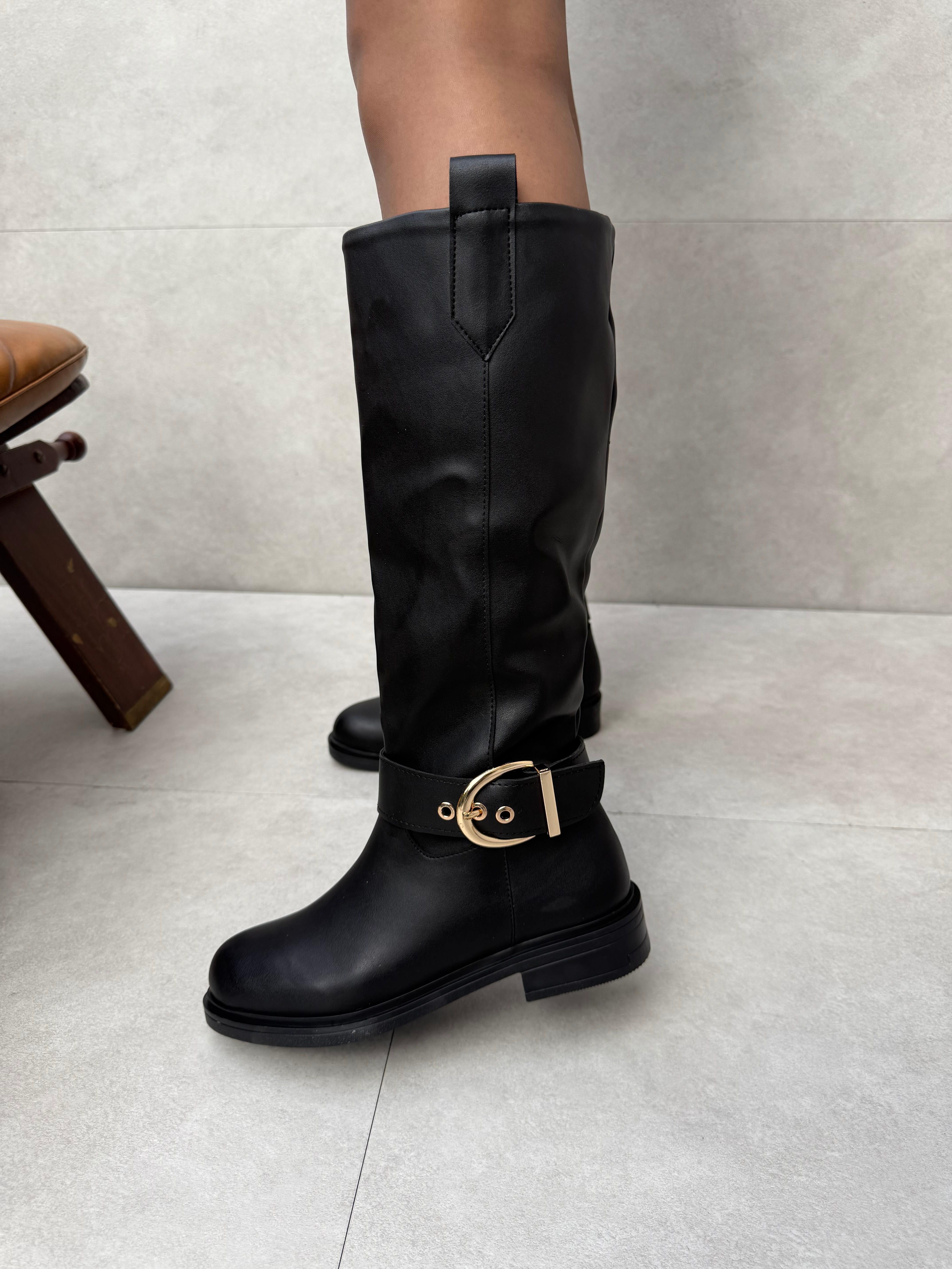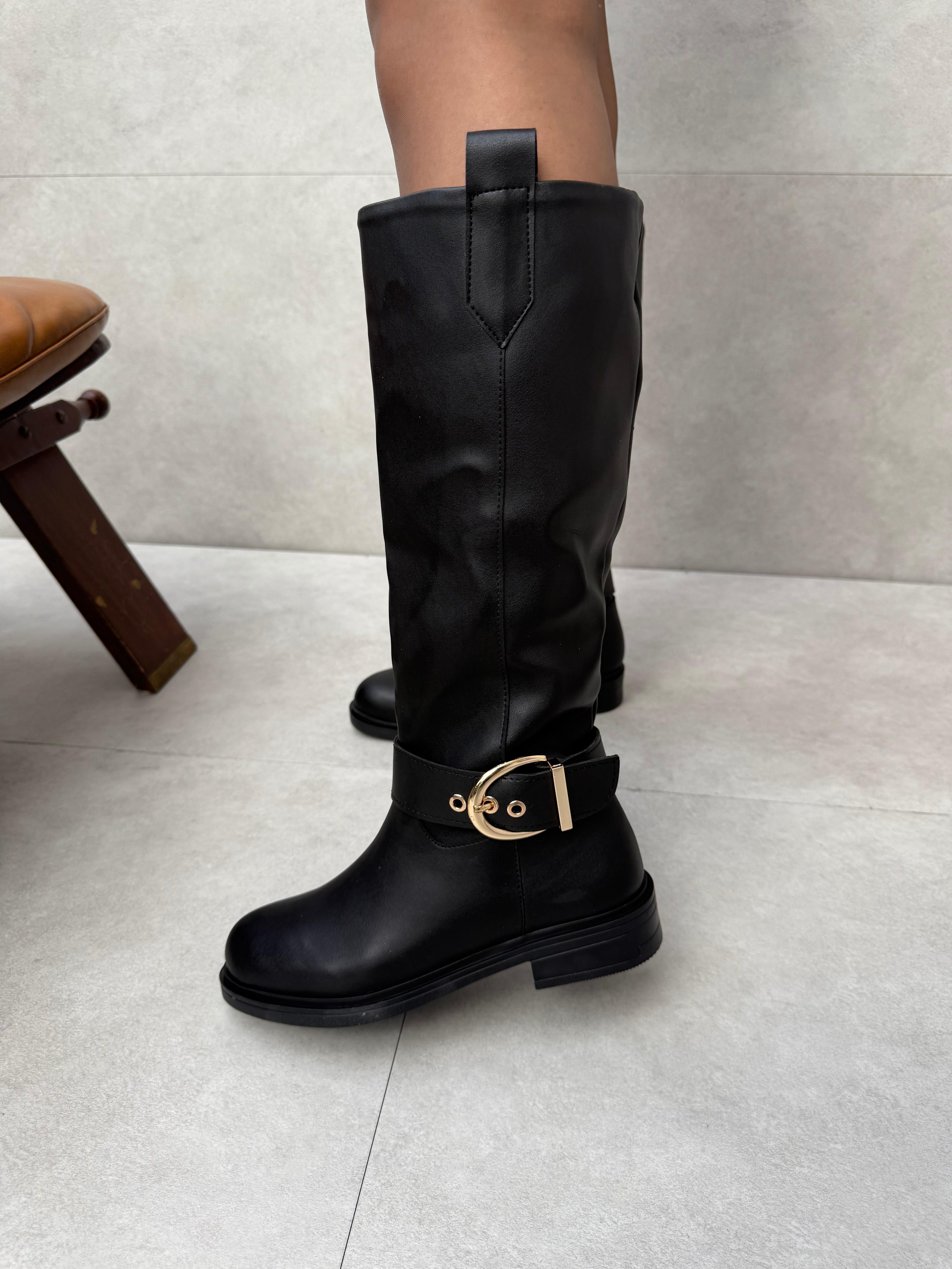 Karlen Siyah Deri Toka Detaylı Çizme (copycopy71ELV1)
