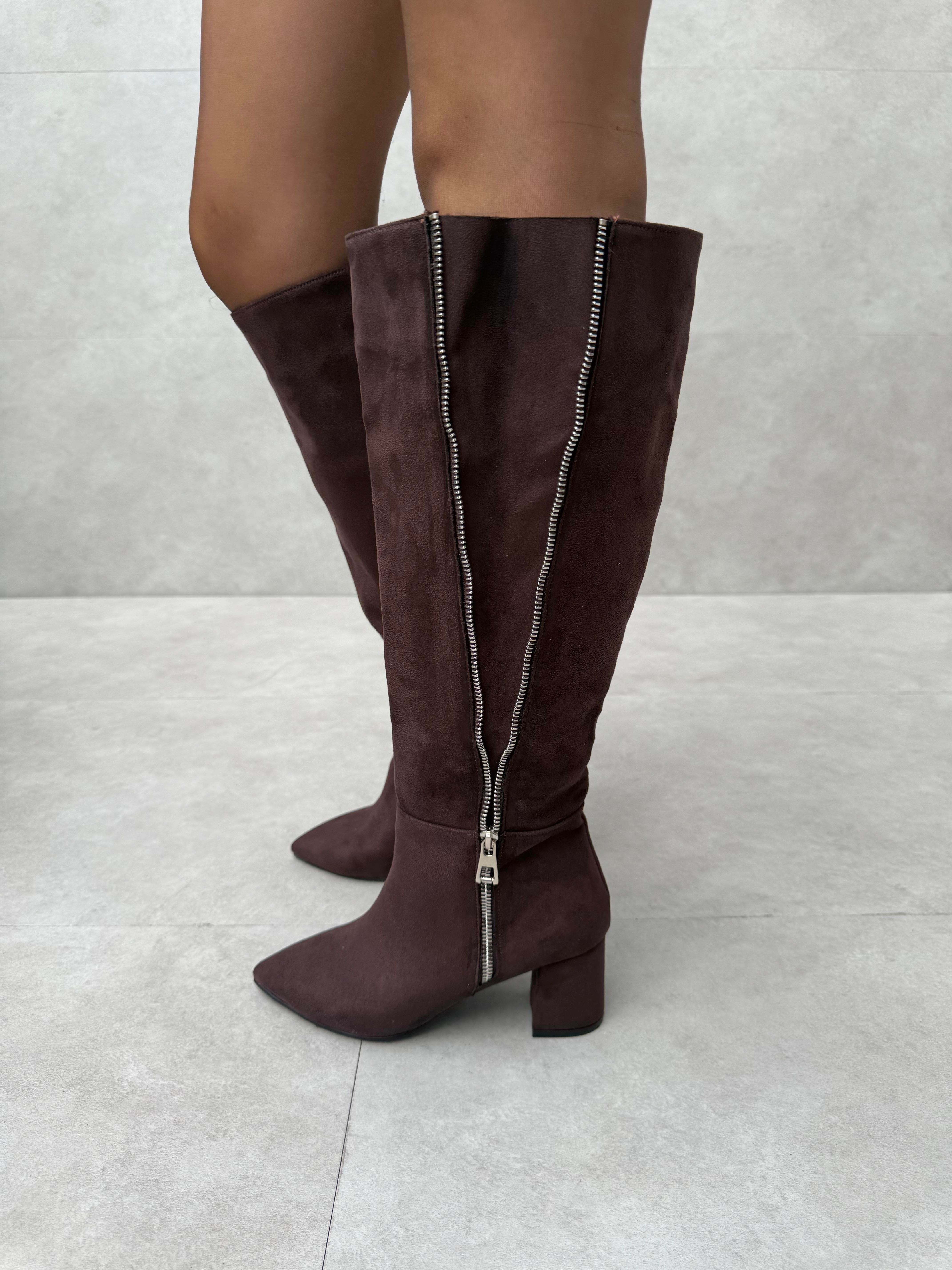 Maria Fermuarlı Çizme ( Acı Kahve ) Süet (copy5411230)
