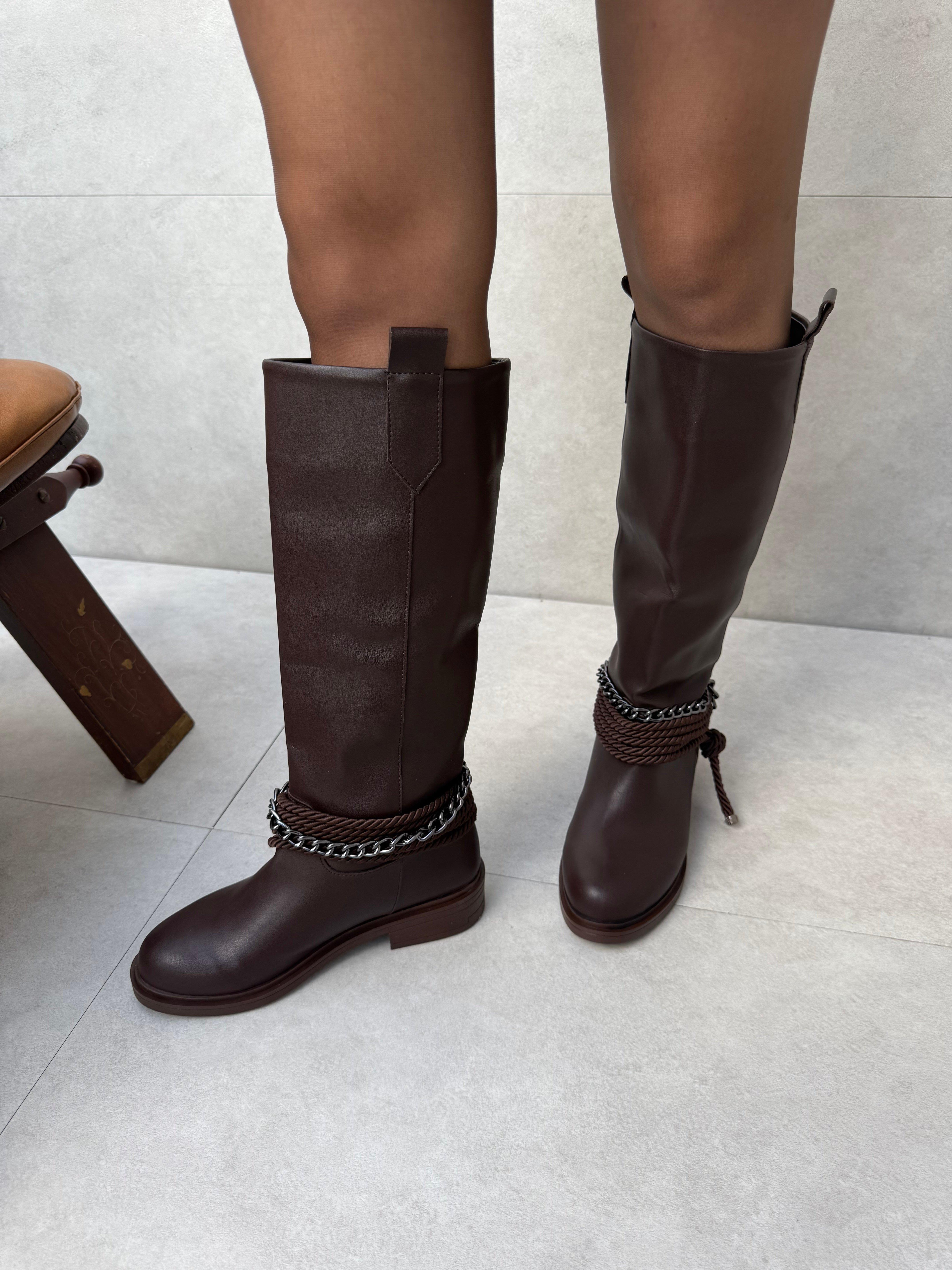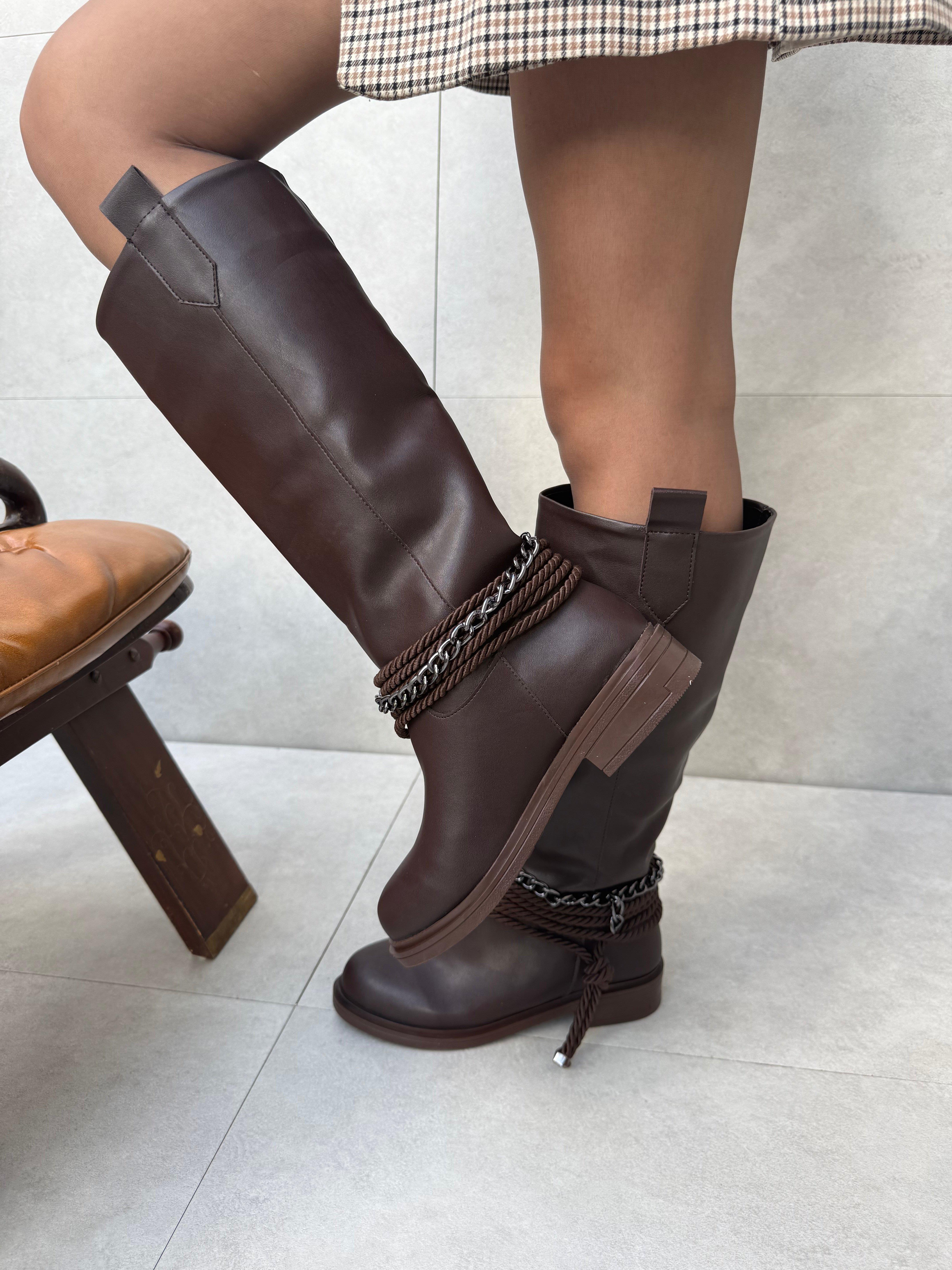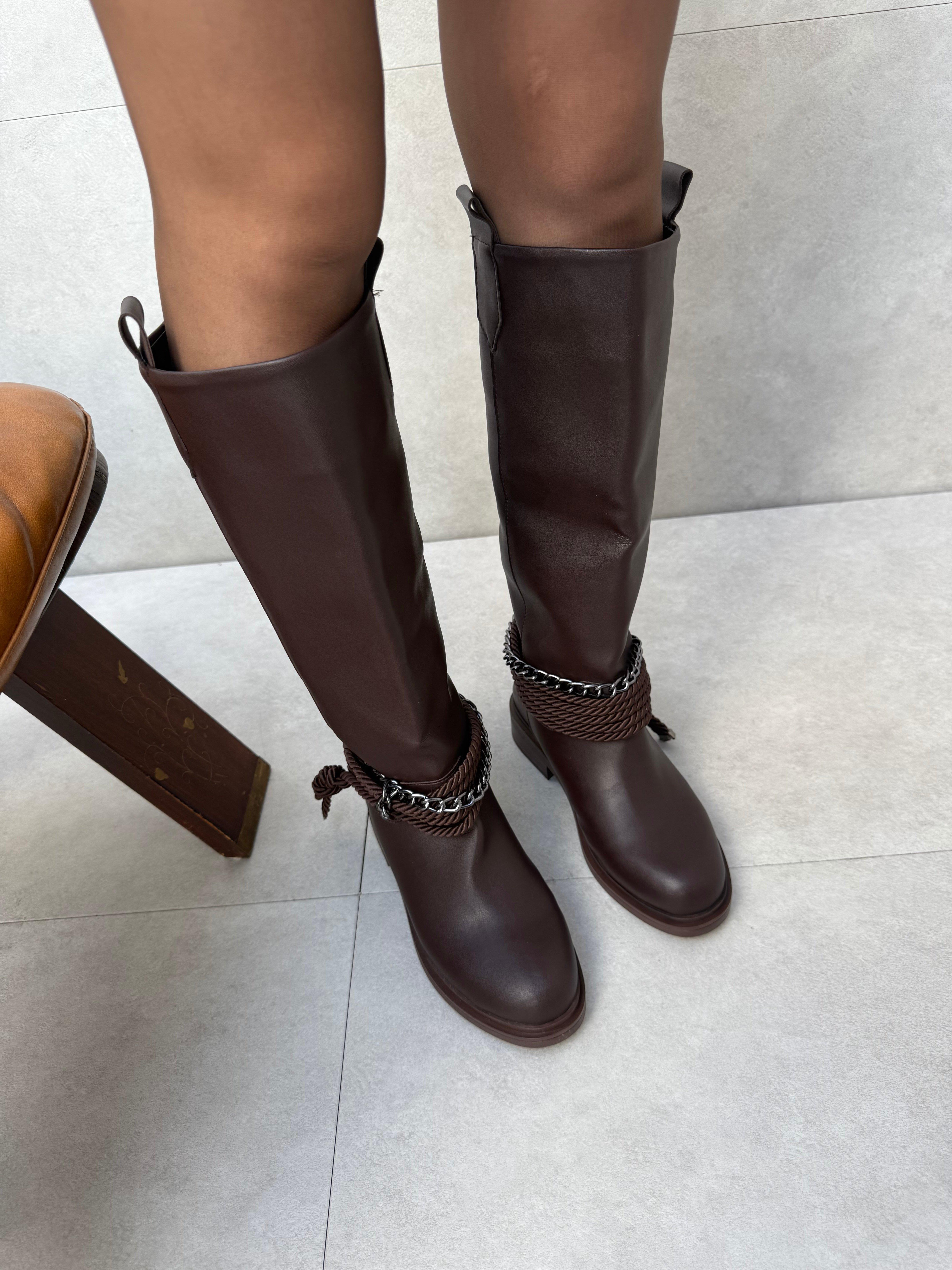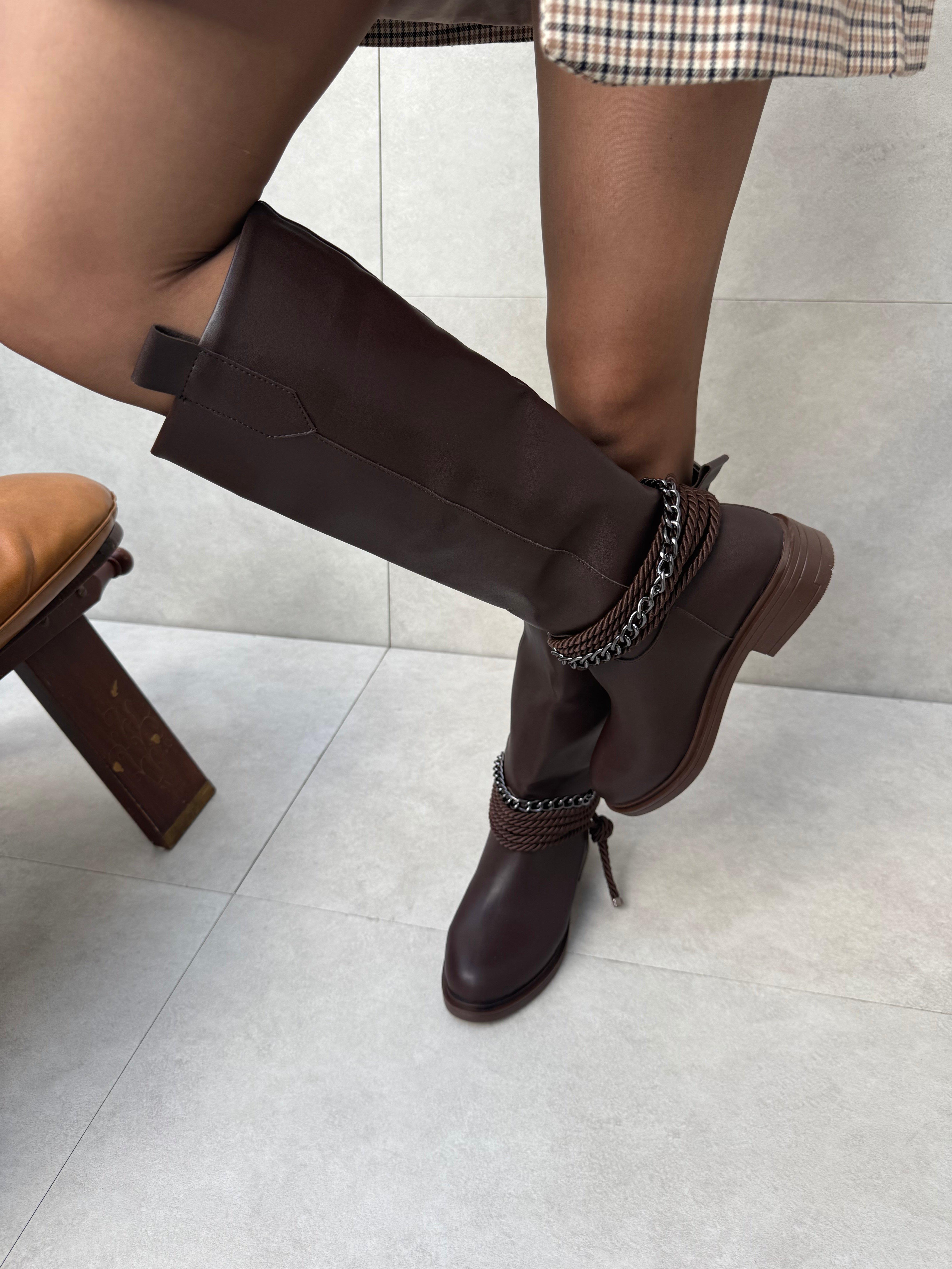Miley Acı Kahve Deri Aksesuar Detaylı Çizme (copyELV-44111e)