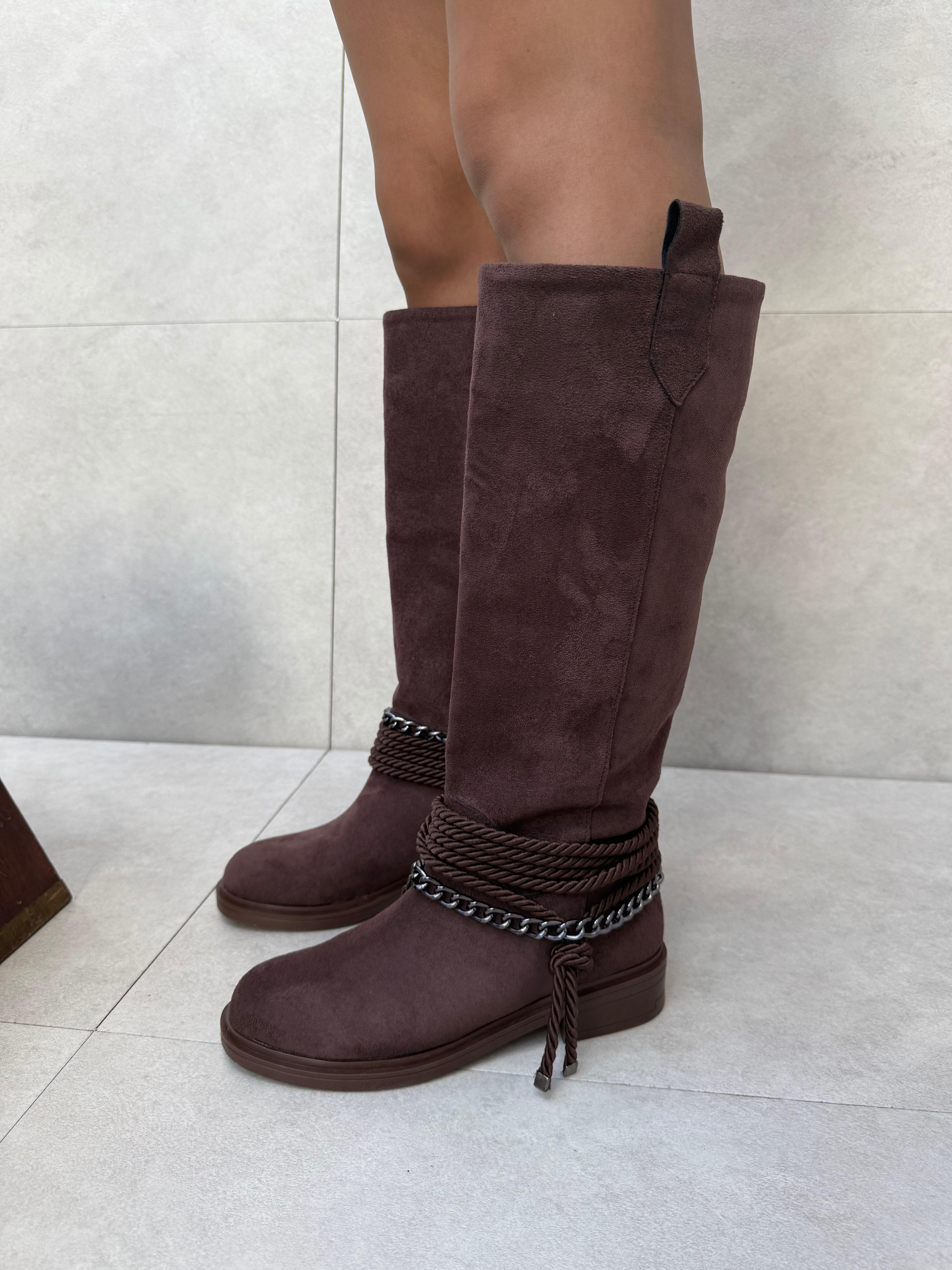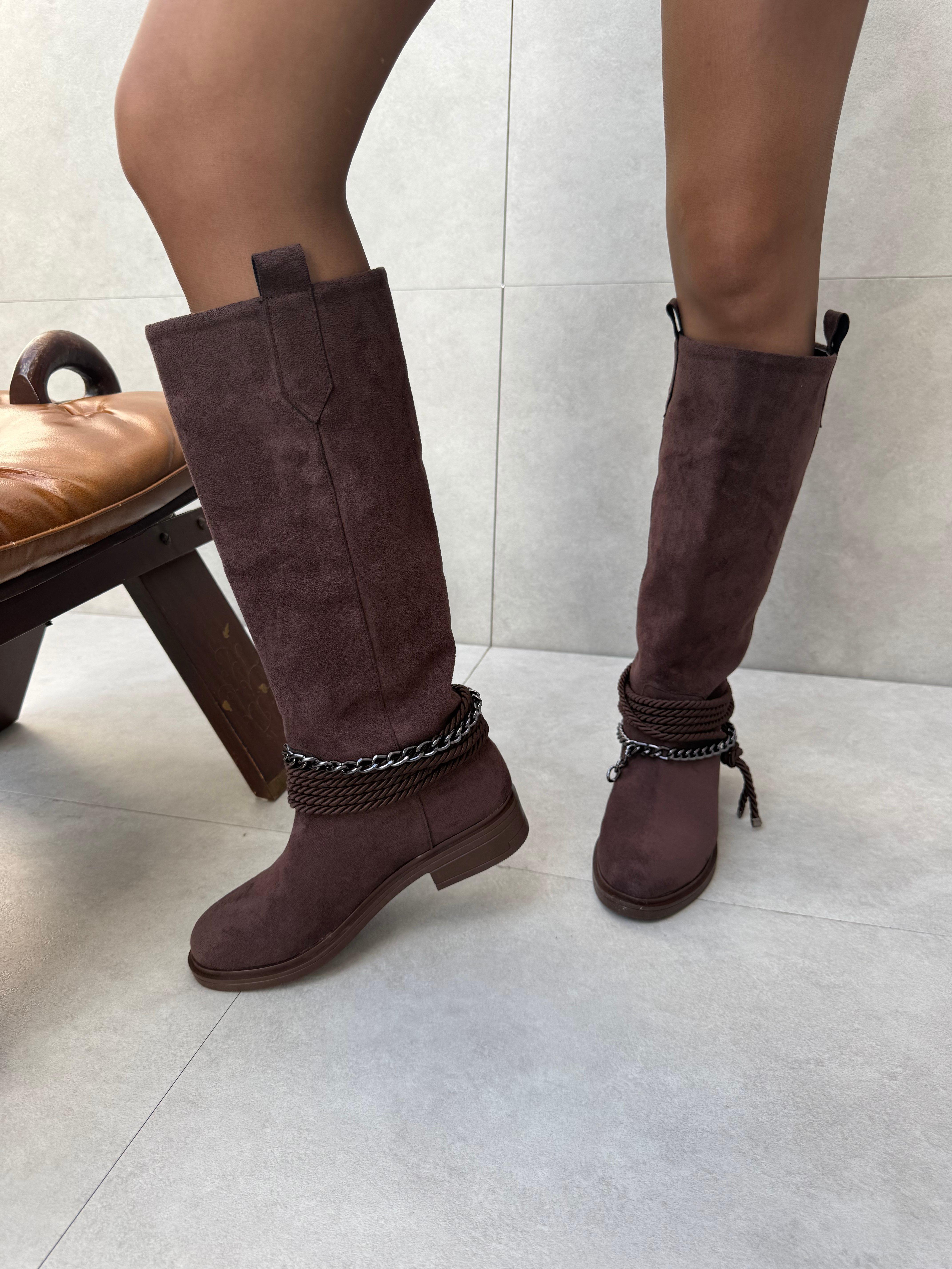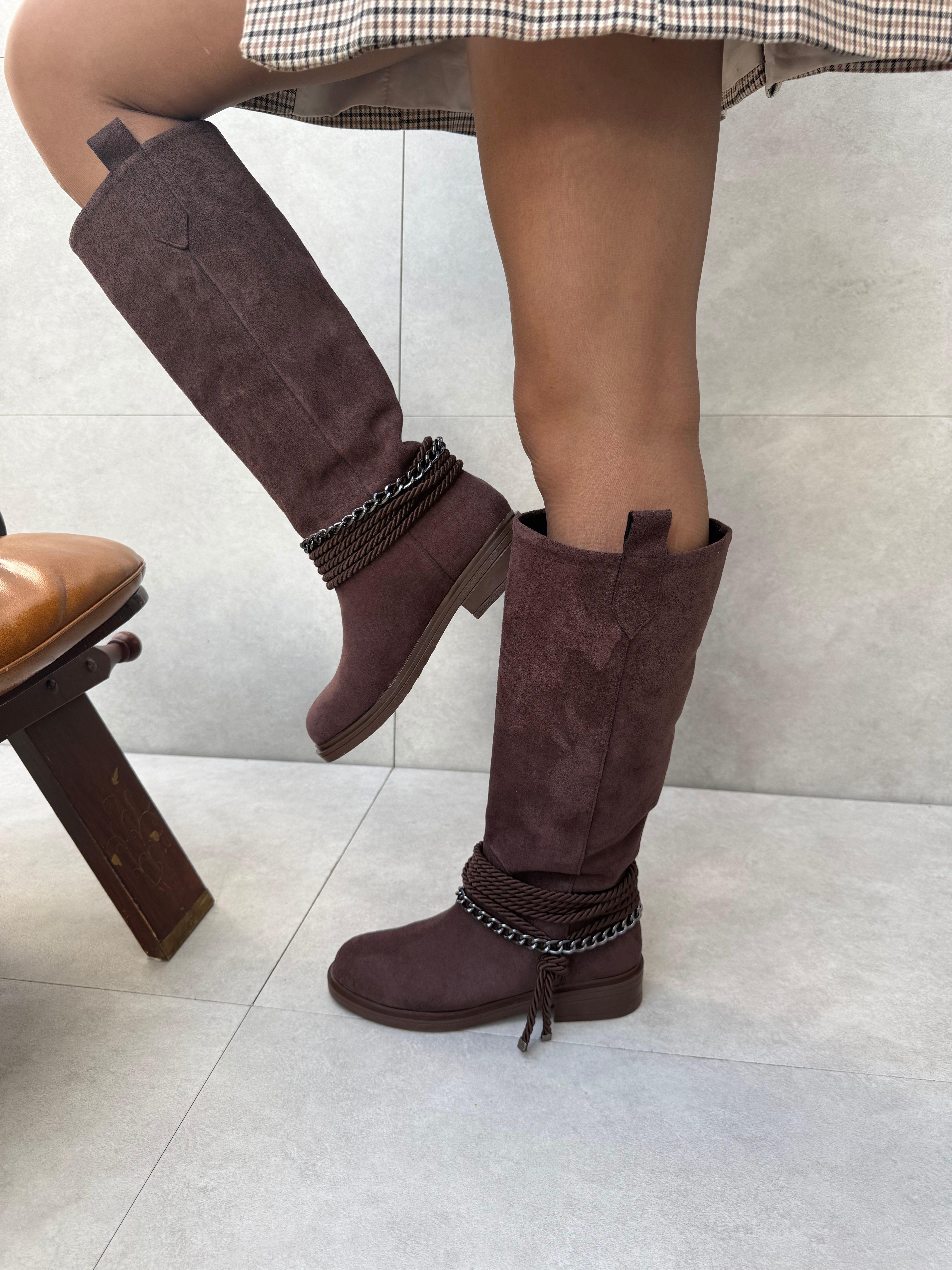 Miley Acı Kahve Süet Aksesuar Detaylı Çizme (copycopycopyELV-44111e)