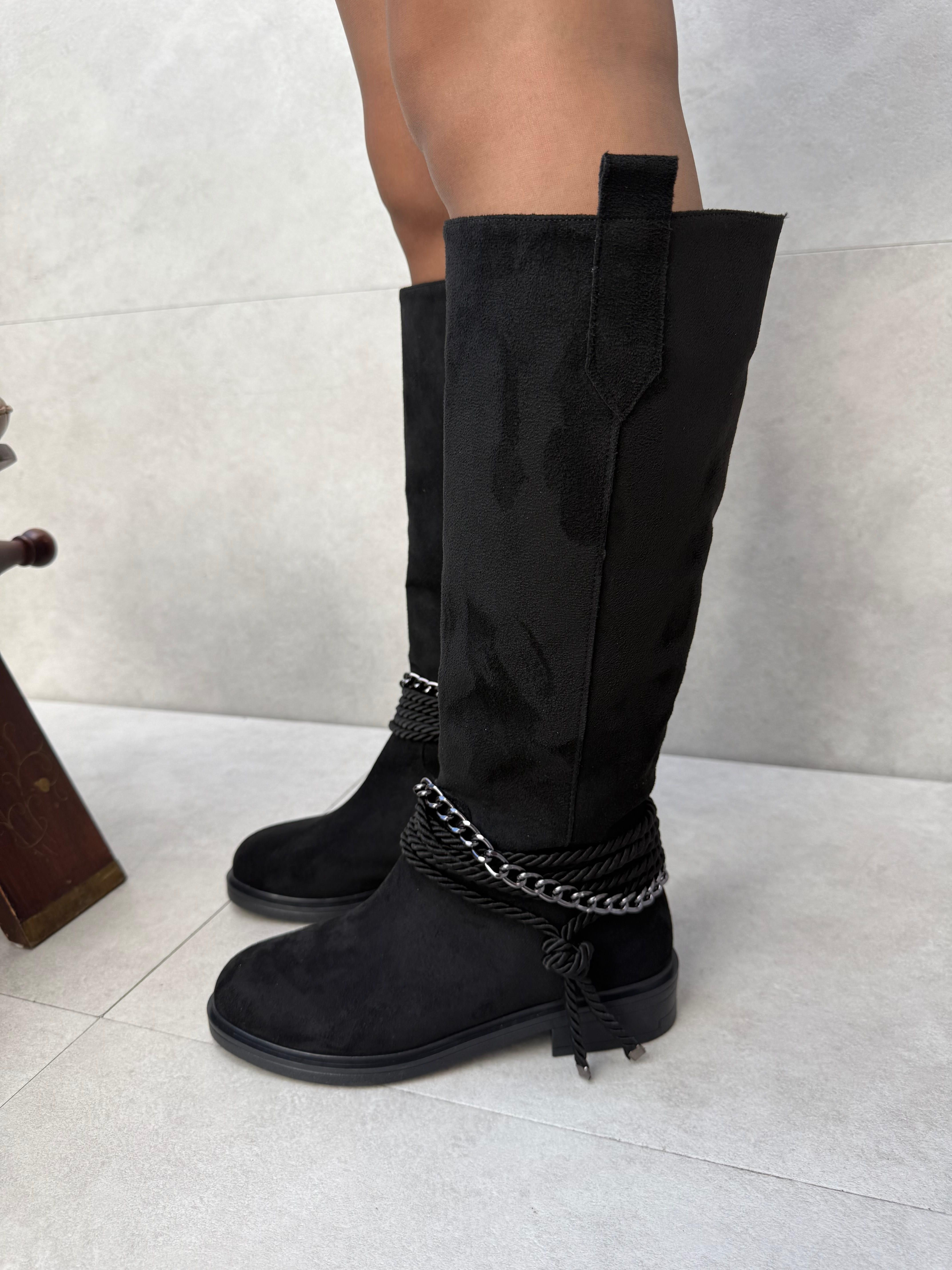 Miley Siyah Süet Aksesuar Detaylı Çizme (ELV-44111e)