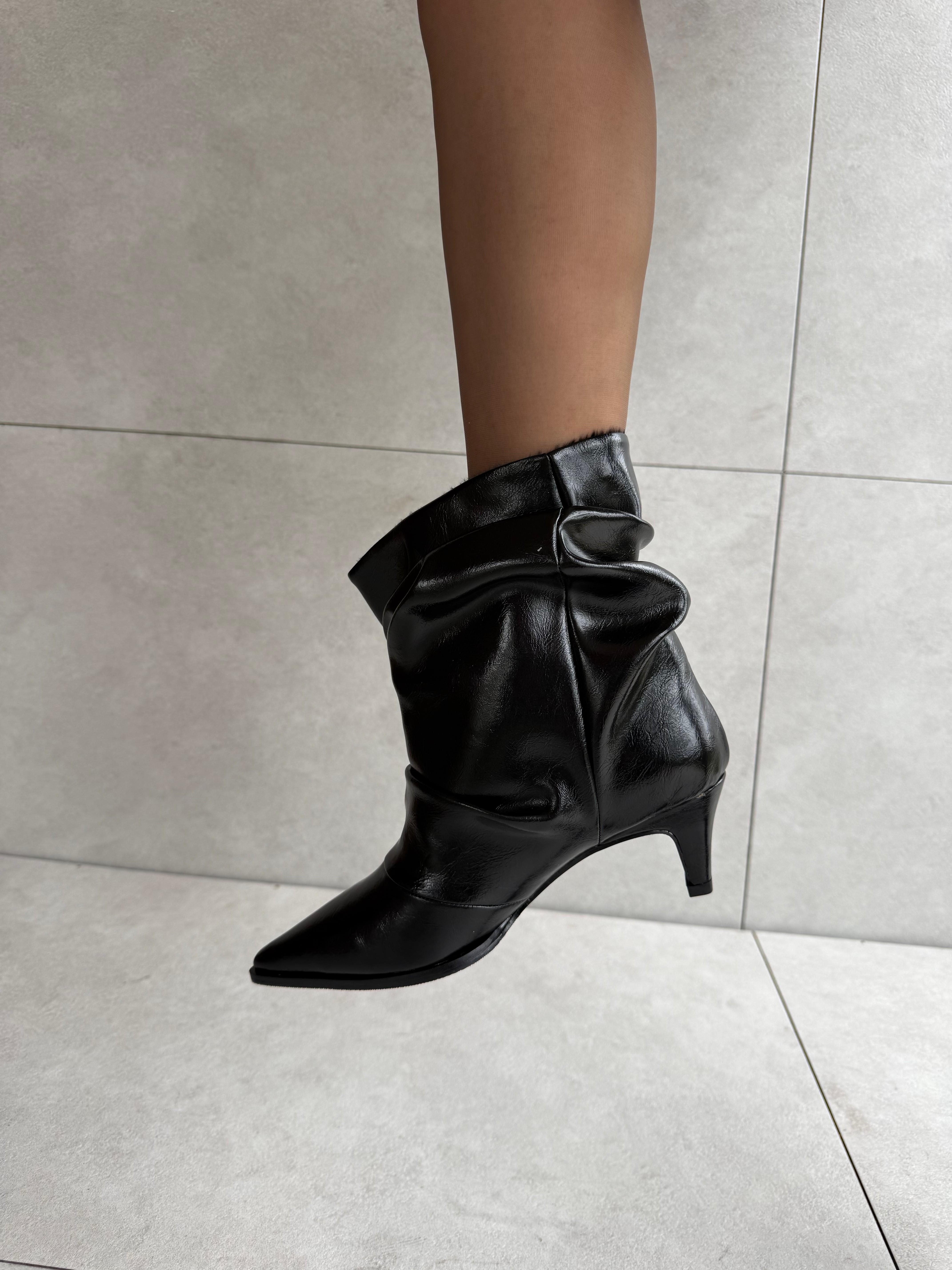 Moya Siyah Kırışık Rugan XL Bilek Kesimli Kısa Kadın Bot (Moya-Siyah Rugan)