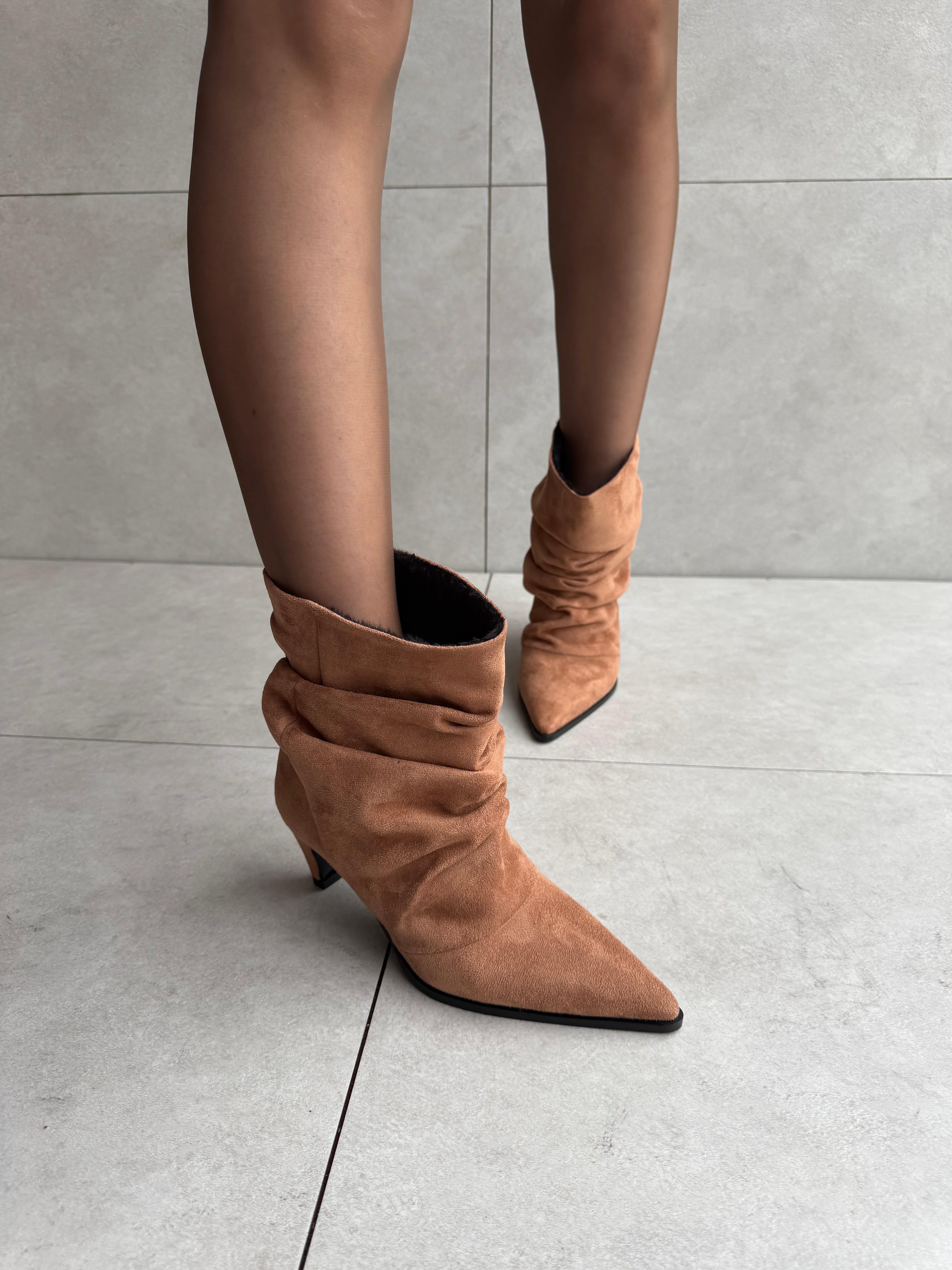 Moya Taba Süet XL Bilek Kesimli Kısa Kadın Bot (Moya-Taba Süet)