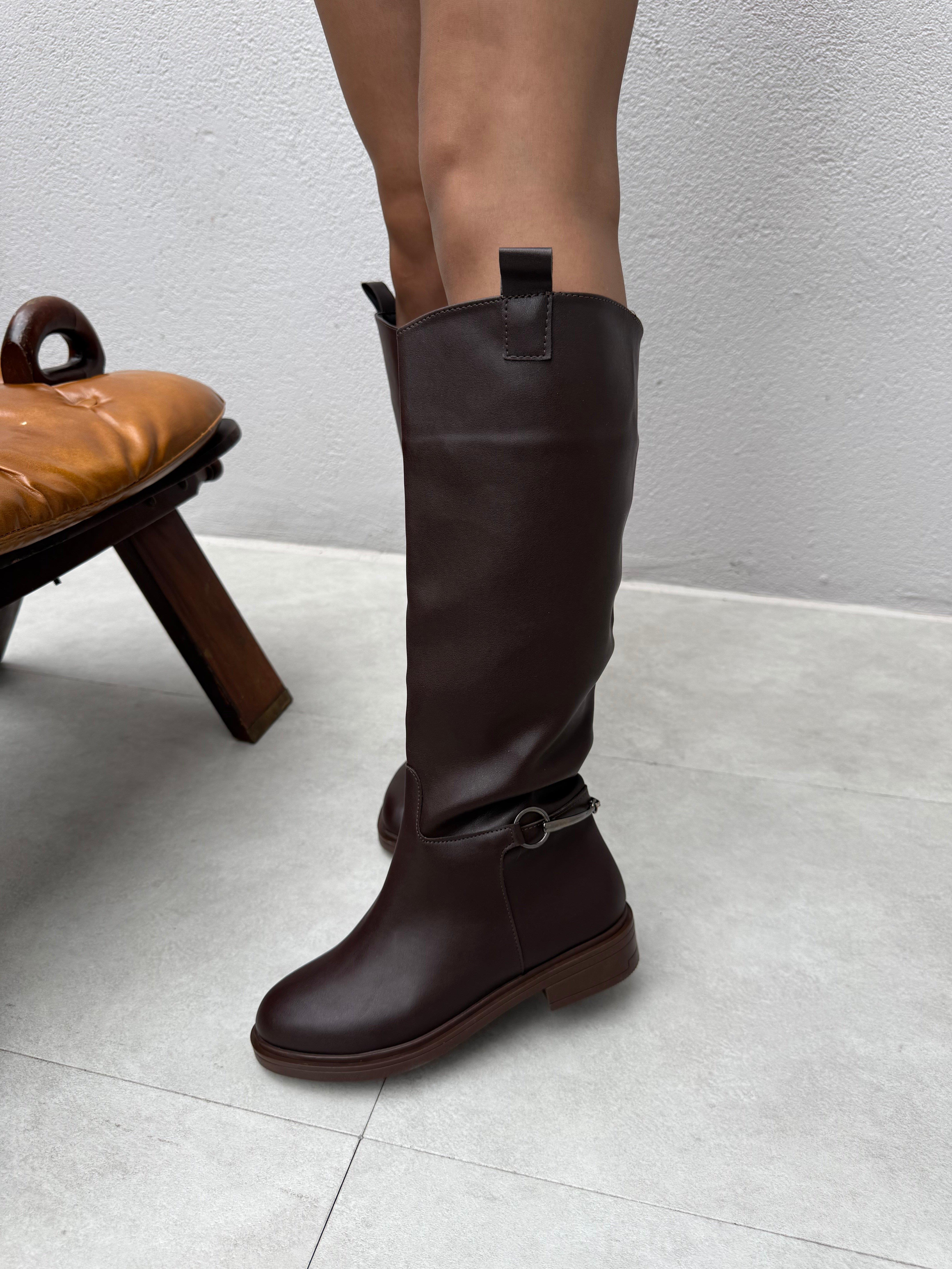Nesta Acı Kahve Deri Aksesuar Detaylı Çizme (copyELV-22-2)