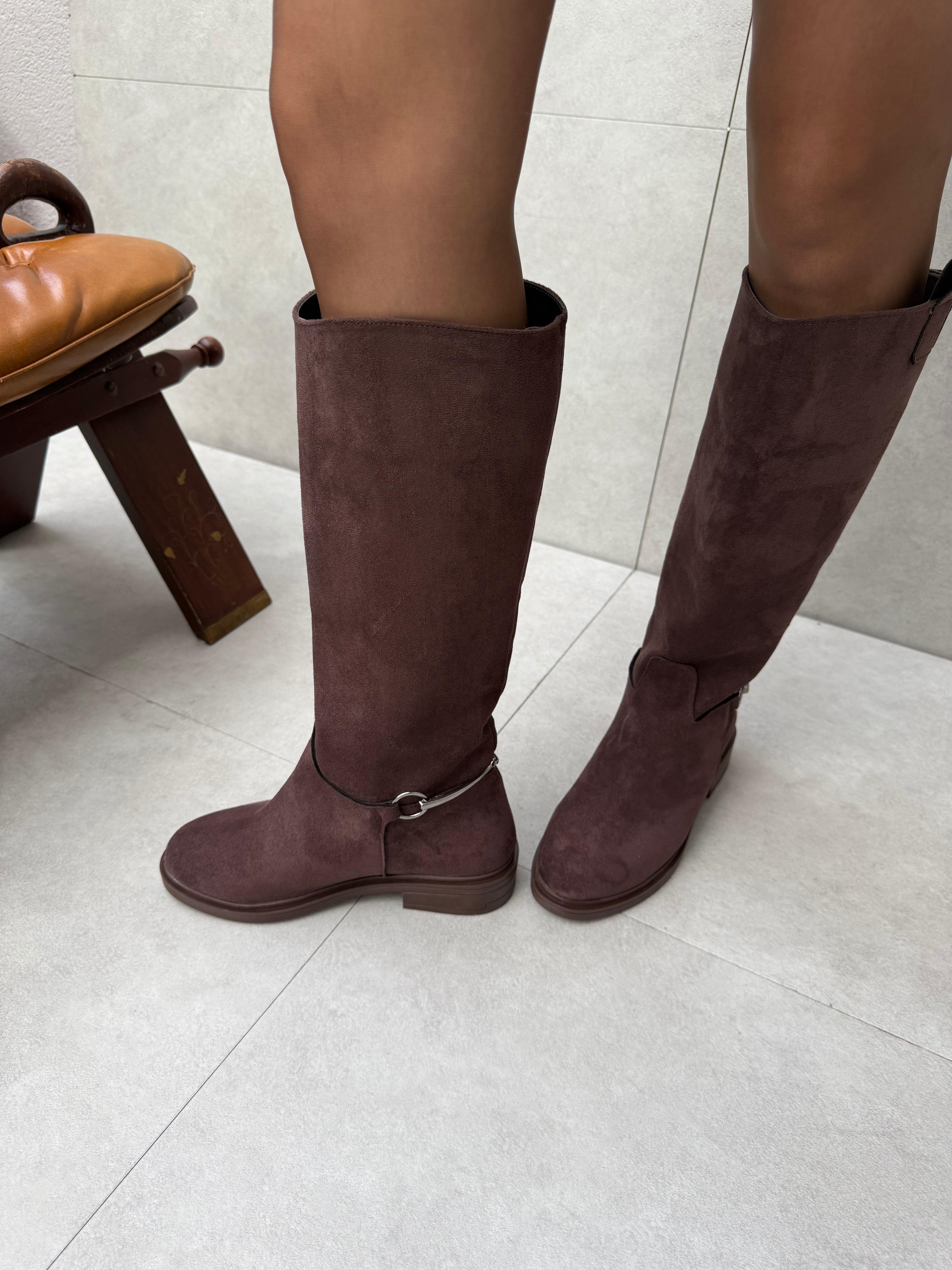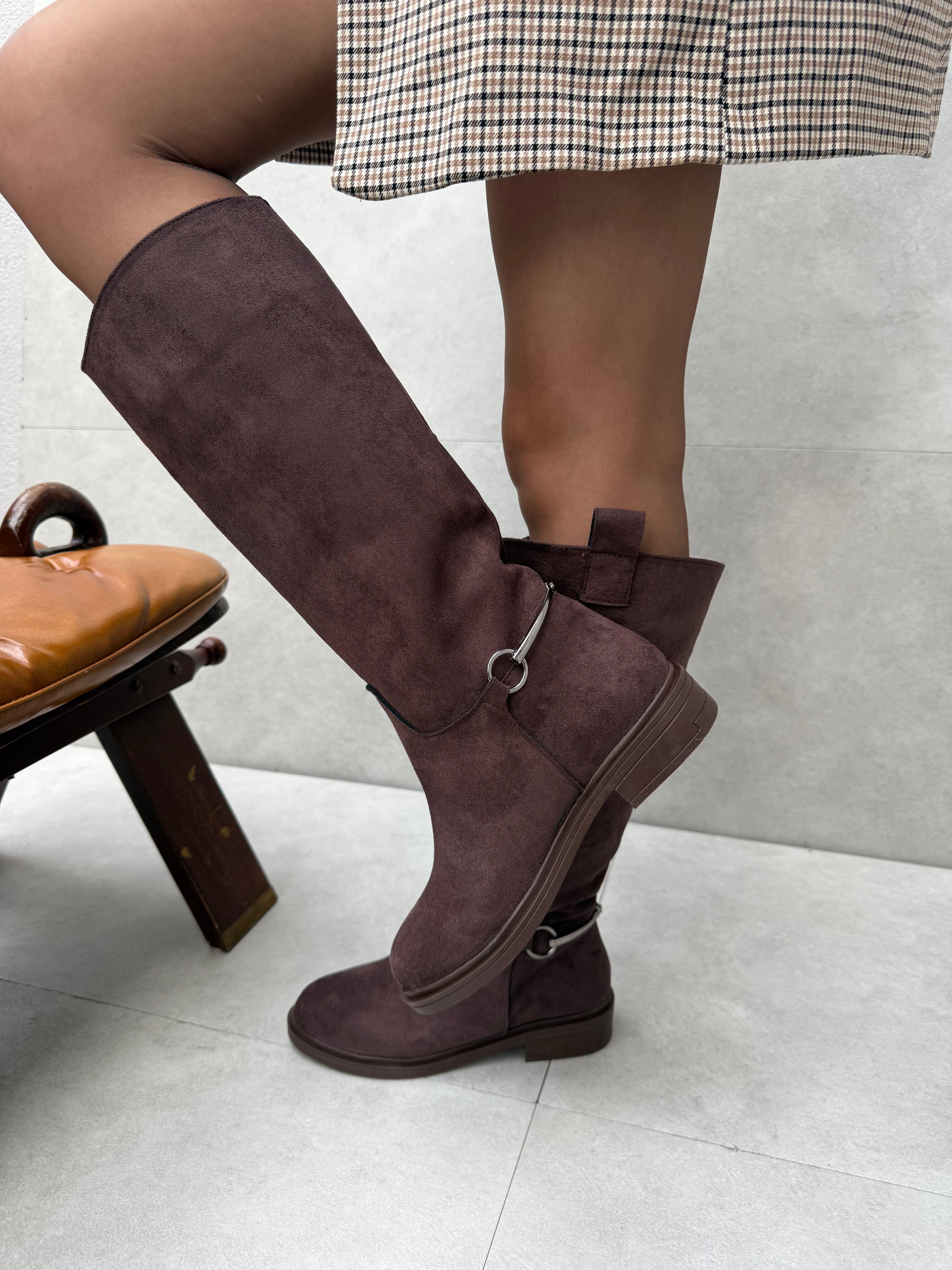 Nesta Acı Kahve Süet Aksesuar Detaylı Çizme (copycopyELV-22-2)