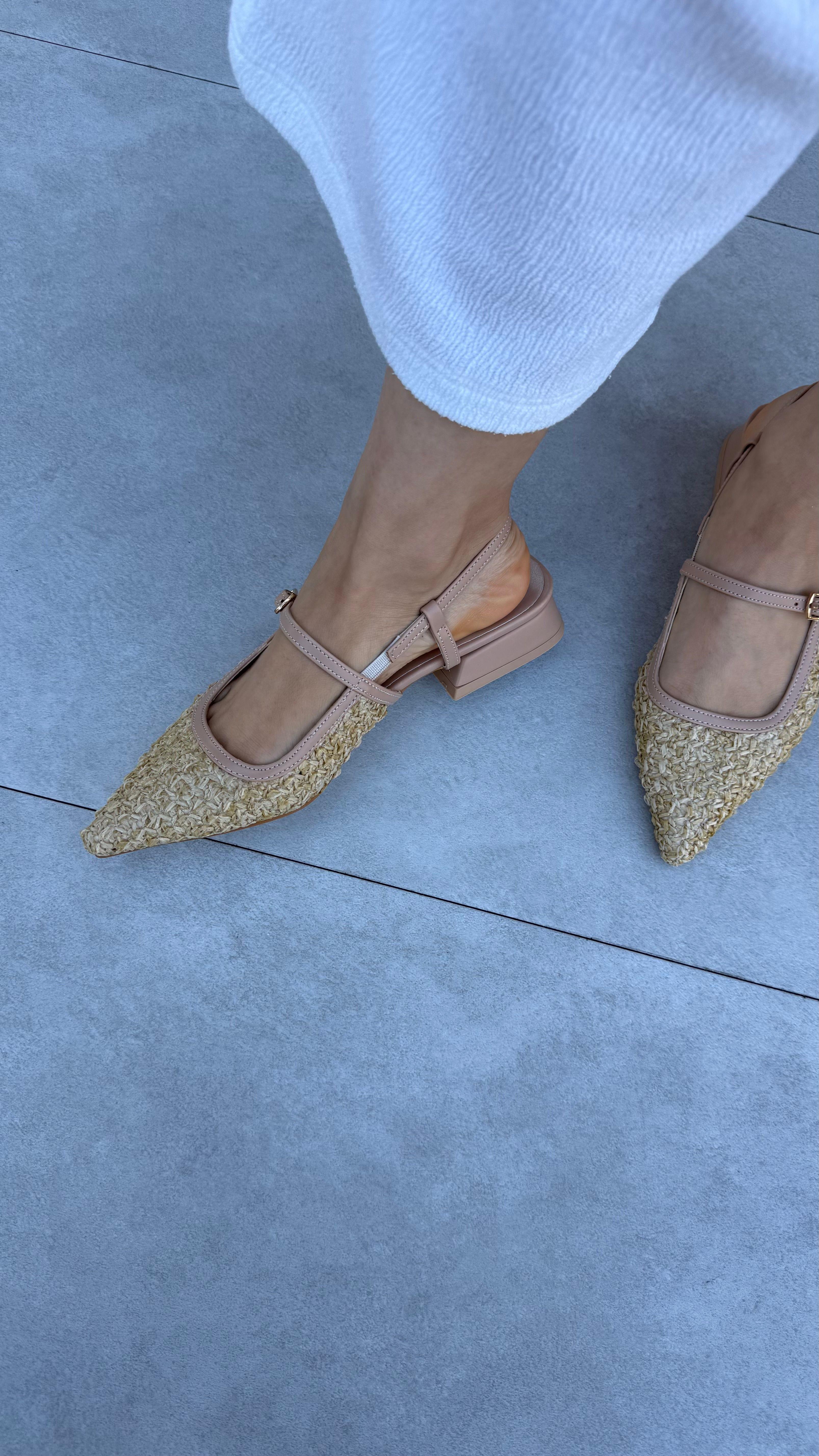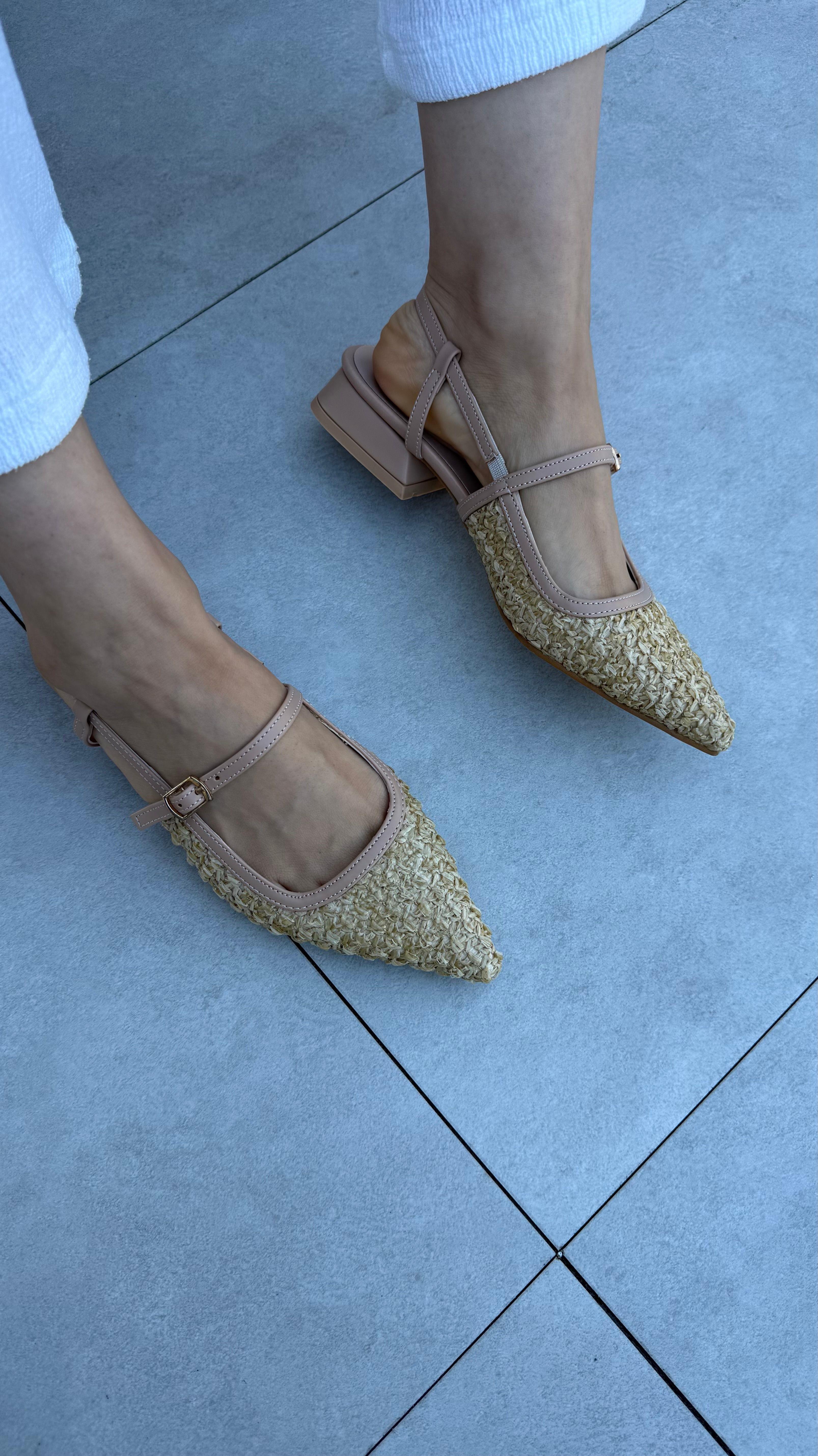 Lexa Sivri Burun Sade Hasır Kumaş Topuklu Ayakkabı (Lexa-Sade Hasır Kumaş)