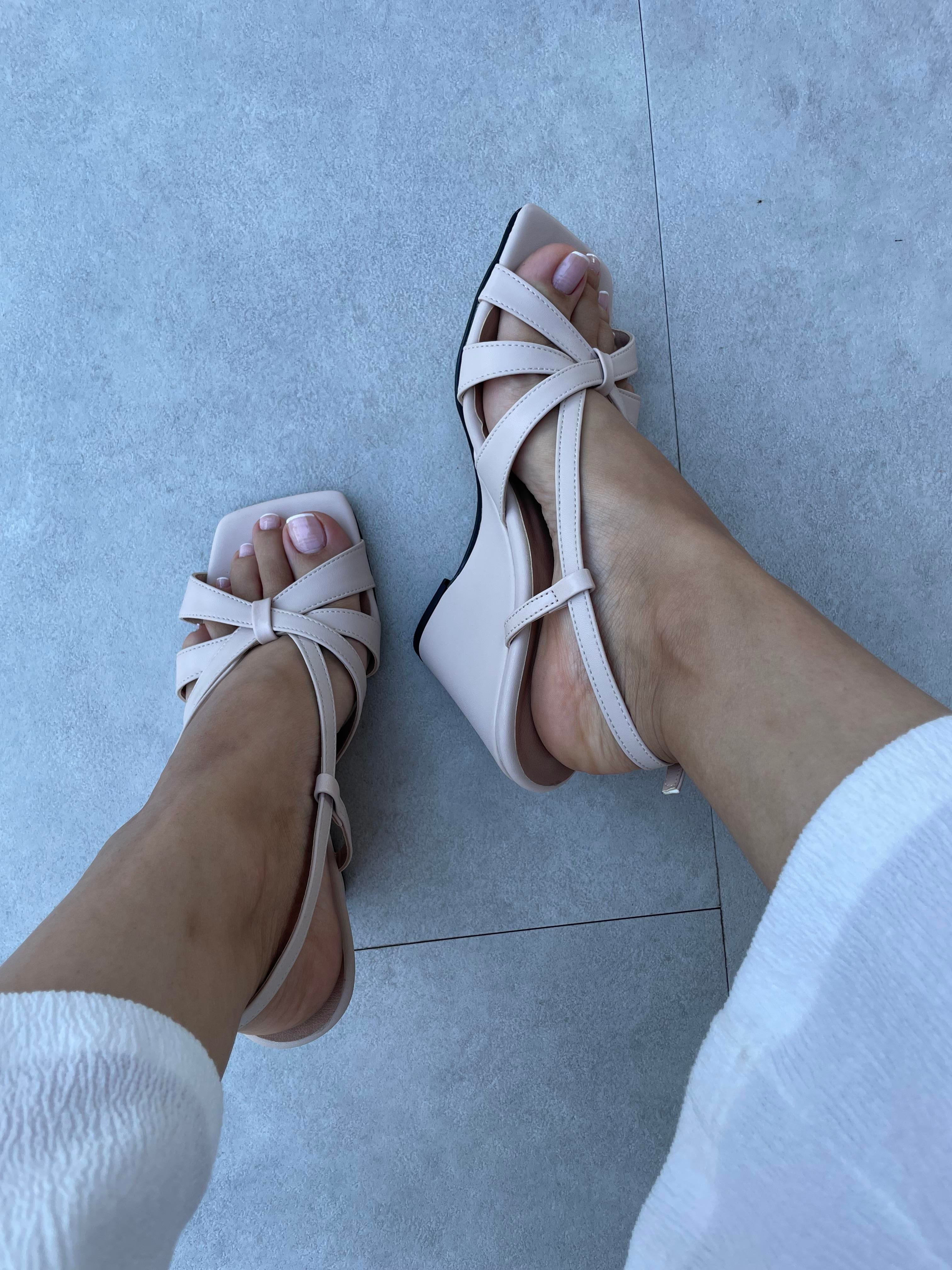 Sesta Bej Renk Çapraz Bantlı Platformlu Topuklu Ayakkabı (Sesta-Bej )