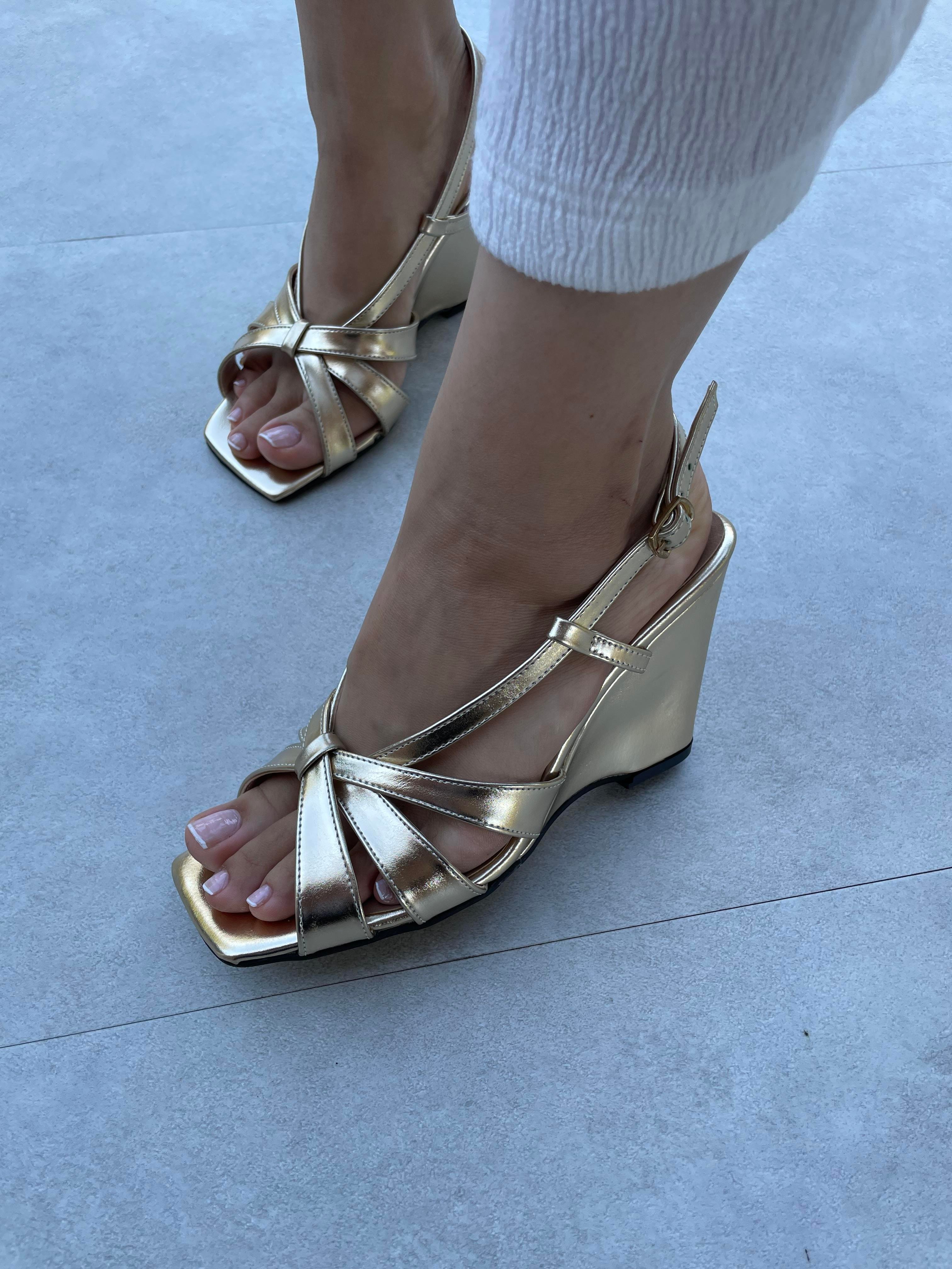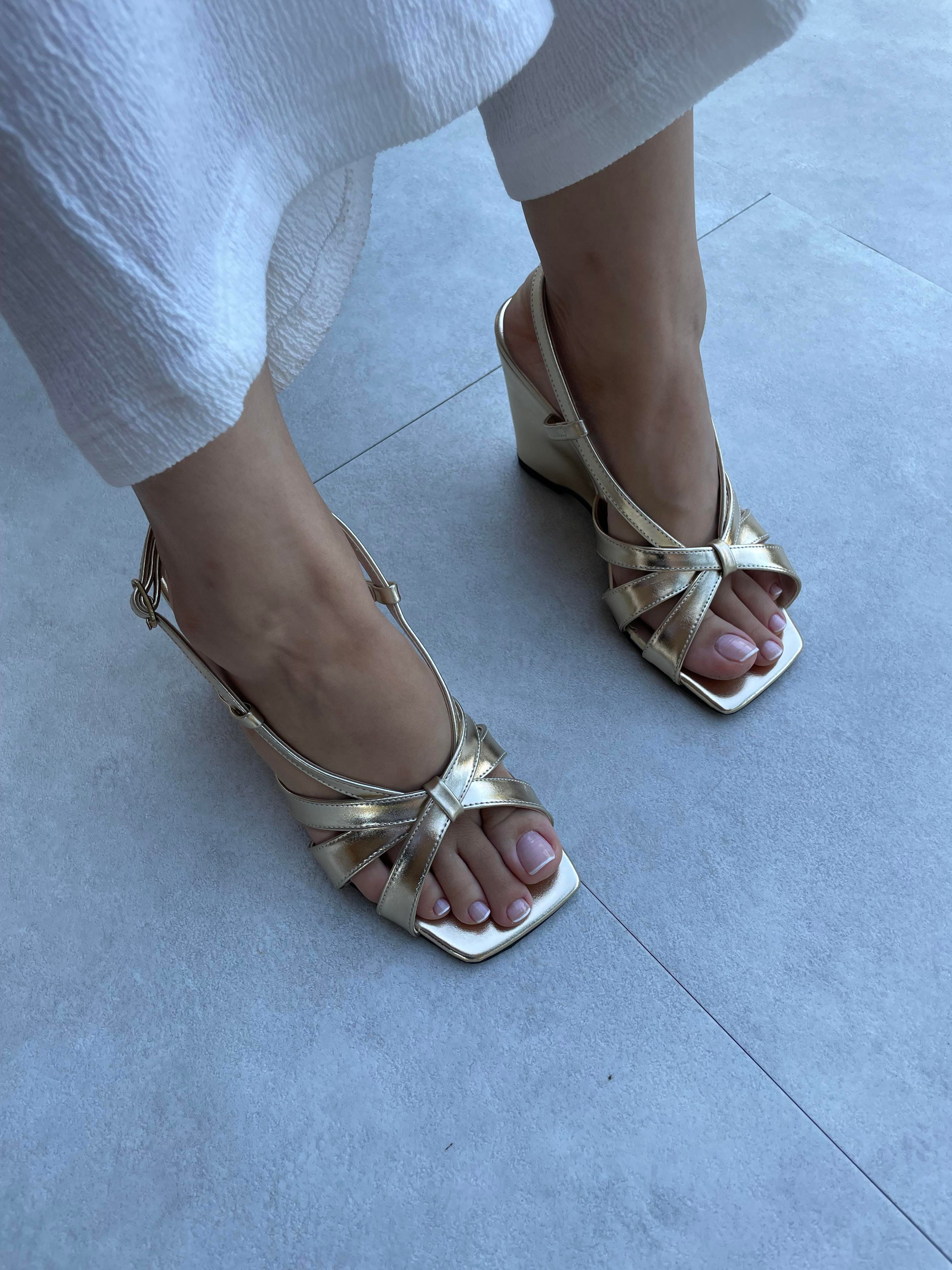 Sesta Gold Renk Çapraz Bantlı Platformlu Topuklu Ayakkabı (Sesta-Gold )
