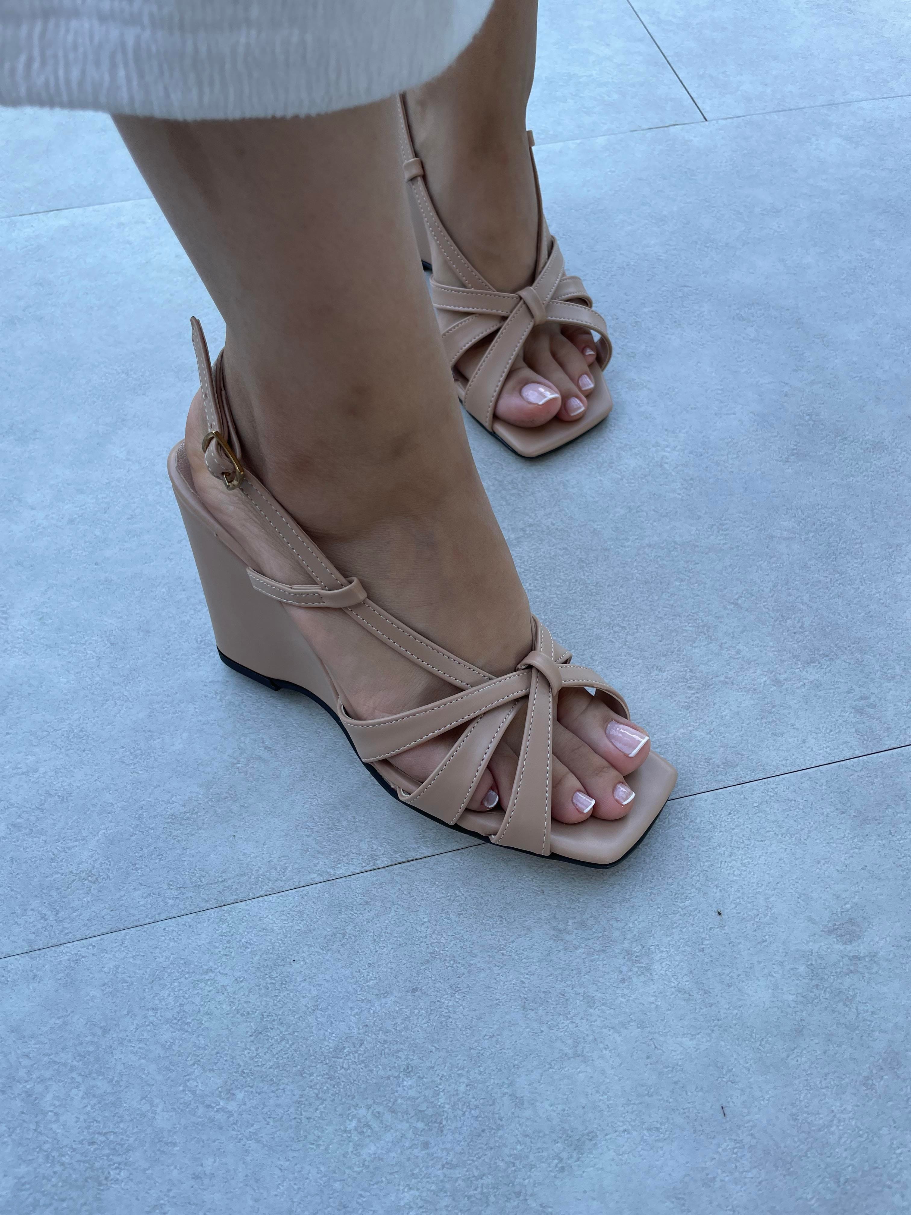 Sesta Nude Renk Çapraz Bantlı Platformlu Topuklu Ayakkabı (Sesta-Nude )