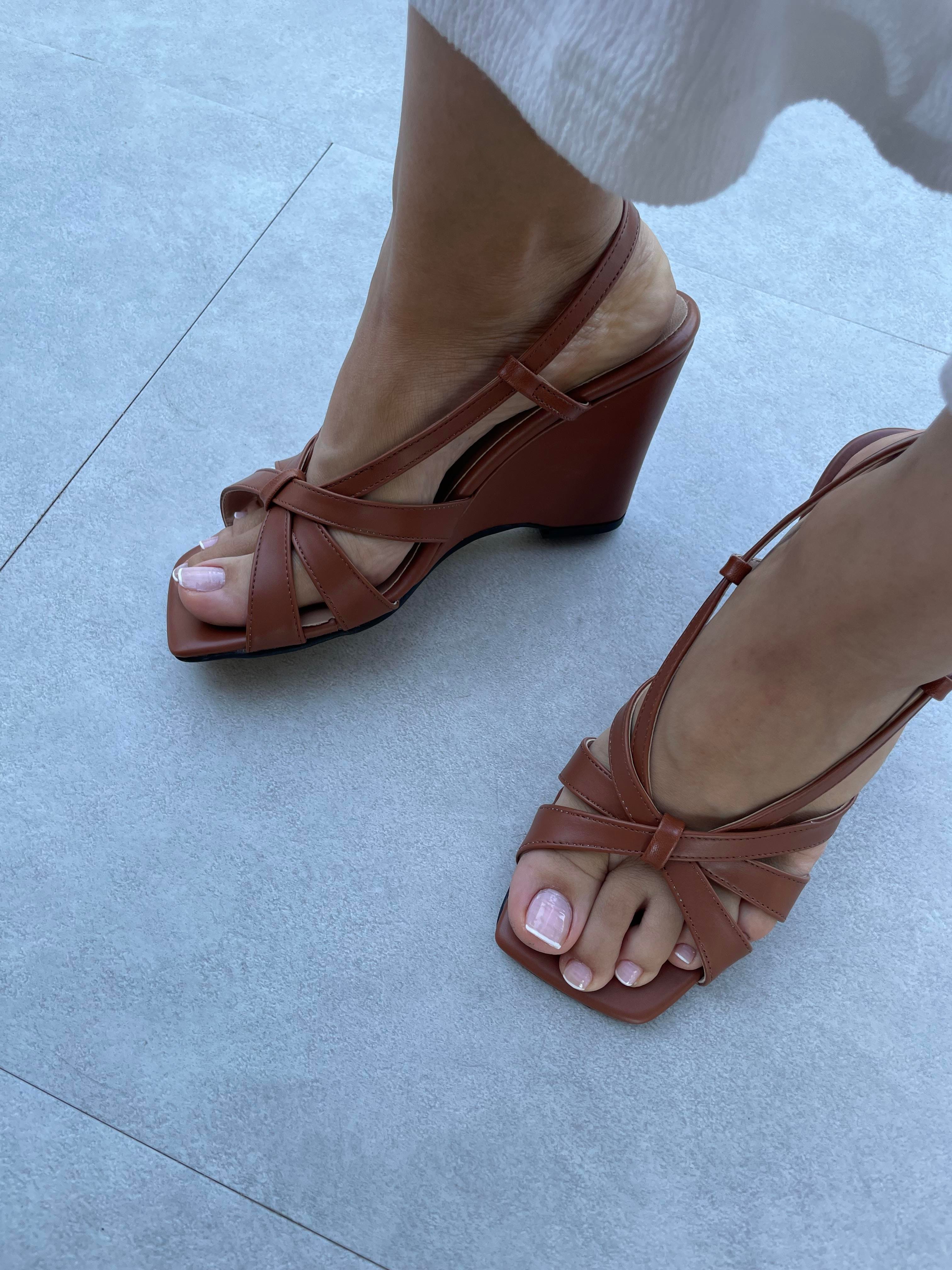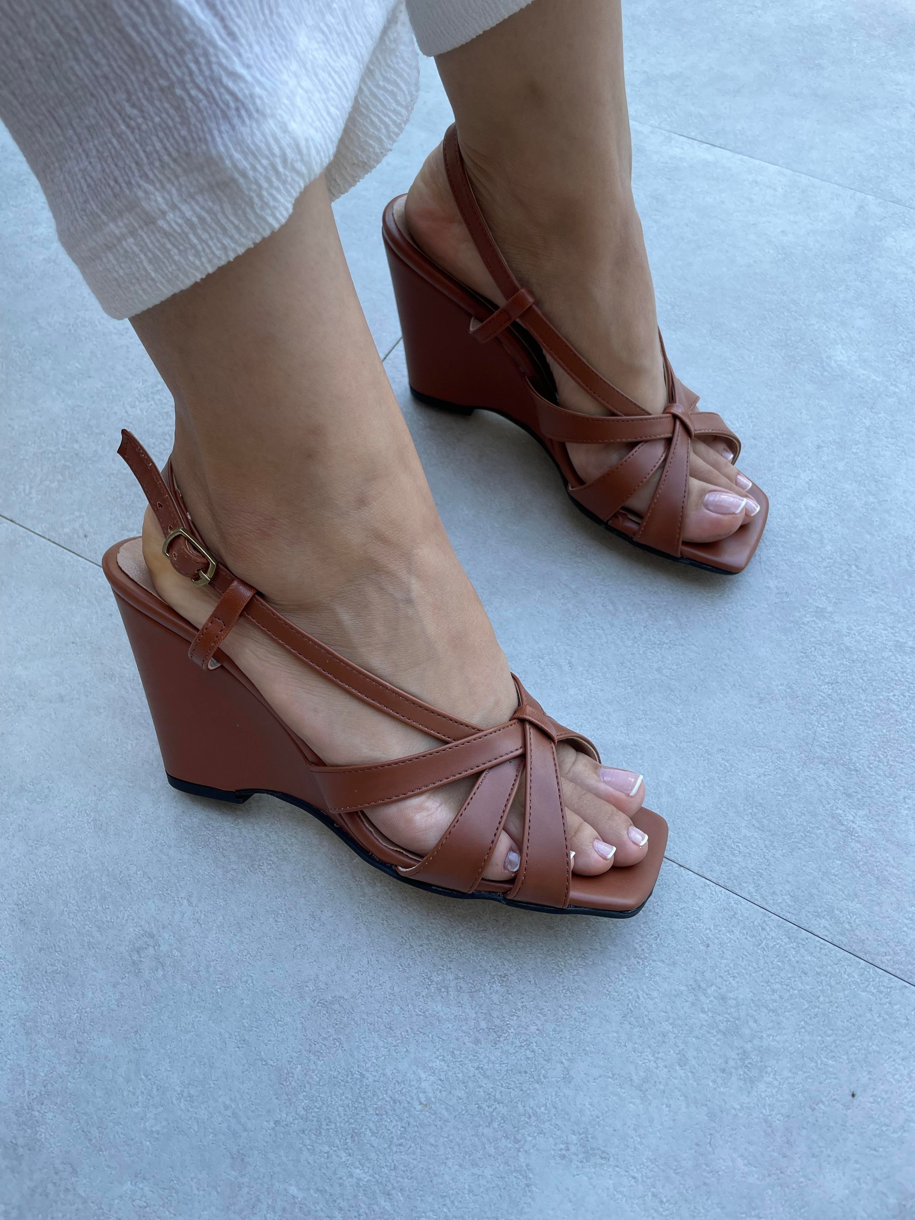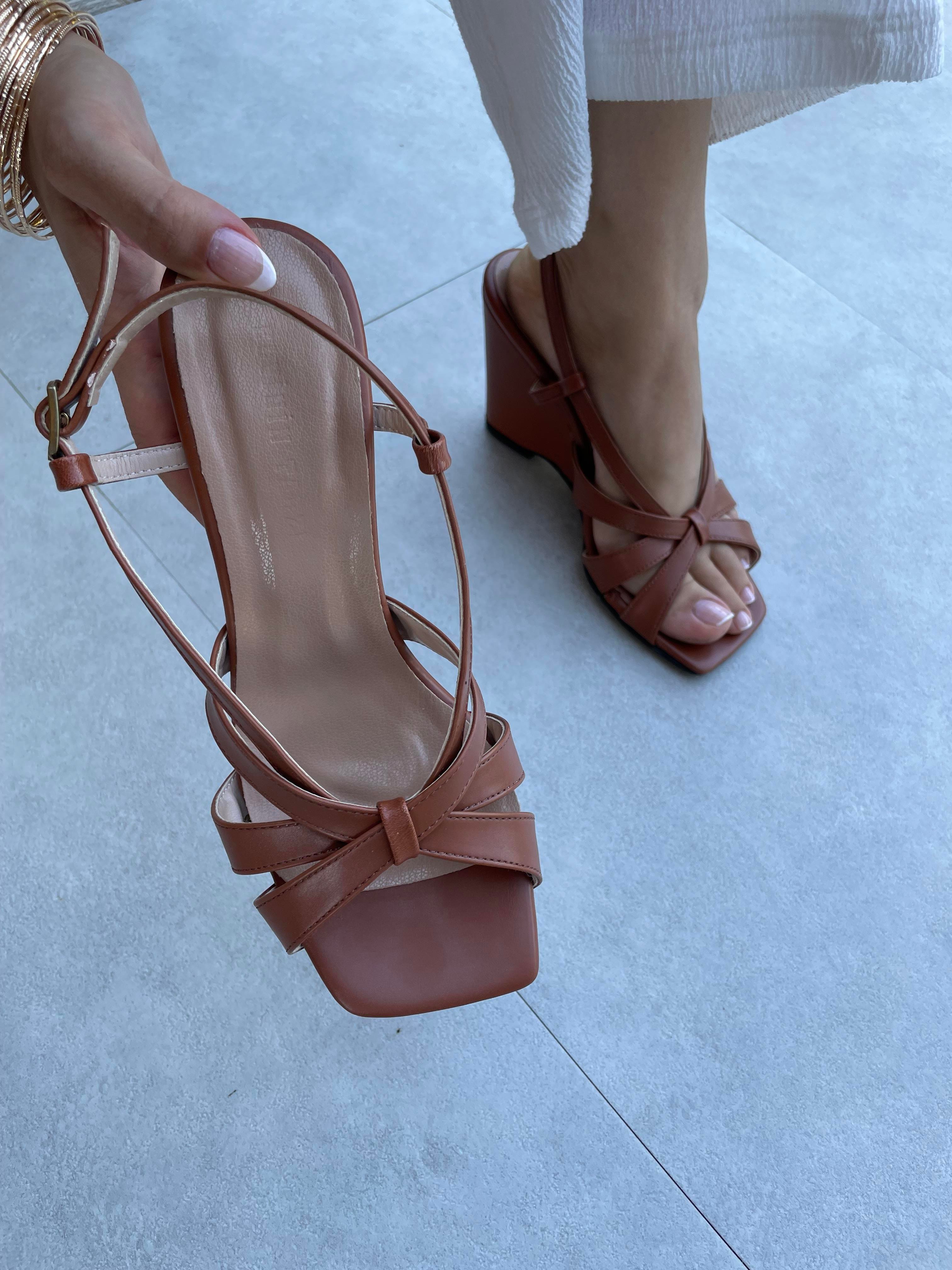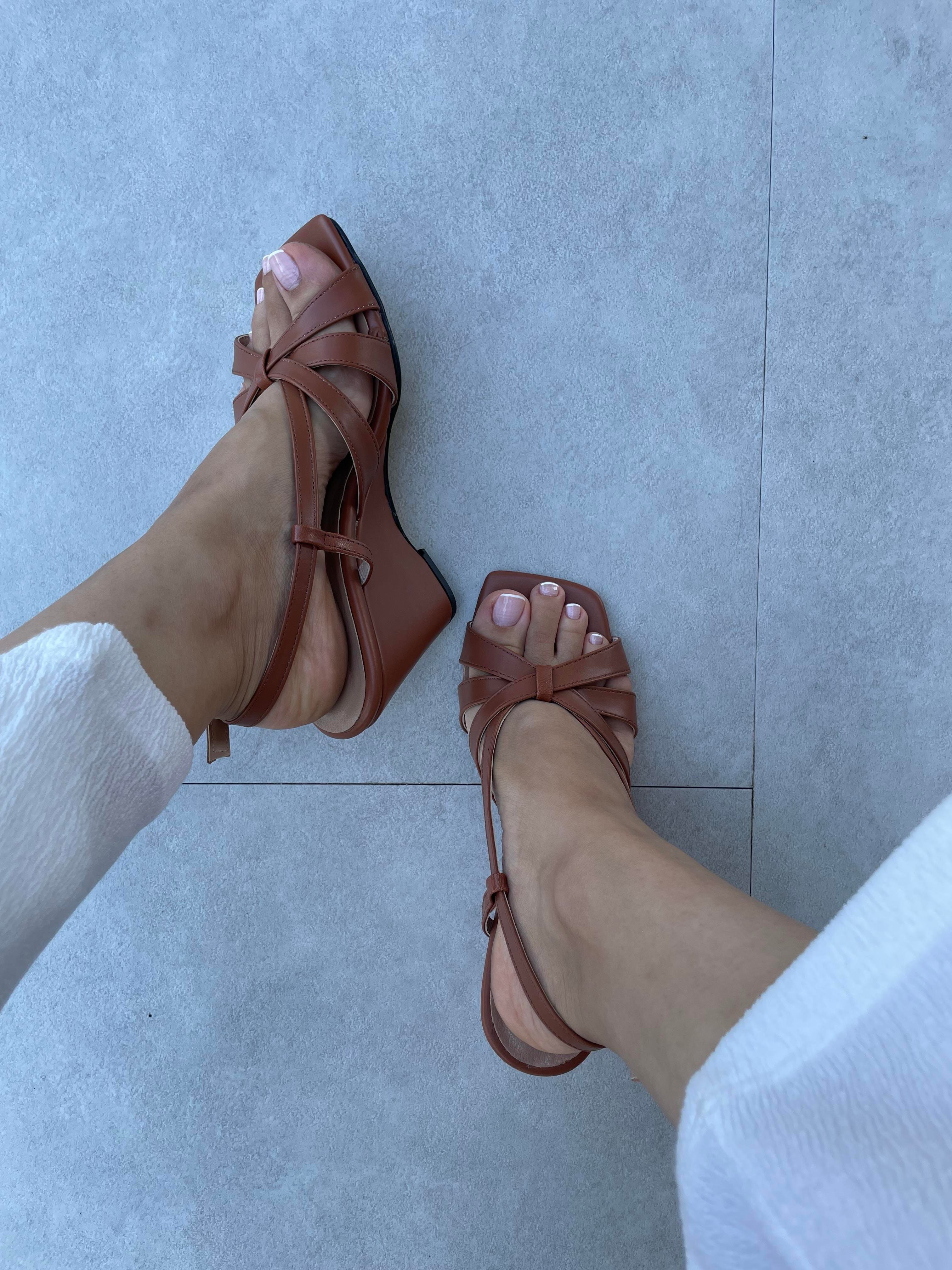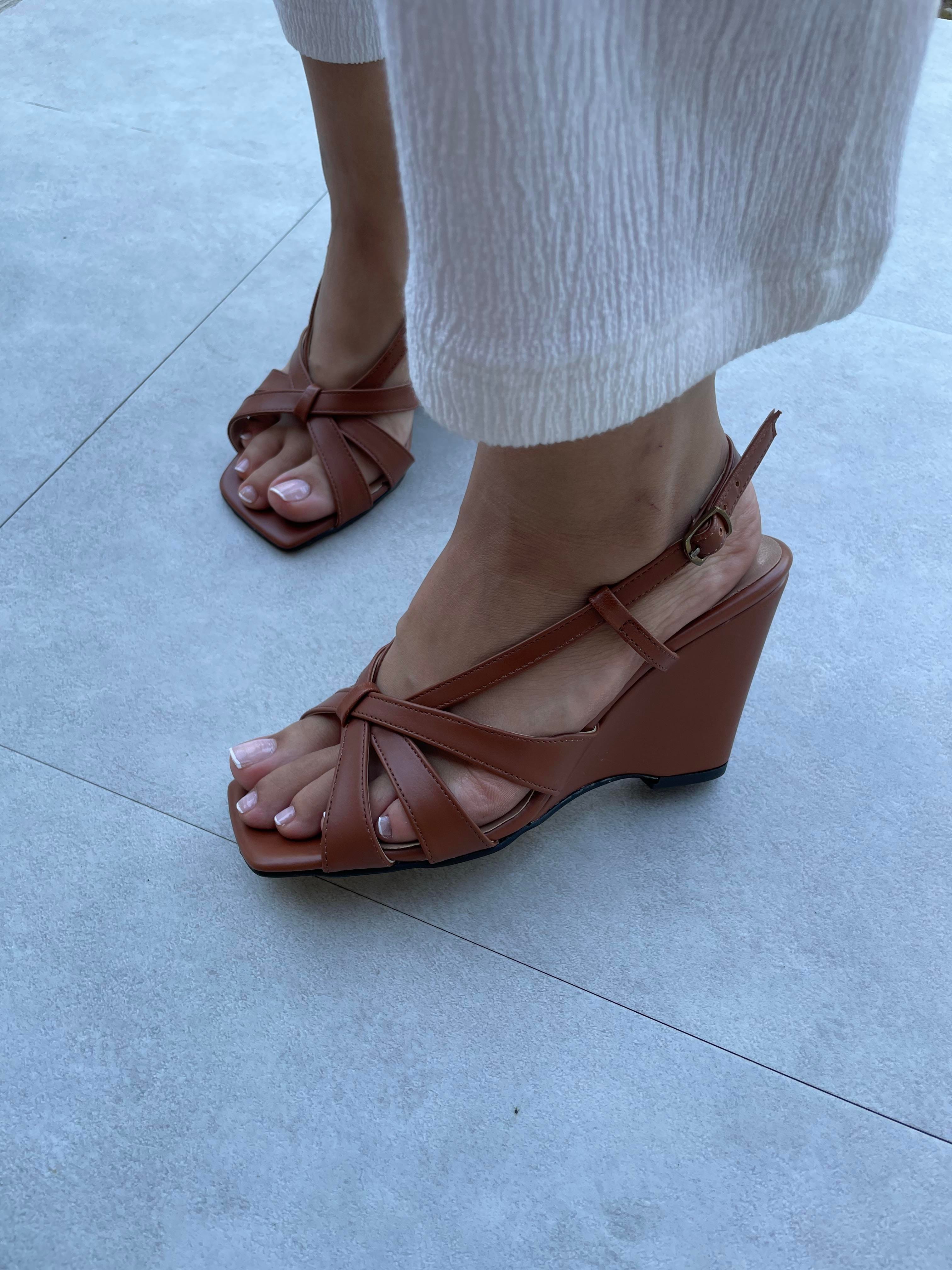 Sesta Taba Renk Çapraz Bantlı Platformlu Topuklu Ayakkabı (Sesta-Taba )
