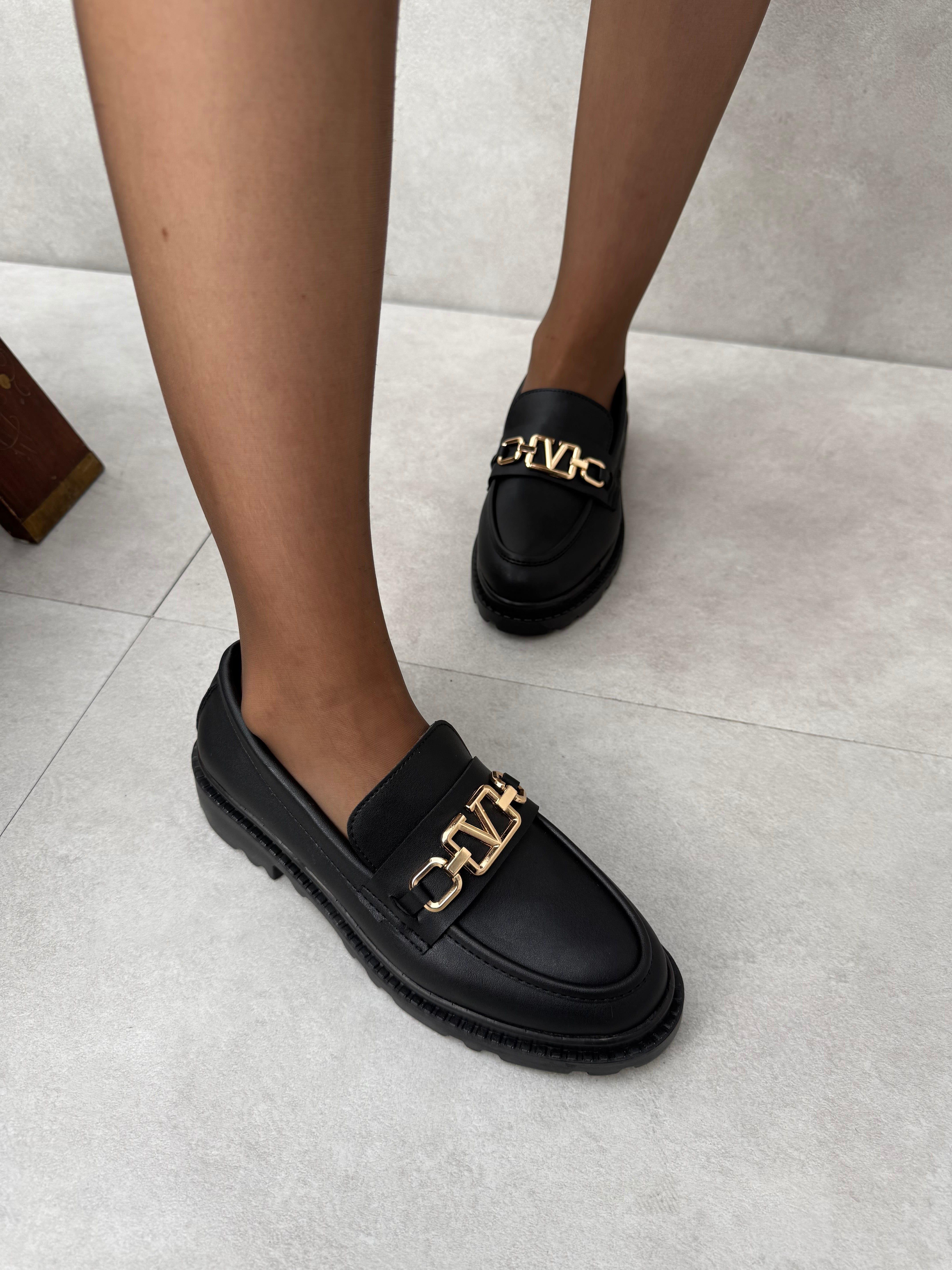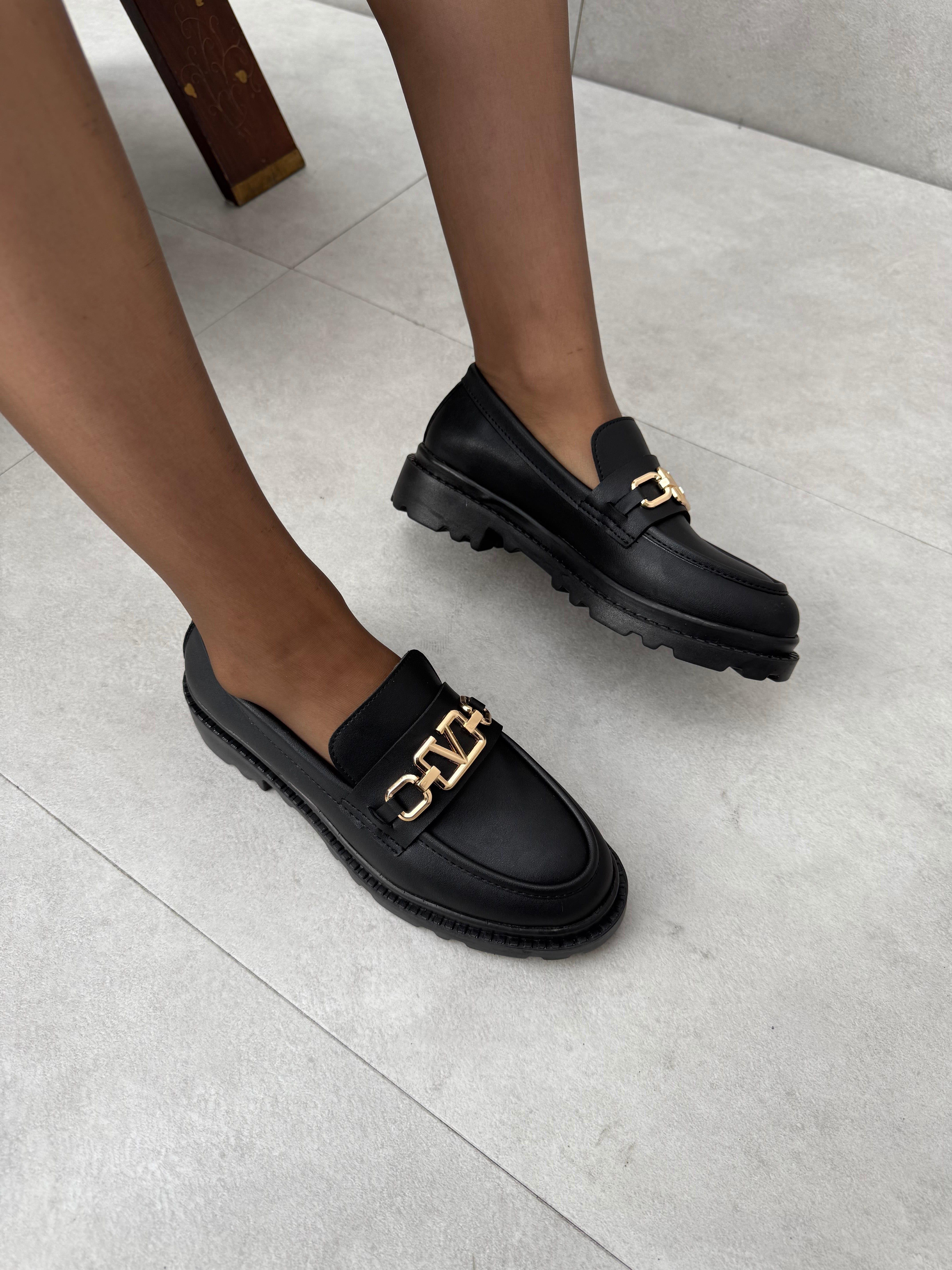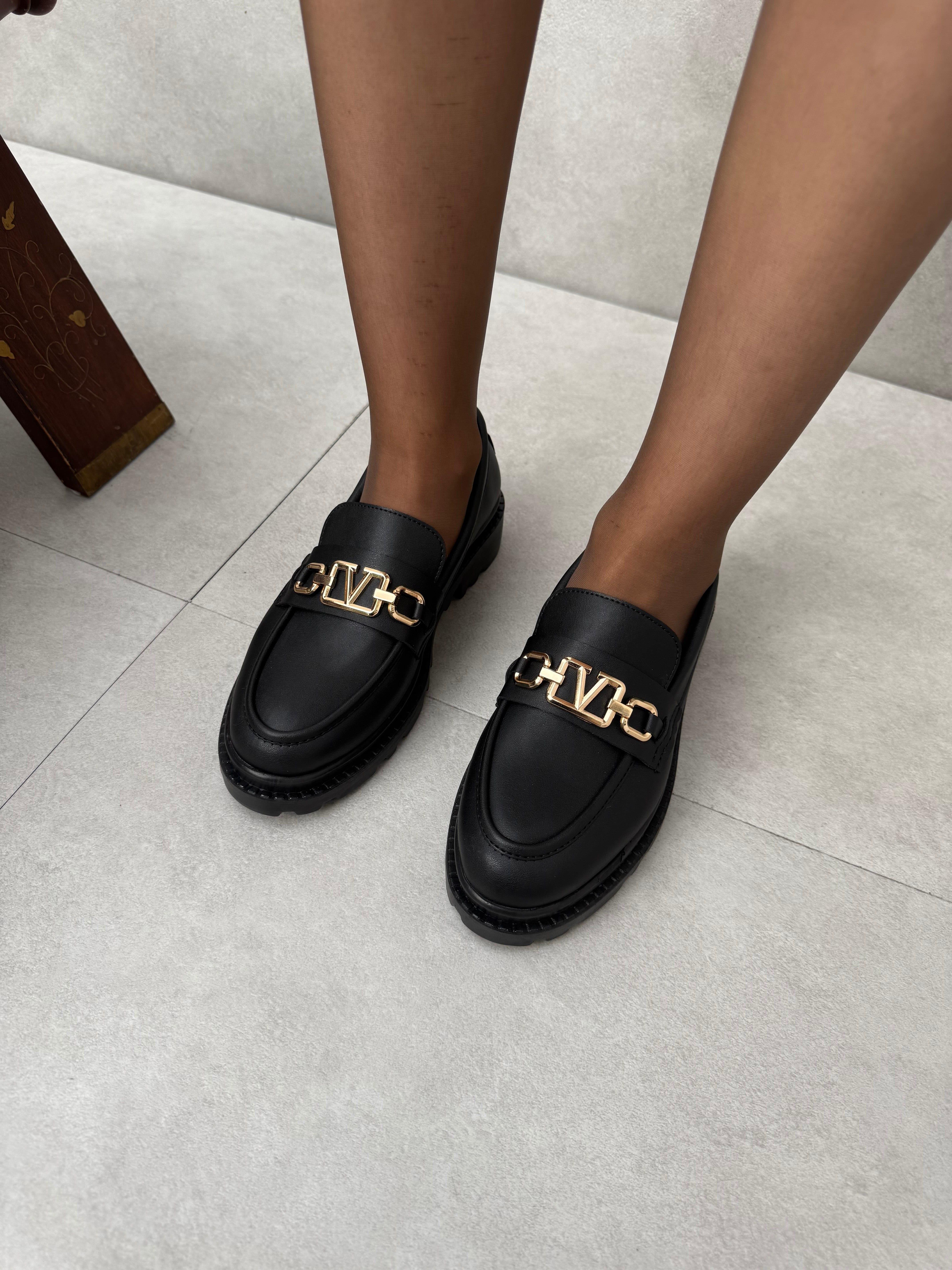 Valen Siyah Deri Toka Detaylı Loafer Kadın Ayakkabı (ELV-91-EL)