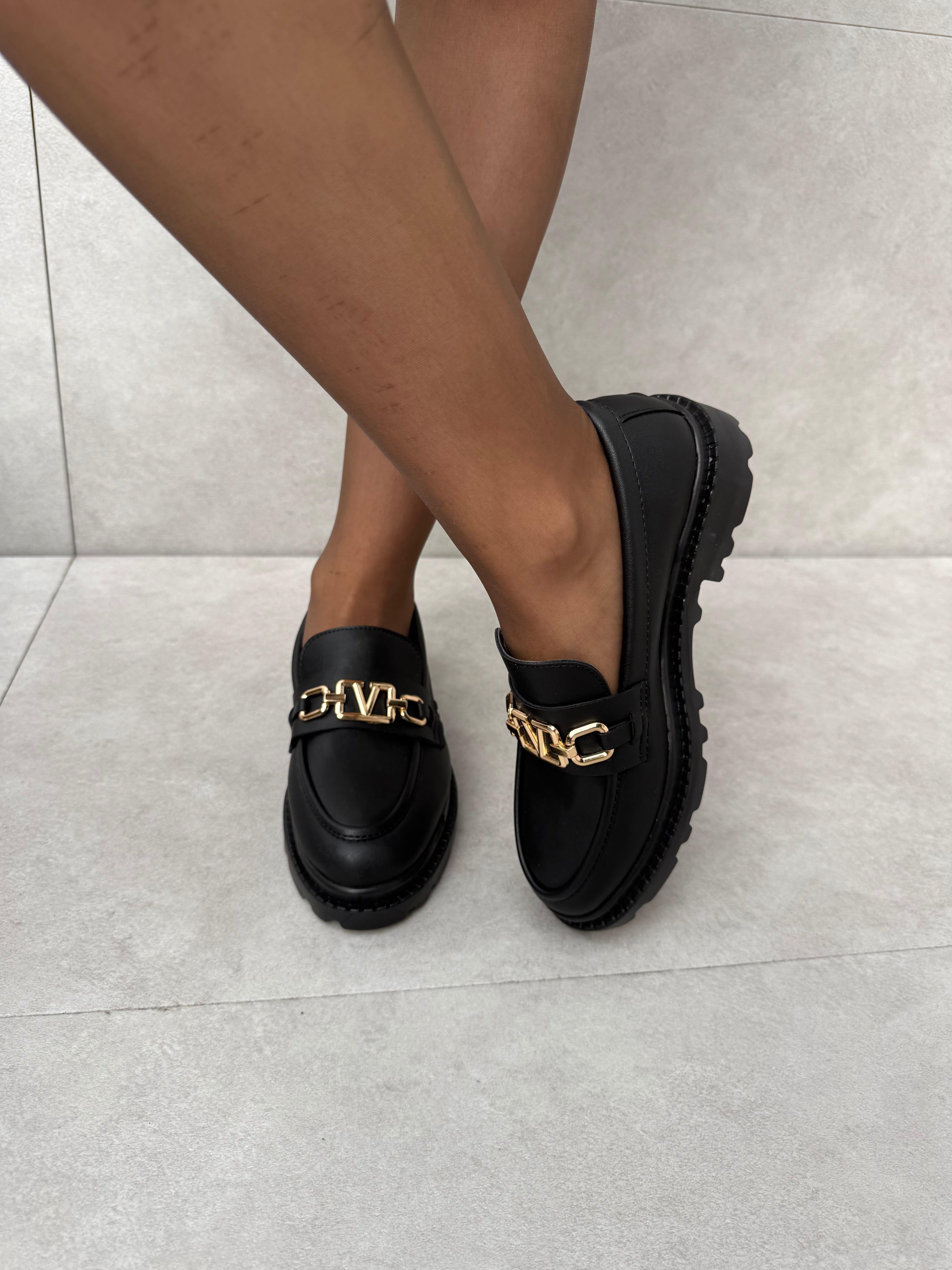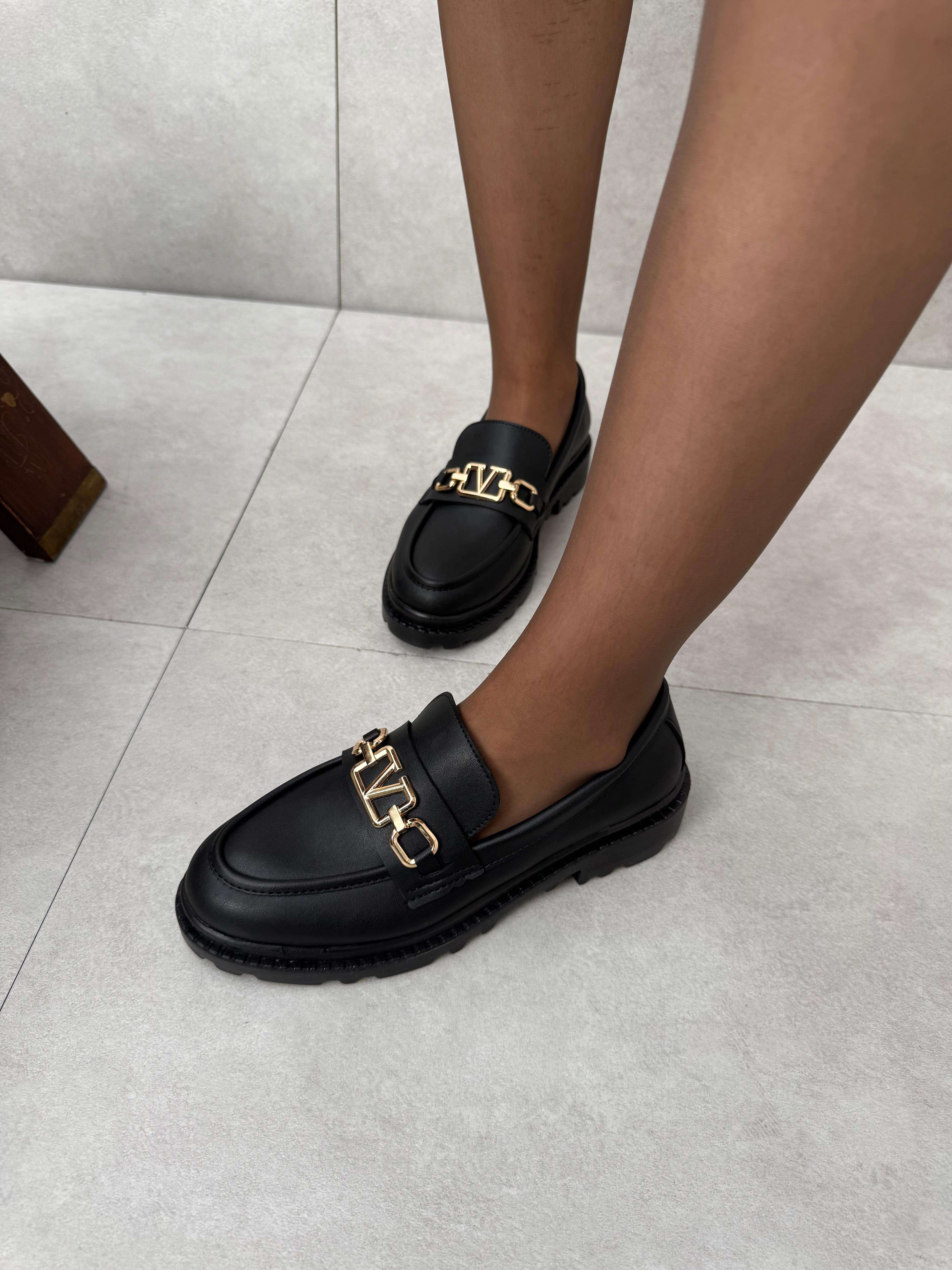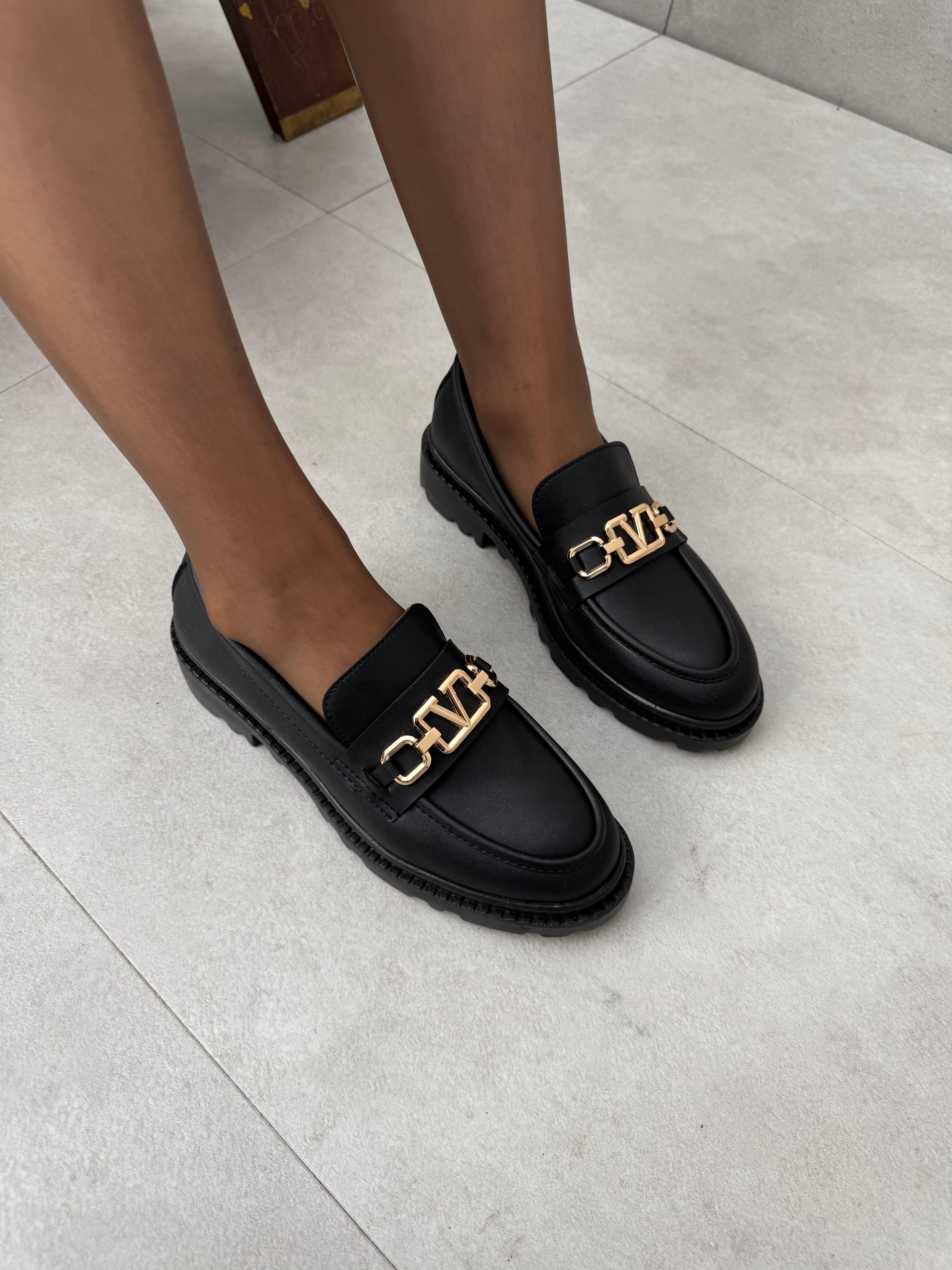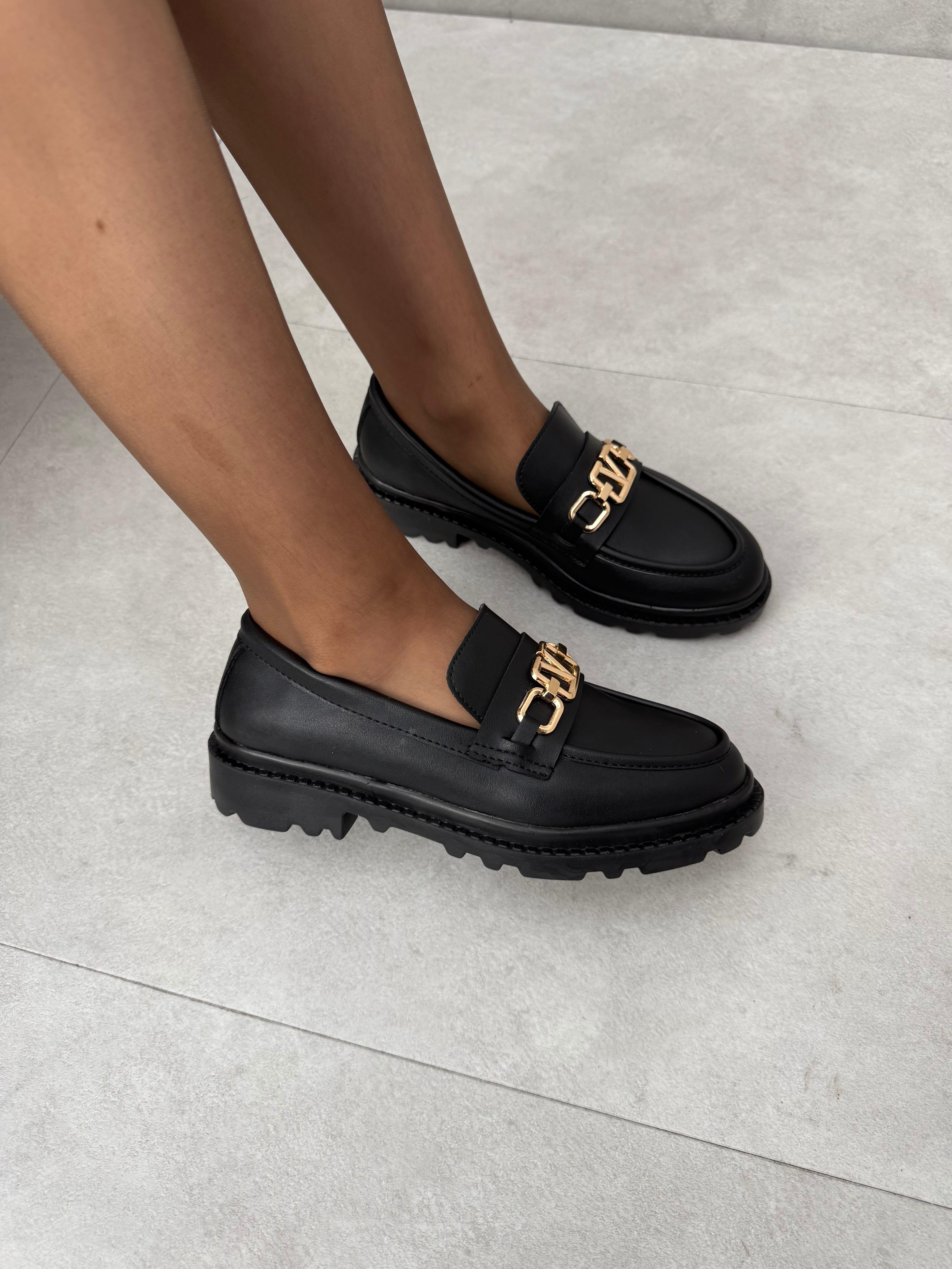 Valen Siyah Deri Toka Detaylı Loafer Kadın Ayakkabı (ELV-91-EL)