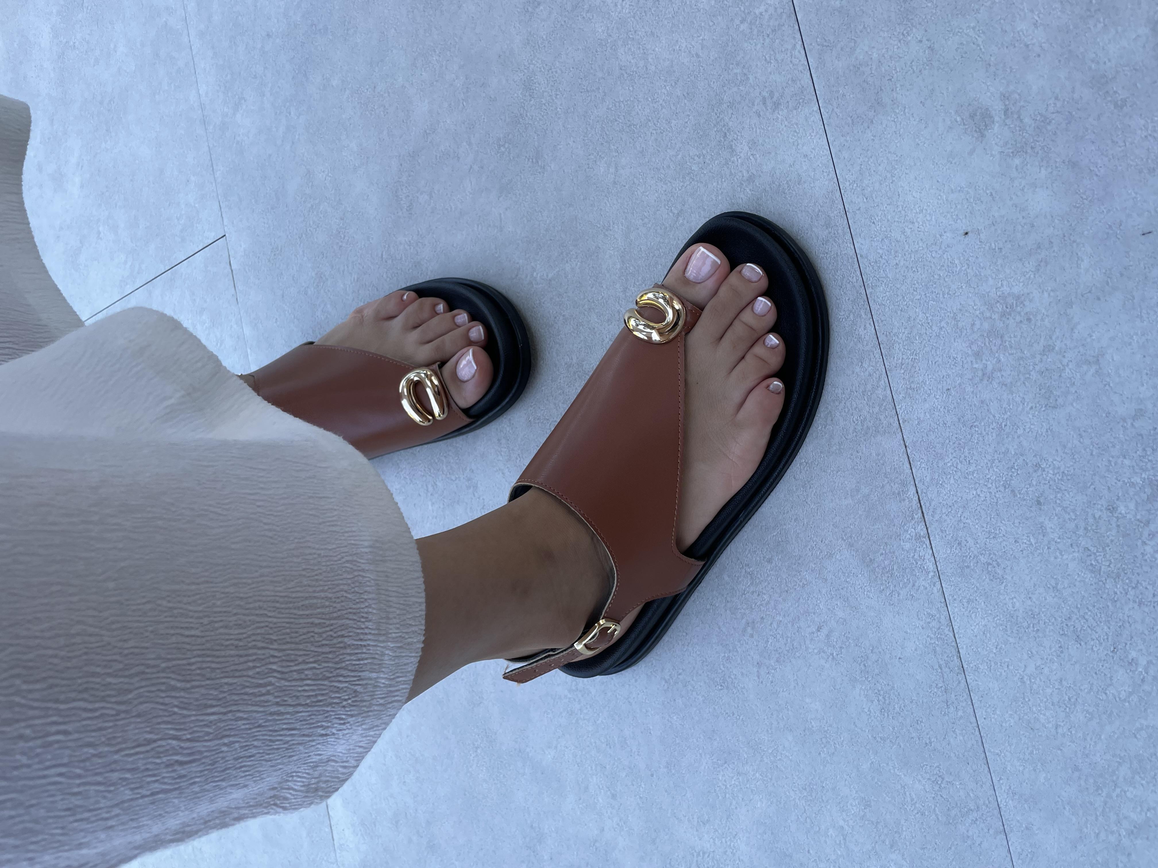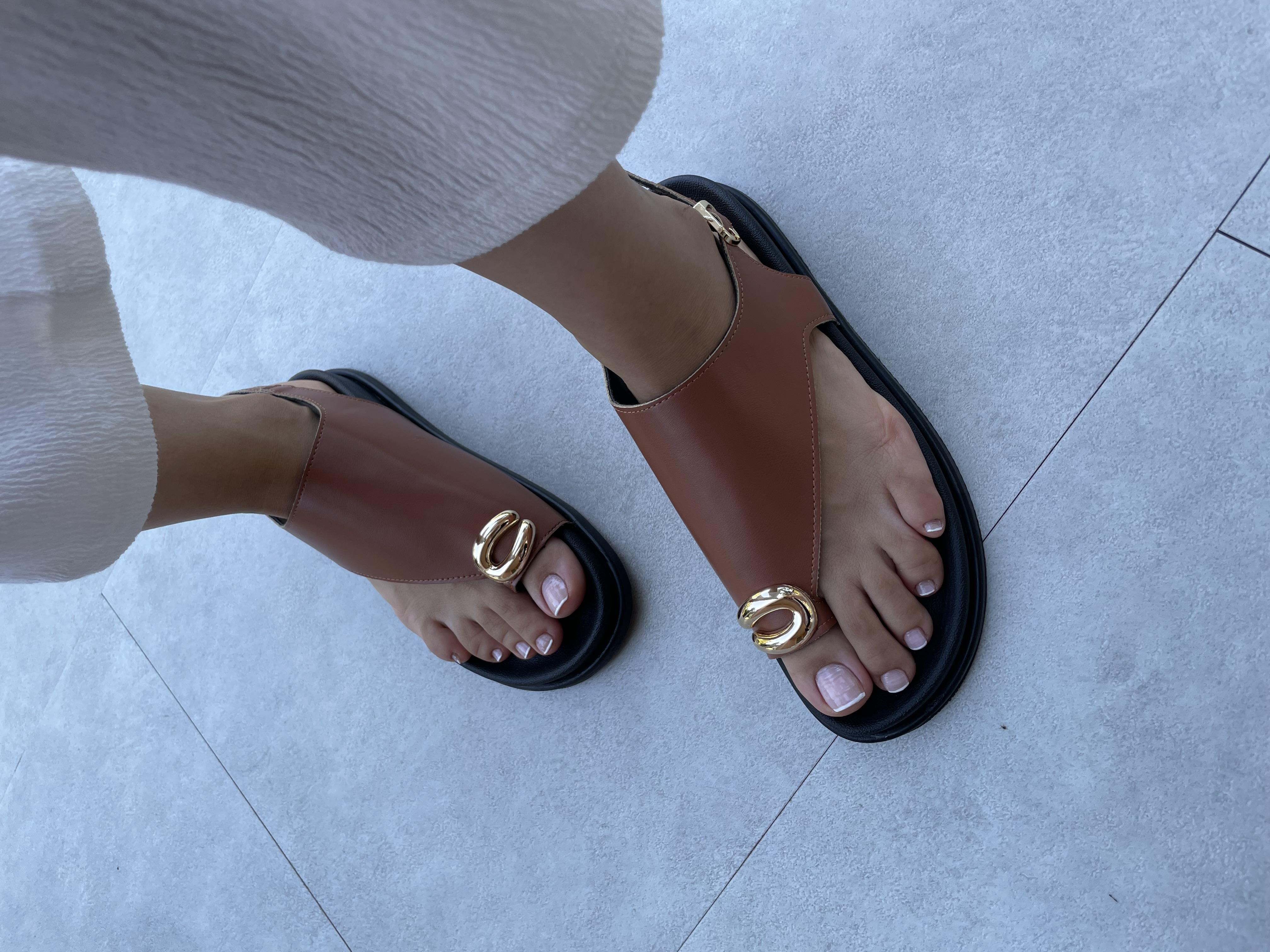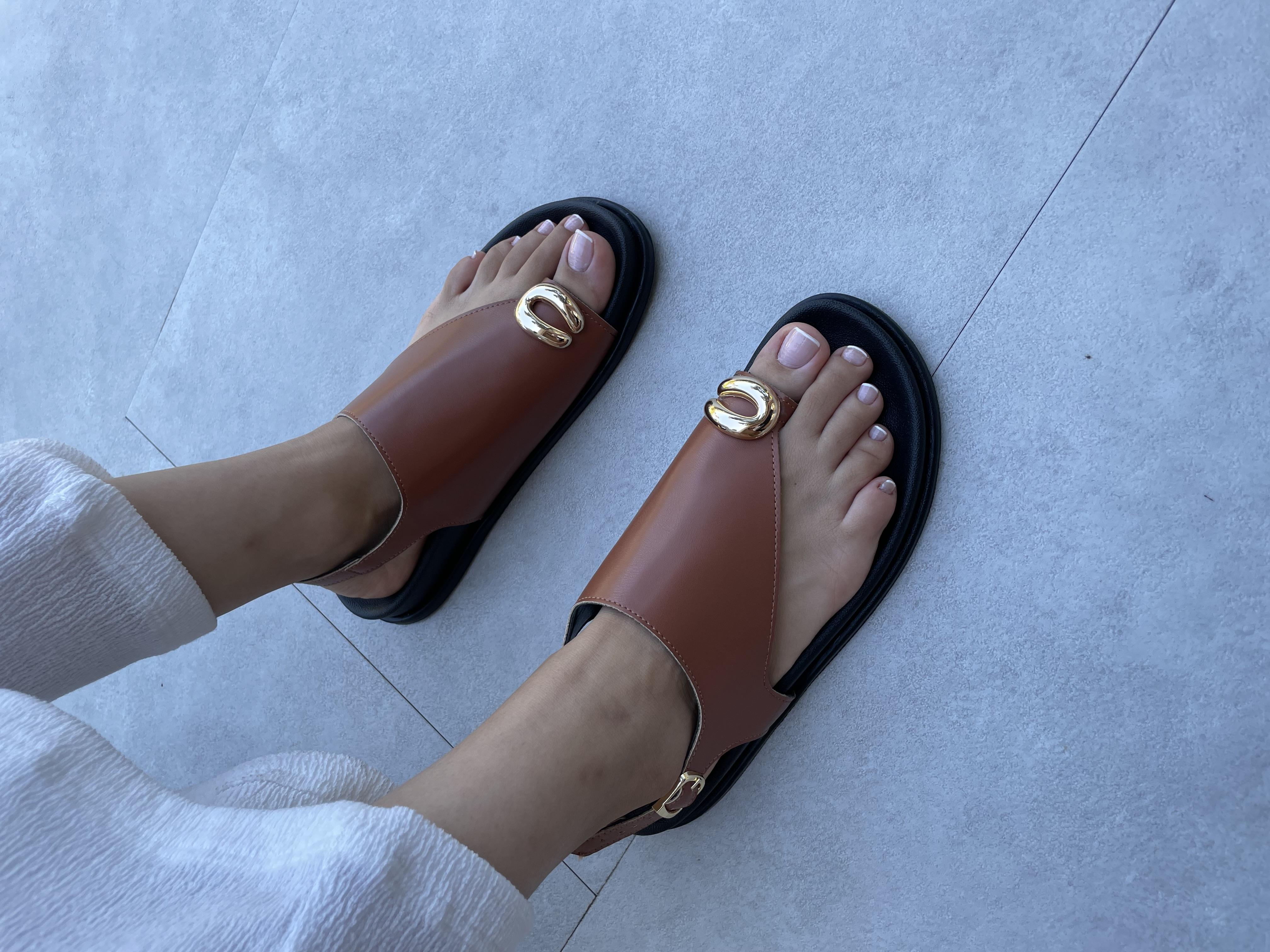 Vina Taba Cilt Aksesuar Detaylı Sandalet (copyELV-112)