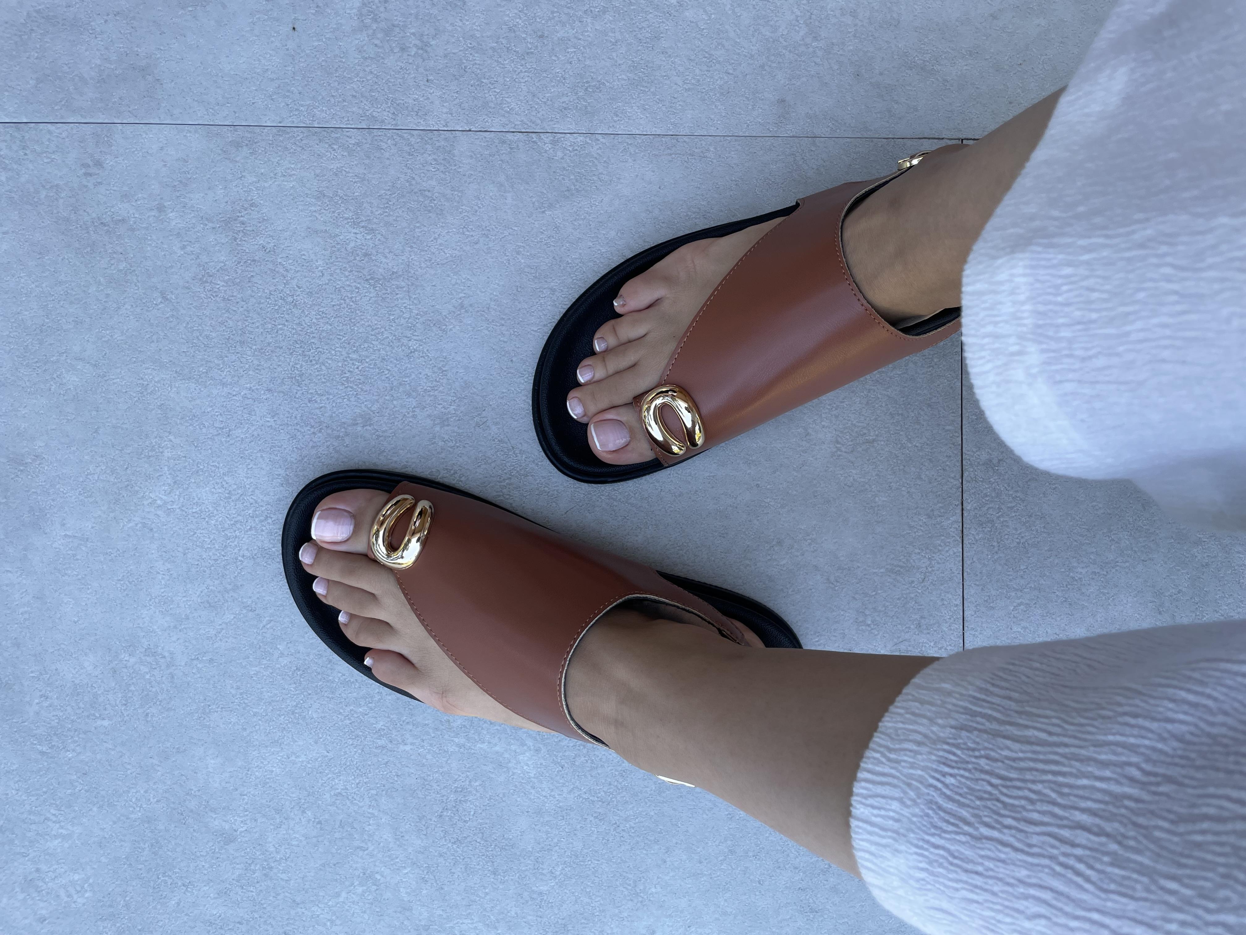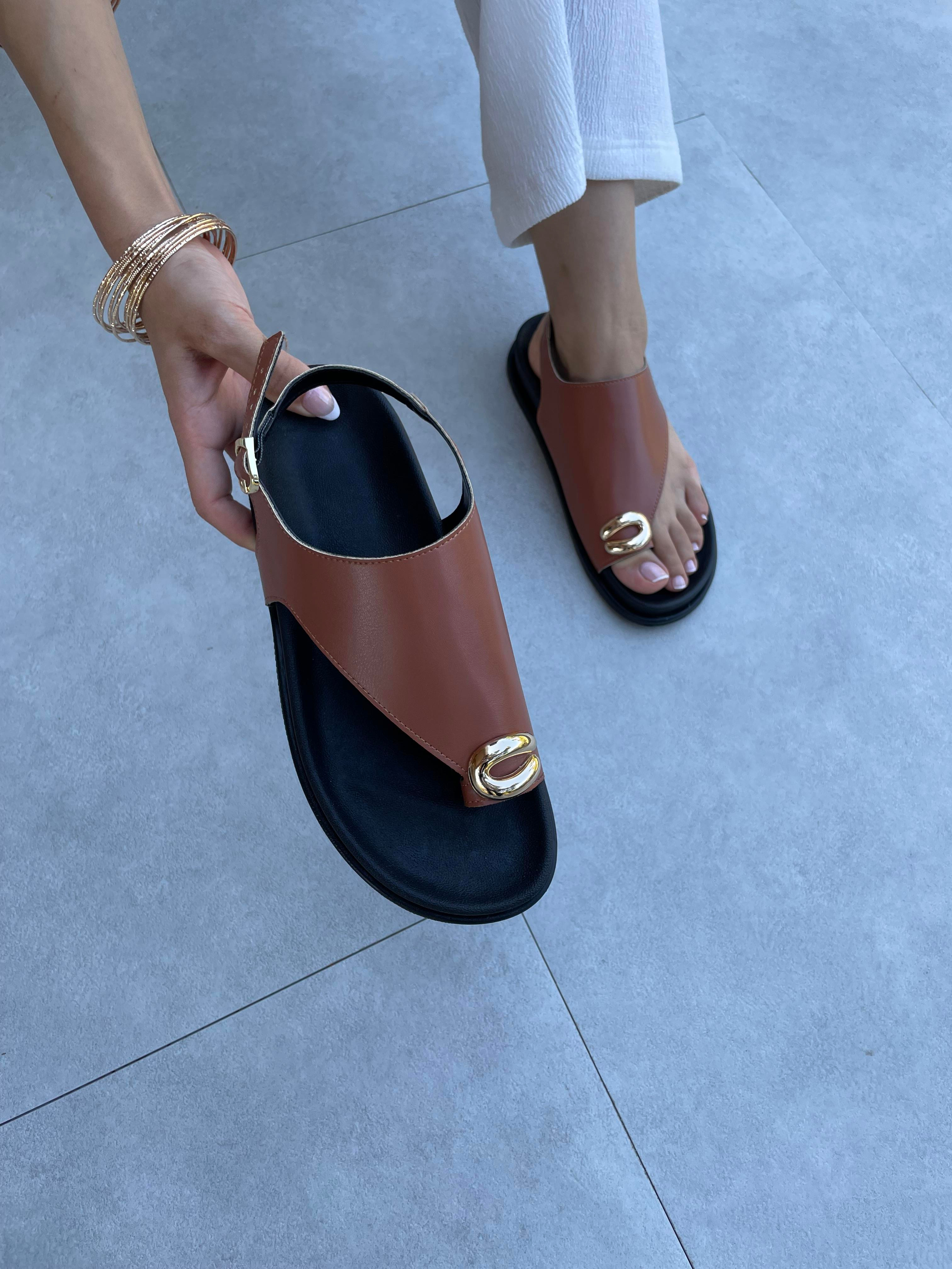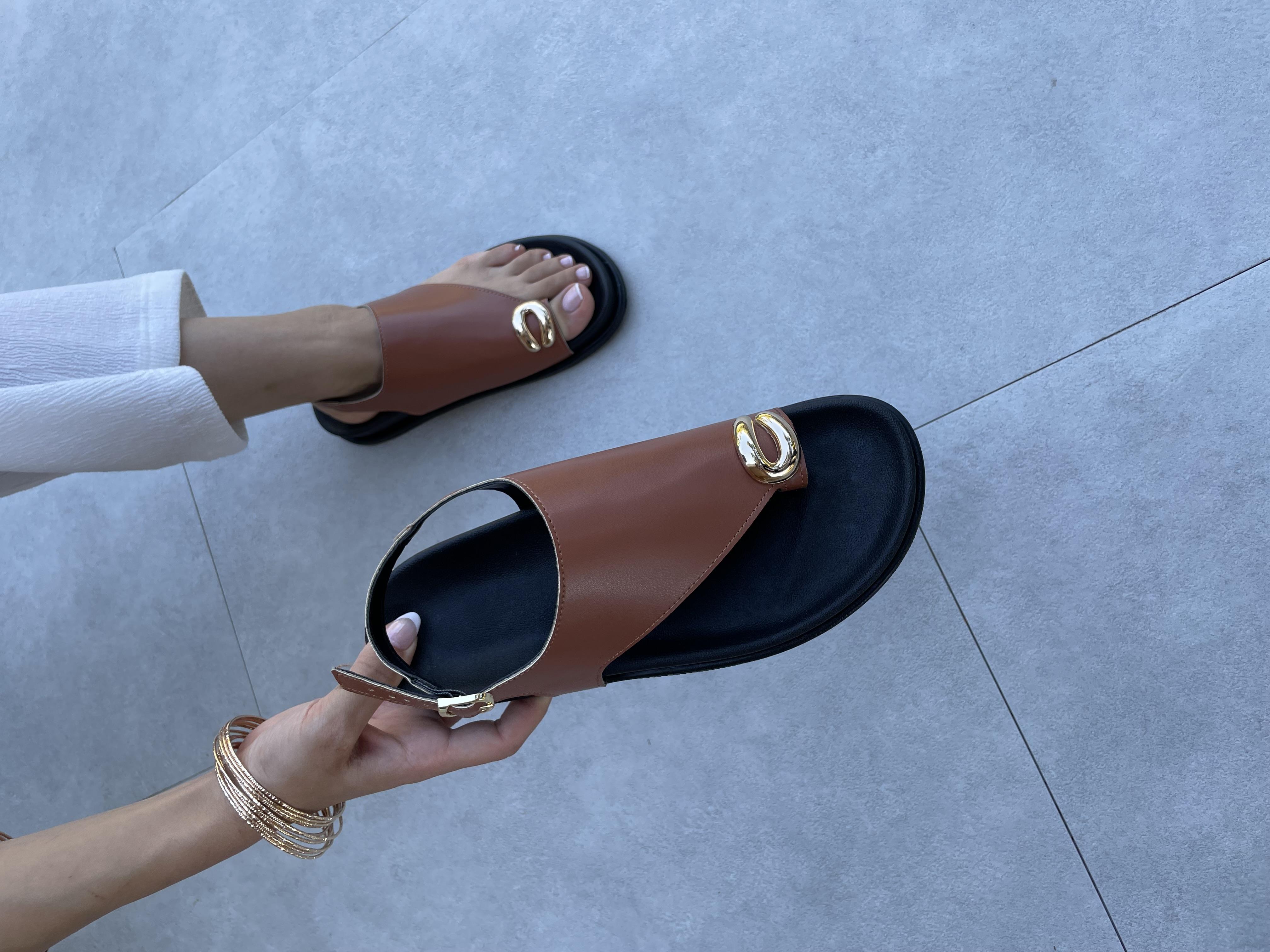 Vina Taba Cilt Aksesuar Detaylı Sandalet (copyELV-112)